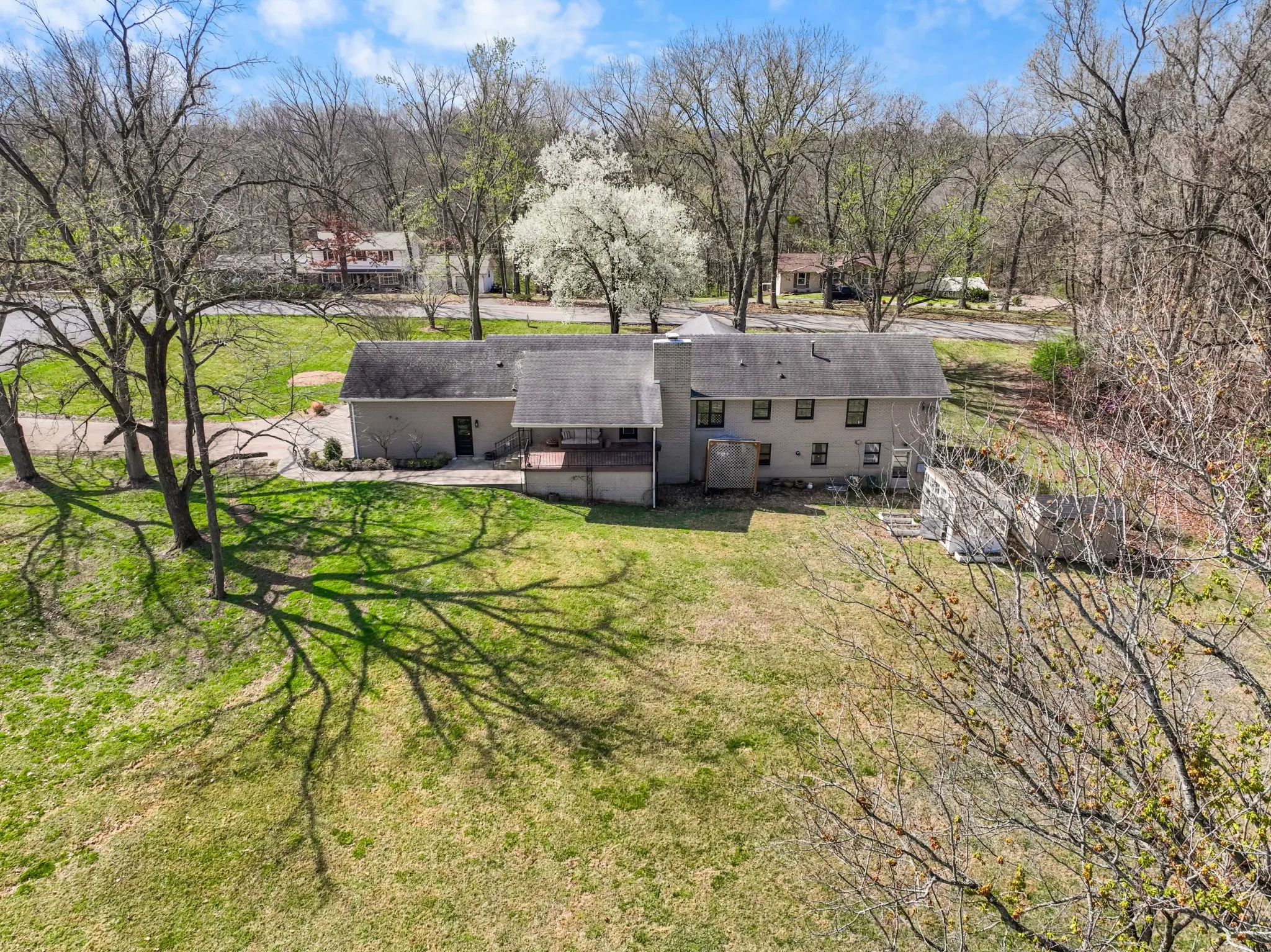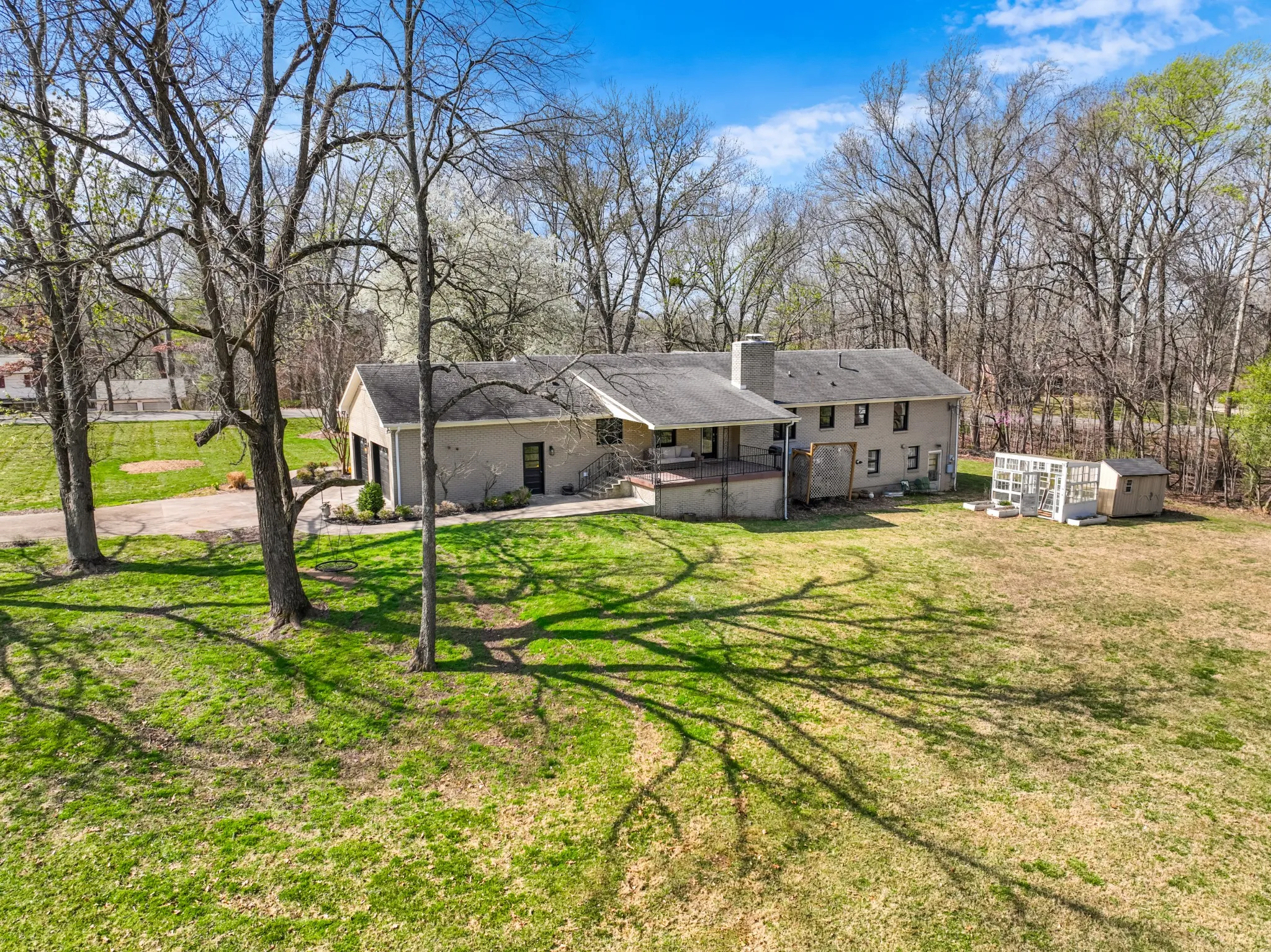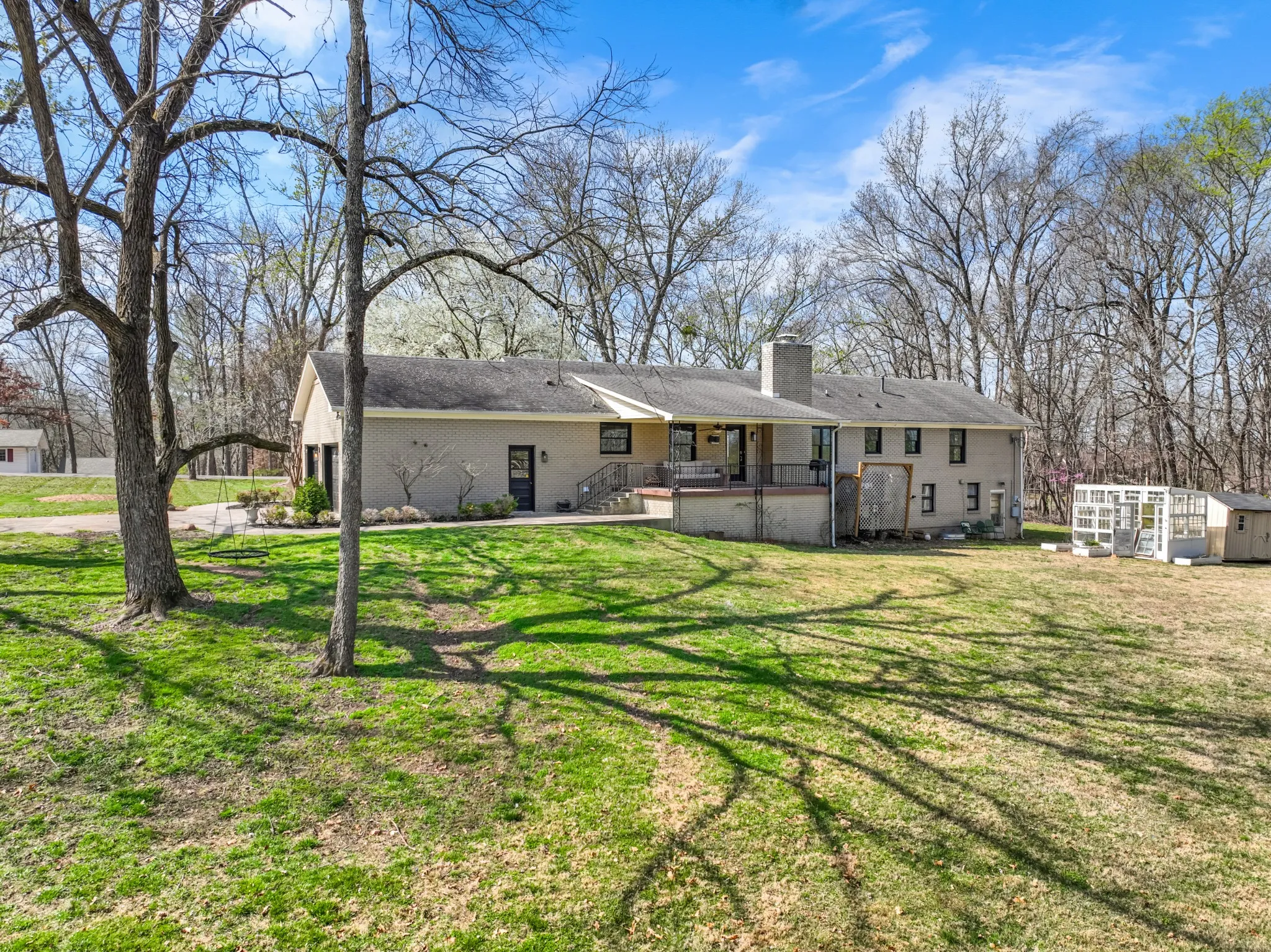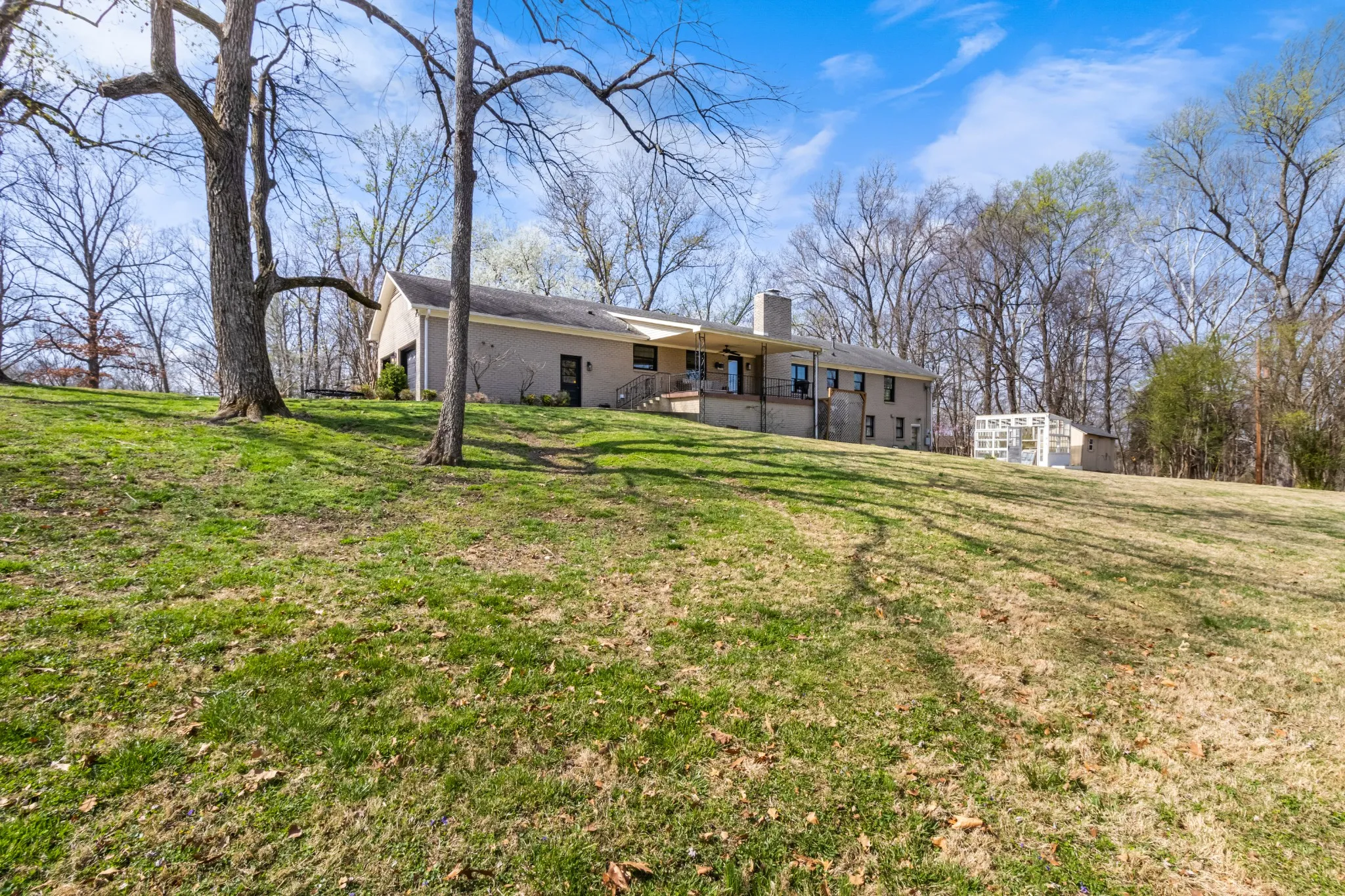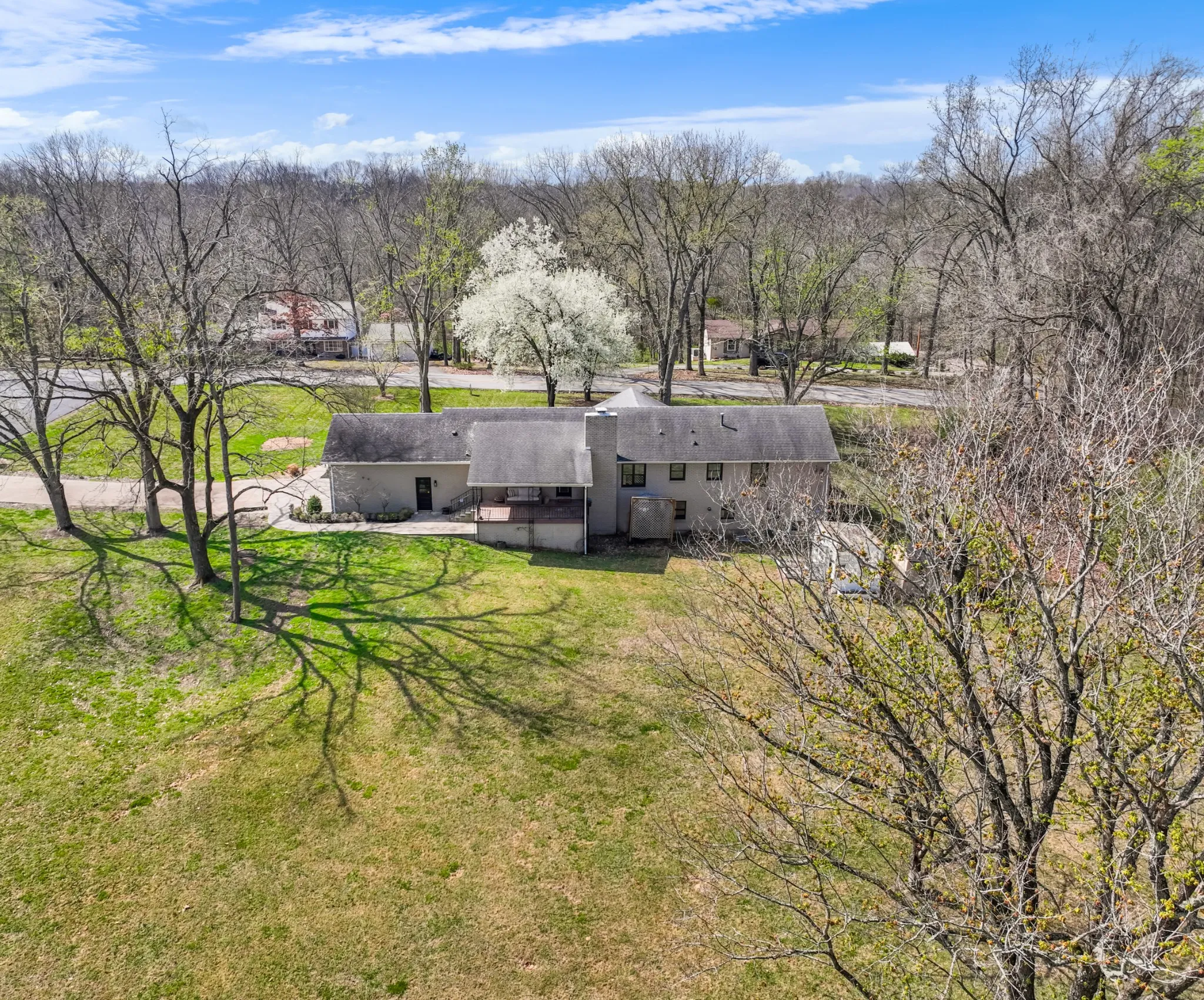 All brick ranch style home on 3 acres in the middle of Clarksville’s coveted Hilldale area! This beautifully crafted ranch style home features a marble foyer with sand and finish hardwoods throughout the remainder of the living areas. The primary bath has been updated and renovated to feature a large walk in tile shower with glass door. A wonderfully modern kitchen adorned with granite countertops and stainless appliances overlooking the den with a brick fireplace. A 2-car side load garage on grade makes transfer from shopping easy into the main living area, while the unfinished basement with 3rd garage is a utilitarian location for storage or future finishing for additional living square footage. Under the porch can function as a concrete shelter. Watch the deer race across your back yard heading to the river on this enormous 3 acre tract in the middle of the city limits while sitting under the covered elevated patio.