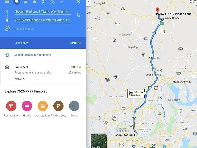 - Directions: Take 65 N out of Nashville to Exit 108, TN Hwy 76. Turn left on Hwy 76. Turn right on Pleasant Grove Rd. Turn Left on Pinson Ln. Turn right onto Owens Ln. Turn right onto Rosewood Dr. Turn right onto Granway Ln. Turn left to Goldenway. Home at left side.