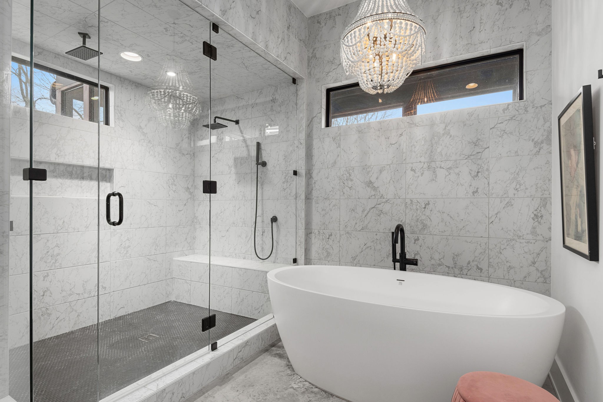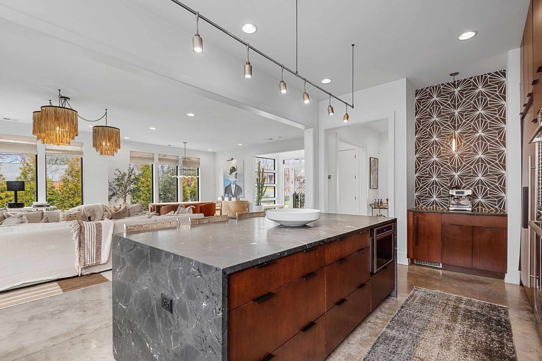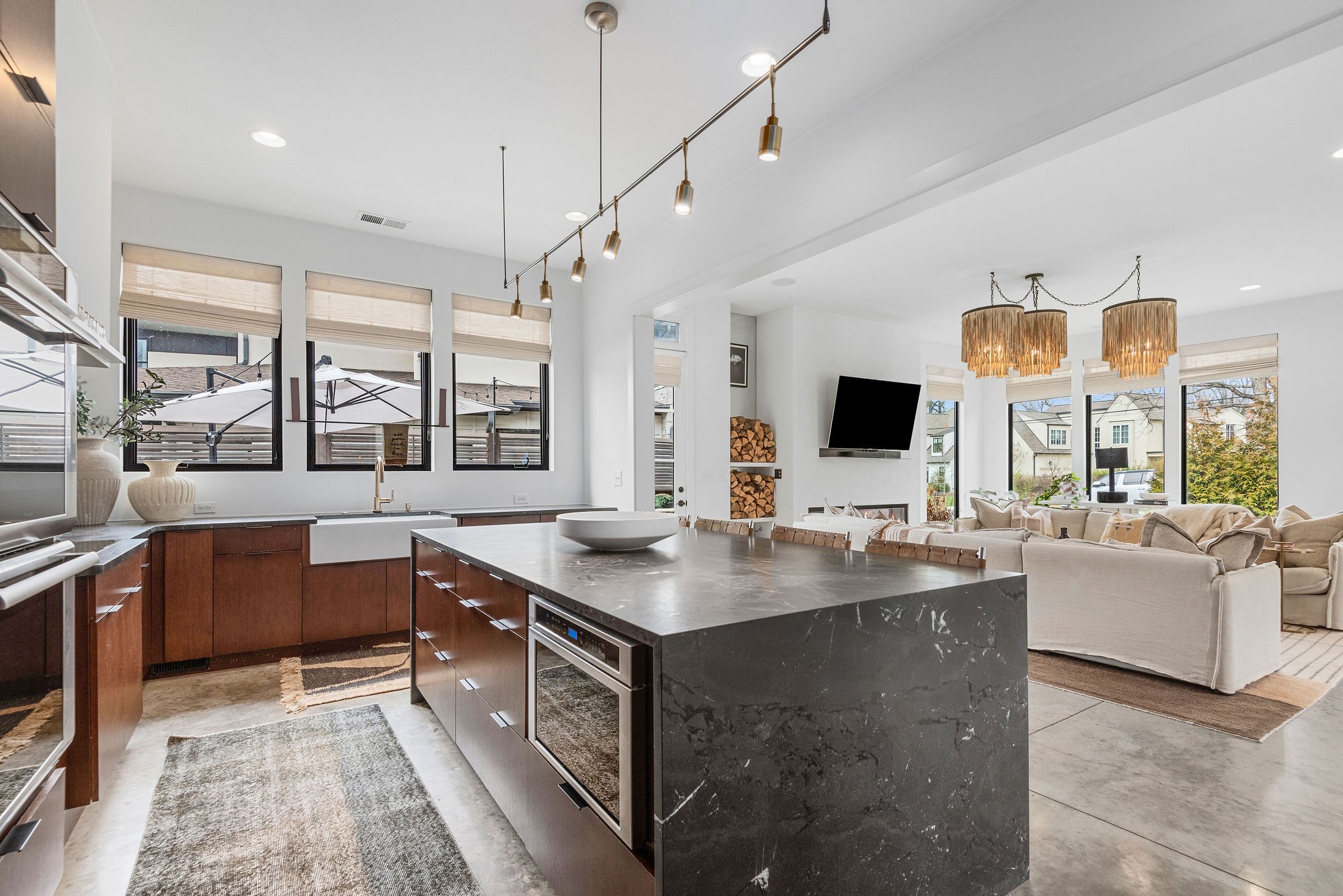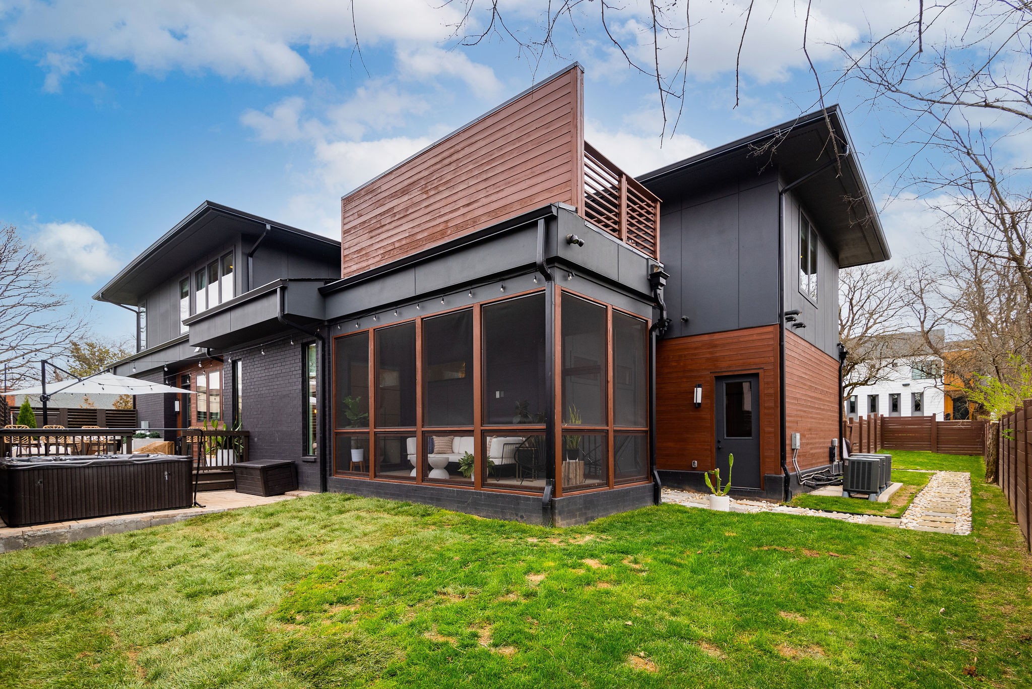 Welcome to the Crown Jewel of Castleman! Friendly, quiet street in the heart of Green Hills only minutes from Nashville’s best shopping, eateries, & parks. This Build Nashville Construction was created with functionality and design in mind. It boasts 430 sq. ft. of outdoor living spaces, dispersed throughout the house: From back patios to a private screened in porch to a rooftop balcony – this home is made to not only entertain, but to find moments of peaceful retreats! It’s designer influences are notable: An April Tomlin influenced kitchen with an induction range and waterfall island; an art install extending to the 35ft. foyer ceiling height, a retractable glass door, that opens up the lounge to the outside. There is a surprise around every corner that will not disappoint. It’s thoughtful in function, elevated in design, and central in location. If concrete floors are not for you, Sellers are offering $15,000 credit to buyer to go towards hardwoods!