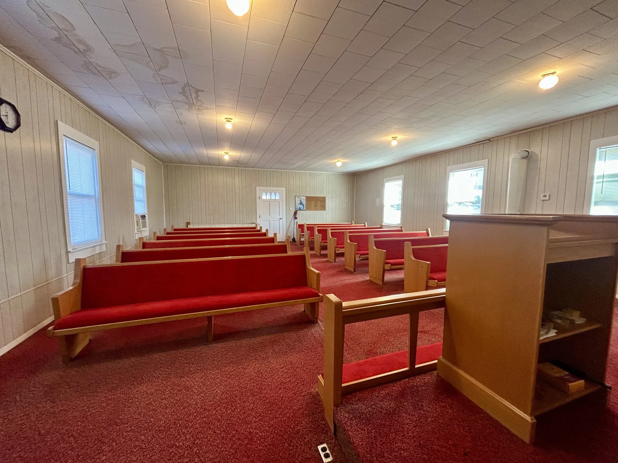 Are you or your church looking for a new building? If so… here’s your opportunity. This building, currently being used as a church, offers a lot for the money. Main floor offers a nice open layout (church pews included) and downstairs offers multiple rooms along with 2 bathrooms. The large lot offers possible room for expansion and more. Call today.