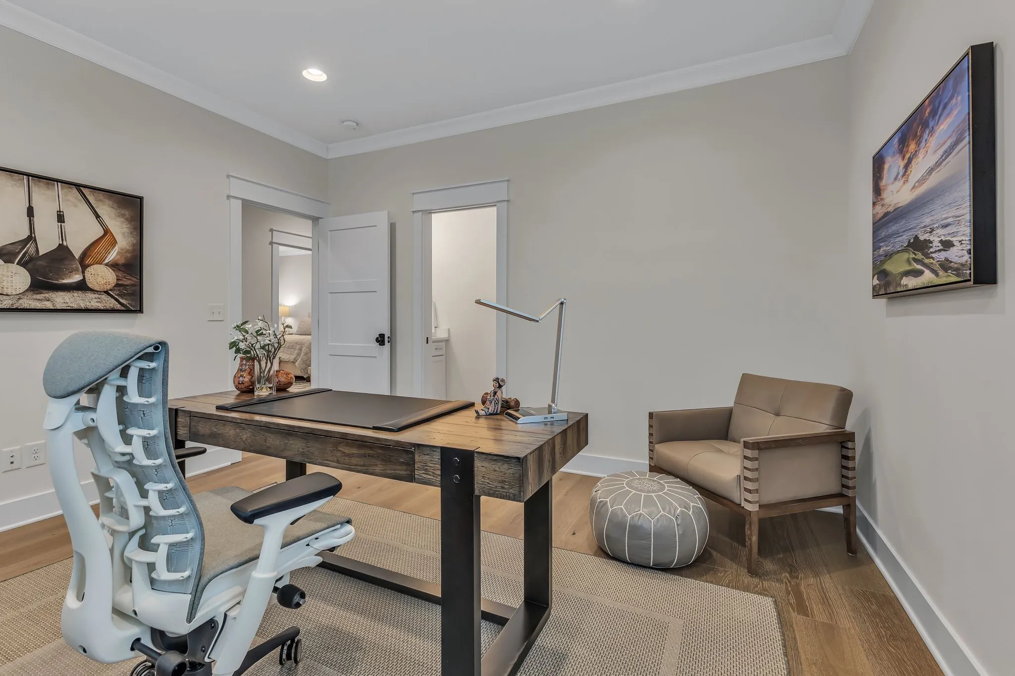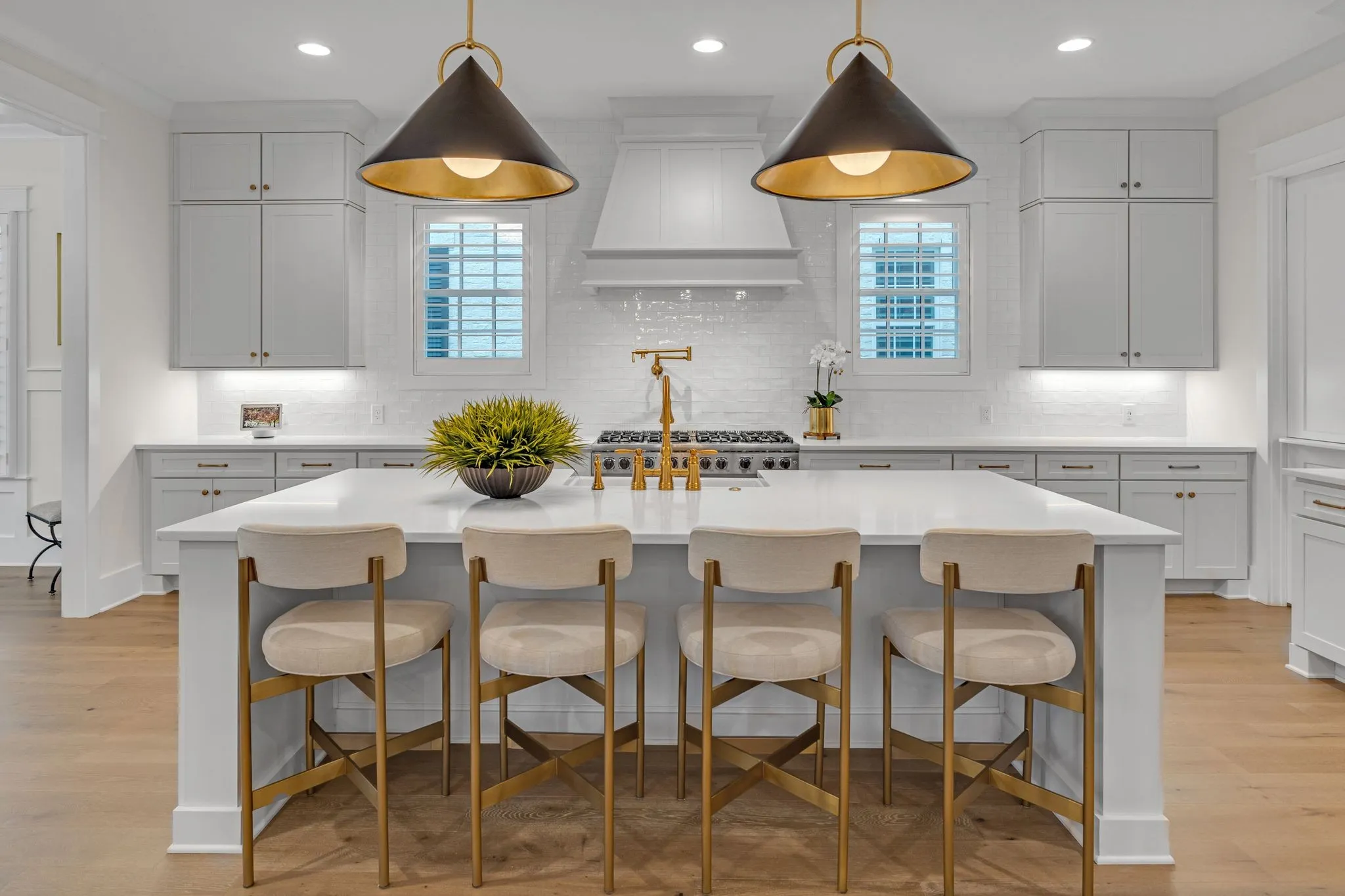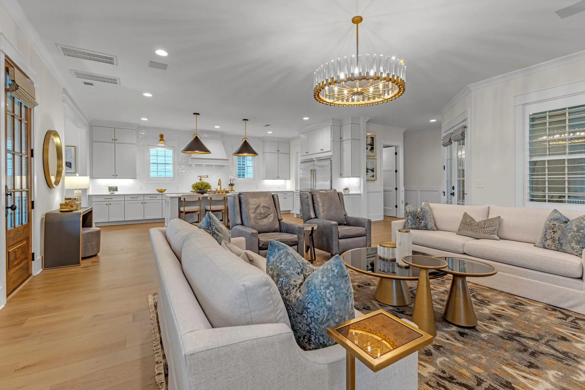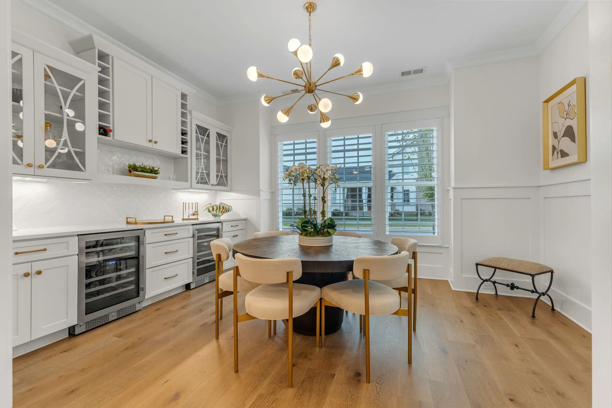 This remarkable former DeFatta Custom Home model is brimming with upgrades and luxurious features, offering an exceptional living experience. The main floor boasts two spacious bedrooms, while the upper floor includes three additional bedrooms and a bonus room. A studio apartment, located above the three-car garage, is accessible by elevator, or interior of the home providing additional living space or a private retreat. The interior is designed with elegance and functionality in mind, featuring a built-in wine bar, plantation shutters, a built-in sound system, and white oak wood floors throughout. The kitchen is equipped with Viking appliances, a 66″ refrigerator/freezer, and a 10′ island, making it perfect for both cooking and entertaining, while the stunning working pantry offers an ice machine, microwave, and ample storage. The community offers an array of amenities, including pools, tennis courts, pickleball courts, community gardens, walking trails, and regular community events.