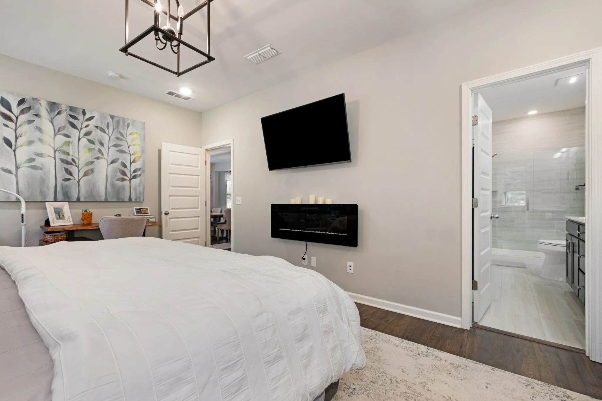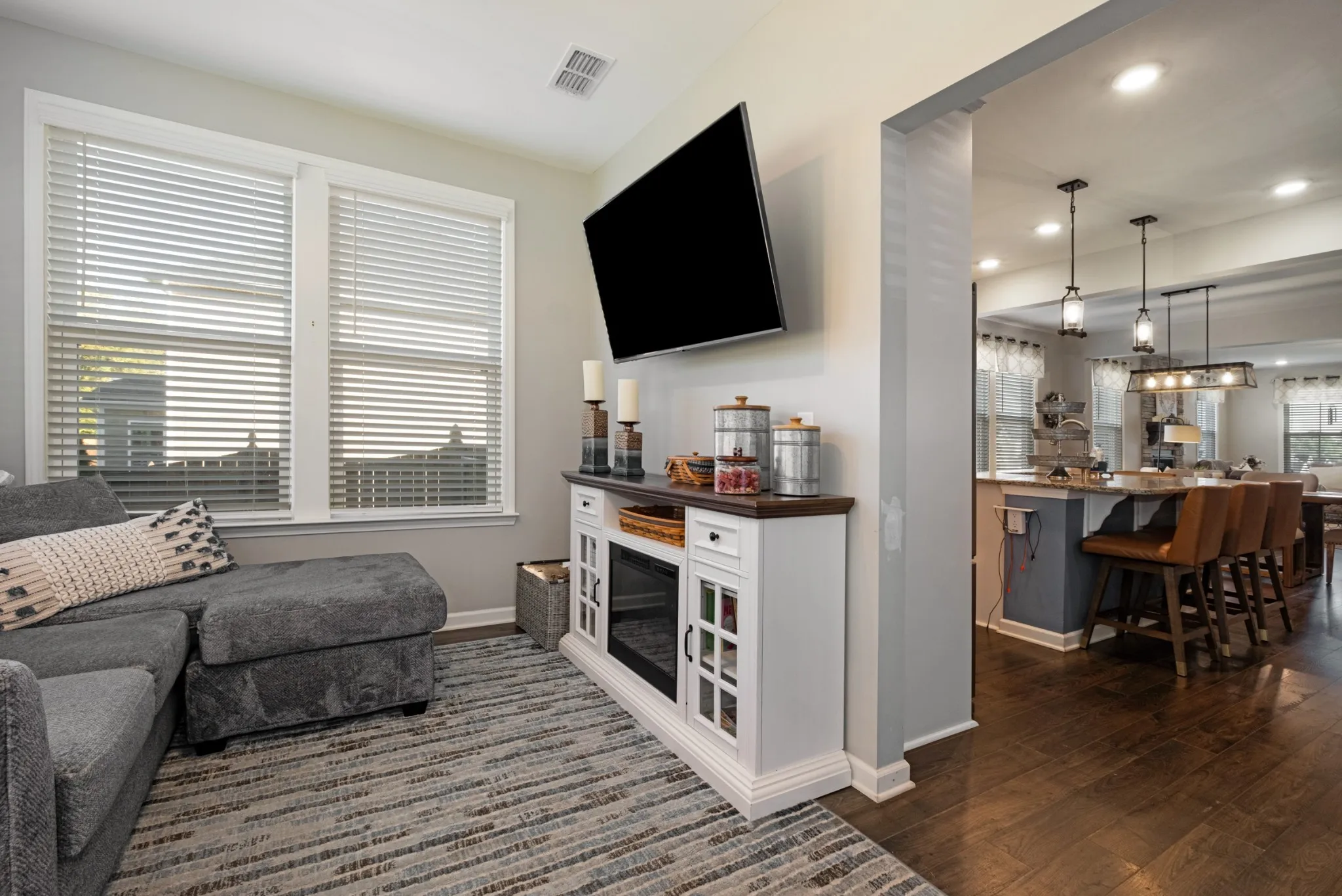 *HOME WAS LEASED. DO NOT SOLICIT SELLER* This stunning 4-bedroom, 2.5-bathroom home is nestled against a private, tree-lined lot. The main floor features an open-concept kitchen and living area with beautiful hardwood floors, a stacked stone fireplace, a gas stove, and a large island. Adjacent to the kitchen is a bright Florida/morning room with views of the secluded backyard. The owner’s suite boasts a walk-in shower with a frameless glass door and a spacious walk-in closet. A laundry room and half bath are also conveniently located on the main level. Upstairs, you’ll find three more bedrooms, a full bath, a large loft, and a versatile bonus room—ideal as a playroom, man cave, or easily converted into a fifth bedroom. The fully fenced backyard extends 20 feet beyond the fence line, and the property includes an irrigation system.