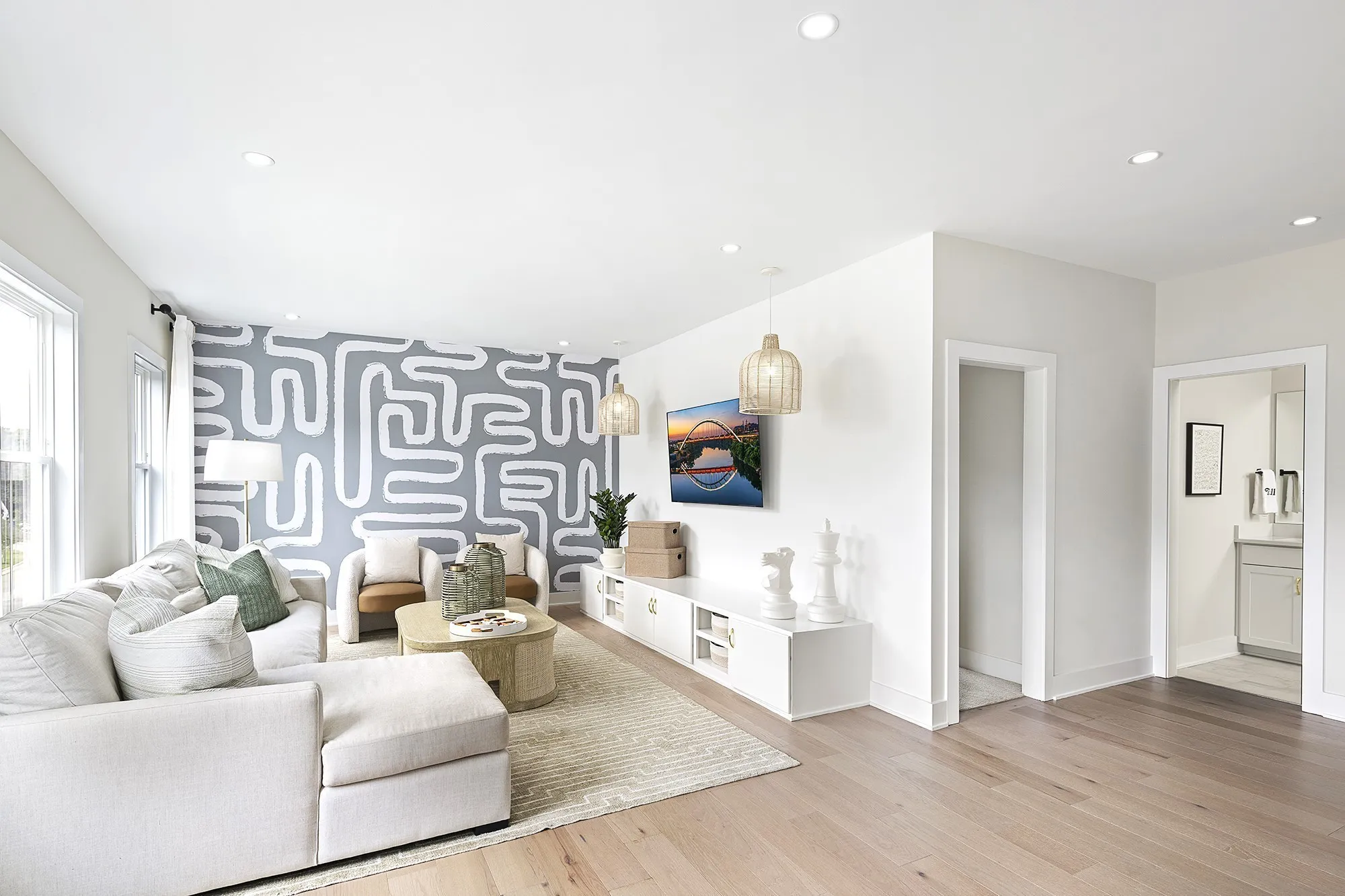 Welcome to Tomlinson Pointe by Toll Brothers! The McCourt home plan features an impressive design made for modern living with design and structural options to customize it to fit your lifestyle. A welcoming foyer flows past a sizable flex room into the elegant great room with a casual dining area and access to the backyard. The sophisticated kitchen offers a large island, a walk-in pantry, and wraparound cabinets with ample counter space. A spacious downstairs primary bedroom is complete with an oversized walk-in closet and luxe shower with the option to add a separate tub. Upstairs features three secondary bedrooms, one with a private bath and a walk-in closet and two with a shared hall bath with a dual-sink vanity. A spacious loft is perfect for movie nights in an additional living room or as a homeschool classroom. Our community includes a pool and fire pit and playground to gather with neighbors. Take a trip to our design studio to curate this home to your exact taste! Photos and/or renderings are for representational purposes and floorplans may vary in elevation and size. Contact the on site sales team to learn more.