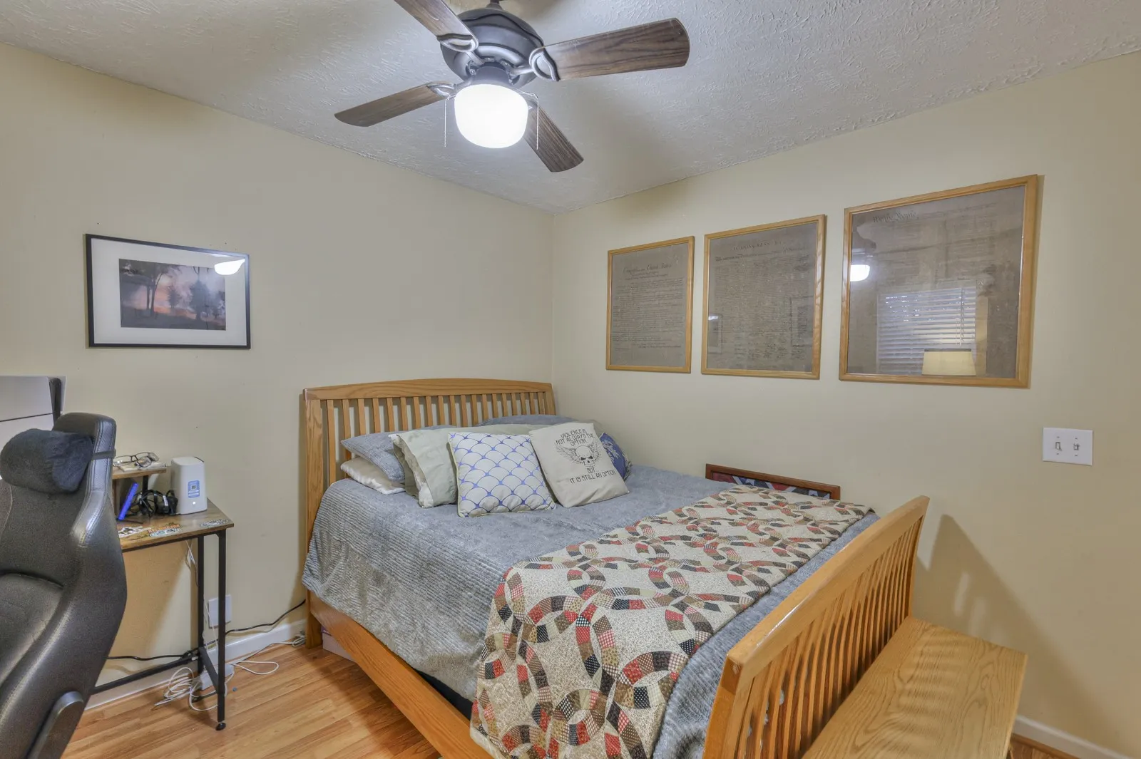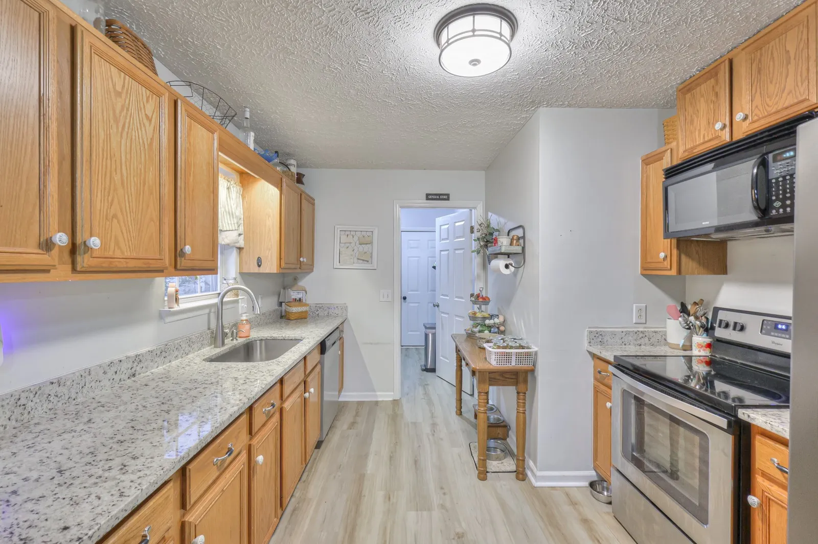 Nice home on a large lot, over 1/2 ACRE, and NO city taxes! This 3 bedroom 2 bath home has a zoned floorplan, a 2 car garage and a large fenced in backyard. There is granite counters in the kitchen and stainless appliances. Hardwood floors and some newer laminate flooring. The vaulted great room has a fireplace. This home is conveniently located to shopping, restaurants and the interstate.