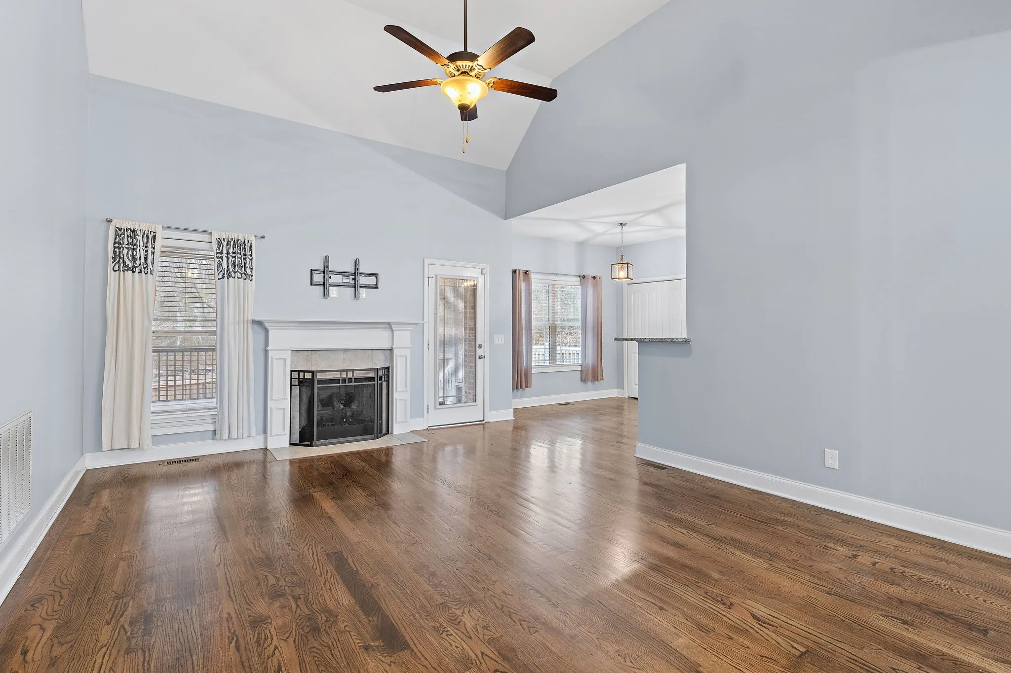 Welcome home, where single level living on a cul-de-sac meets proximity to all things in Smyrna, TN. Walk inside and notice beautiful hardwood floors as your eyes travel up and view the sky high ceilings. The fireplace is ready for your cozy evenings all curled up! The dining room is spacious and features a large window wall with tons of natural light gleaming in, along with wainscoting and detailed molding around every corner. The kitchen showcases all new appliances, granite countertops and soft close cabinets and drawers. An eat-in area accompanies a large pantry with shelving so your countertops are never cluttered! The primary bedroom is oversized with an en suite bathroom and large closet. The secondary bedrooms are on the opposite end of the home, offering privacy. The oversized bonus room is ready to host your upcoming SuperBowl party! If that isn’t enough, the sizeable screened in porch feels secluded and ready for those summer evenings with your tree lined backyard. (There is a flex room with a large window that could be used as an office or 4th bedroom if needed.) No HOA here! Come fall in love with your new home!