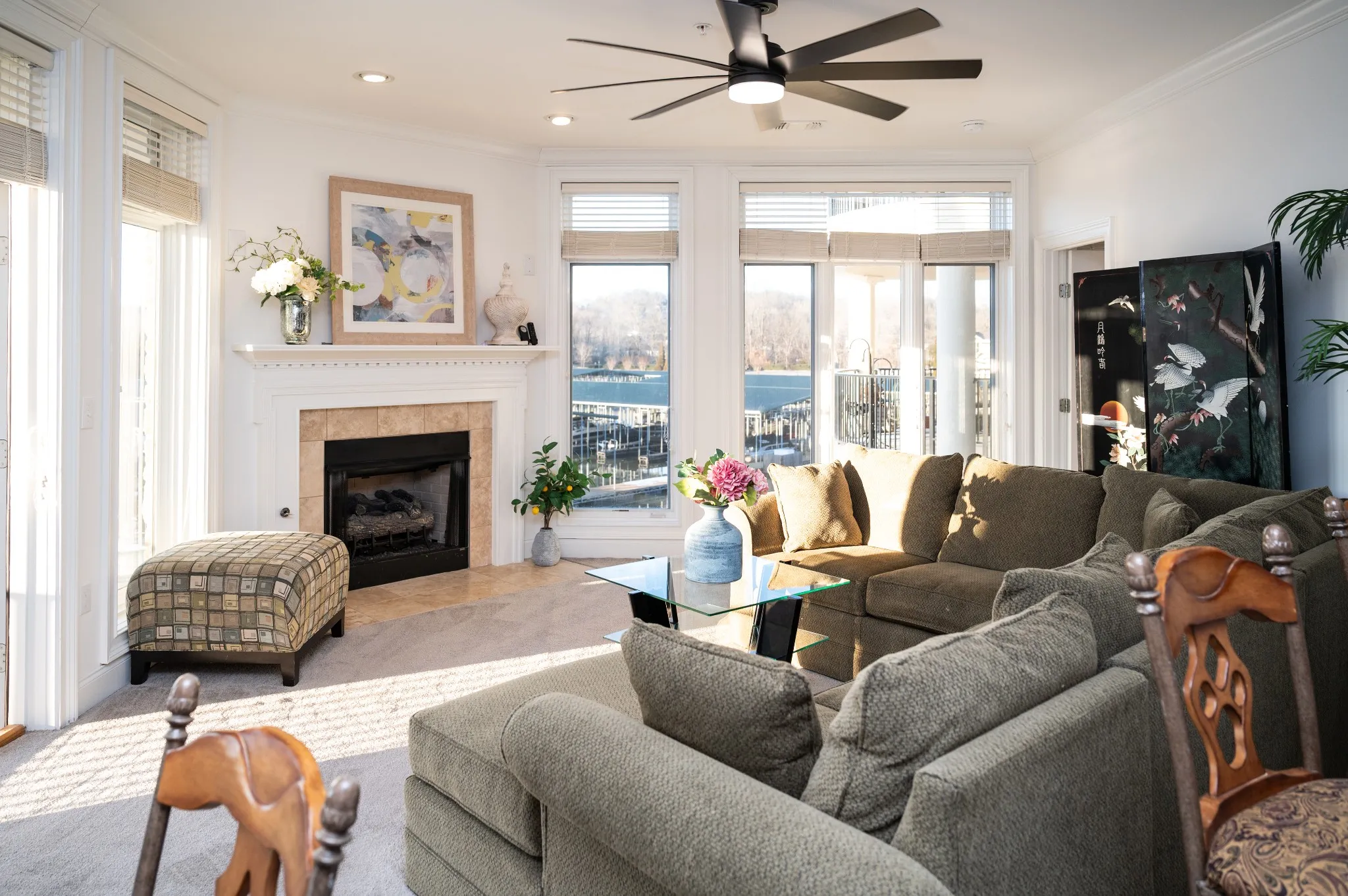 Enjoy breathtaking marina views from every room in this thoughtfully designed home. The open-concept living area features a cozy fireplace, while the chef’s kitchen boasts a peninsula bar and a spacious pantry. The Primary Bedroom includes a generous walk-in closet and an updated travertine-tiled bathroom with a brand-new shower.
