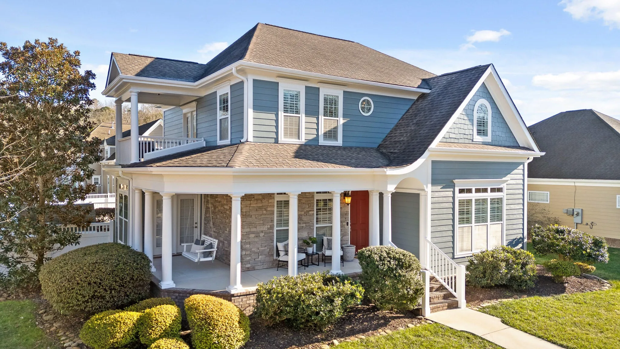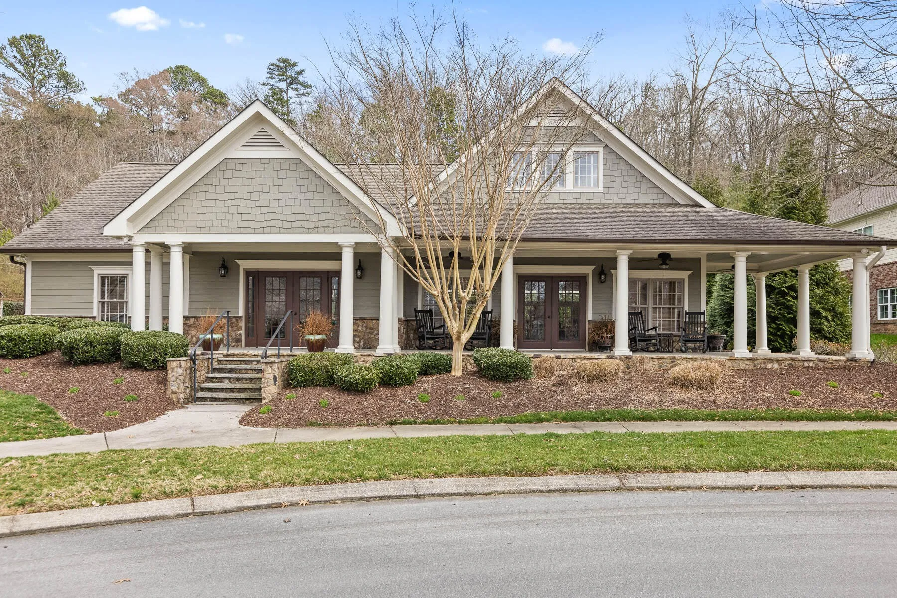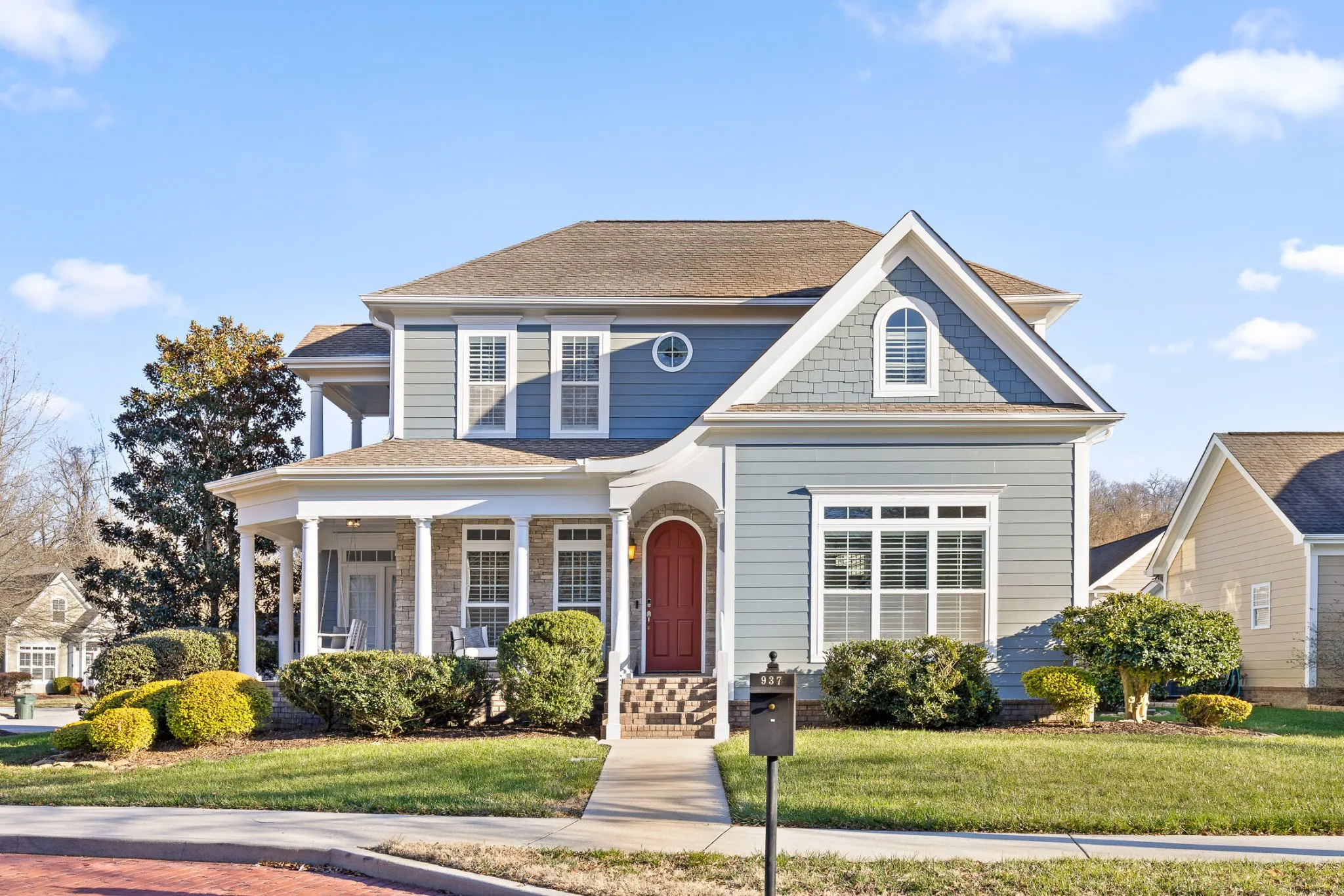 Welcome to 937 Reunion Drive, a beautifully updated Southern charmer in the heart of East Brainerd. Located in the highly sought-after Reunion neighborhood, this 4-bedroom, 3-bathroom home offers a blend of timeless character and modern conveniences, all within a community known for its meticulously maintained homes and cohesive charm. Freshly painted inside and out, this home is move-in ready and packed with thoughtful details. From the moment you arrive, the large wrap-around front porch welcomes you with classic charm. Complete with a swing and ample room for sitting, it’s the perfect spot to relax and enjoy the peaceful surroundings. Step inside to find hardwood floors on the main level and much of the upstairs, accented by natural light pouring in through large windows. The kitchen is a showstopper, featuring granite countertops, a pot filler over the gas range, and modern fixtures. Adjacent is a breakfast/keeping room that flows seamlessly into the cozy living room with a gas fireplace, creating a warm and inviting space for gatherings. The main level includes a versatile room that can function as a guest bedroom or home office, with a full bathroom conveniently located across the hall. Upstairs, the master suite is an expansive retreat, offering enough space for a sitting or TV area. A private balcony extends from the master, perfect for enjoying a morning coffee or unwinding in the evening. The ensuite bathroom boasts a soaking tub, a large walk-in shower, and access to a custom-designed closet with ample shelving. Two additional upstairs bedrooms provide comfort and flexibility, with one featuring an adjoining bonus room ideal for a playroom, study, or teen lounge. Outside, the fenced backyard offers a manageable outdoor space, perfect for pets, play, or entertaining on the covered patio. Thoughtful landscaping, custom lighting, and a sprinkler system enhance the exterior’s appeal.