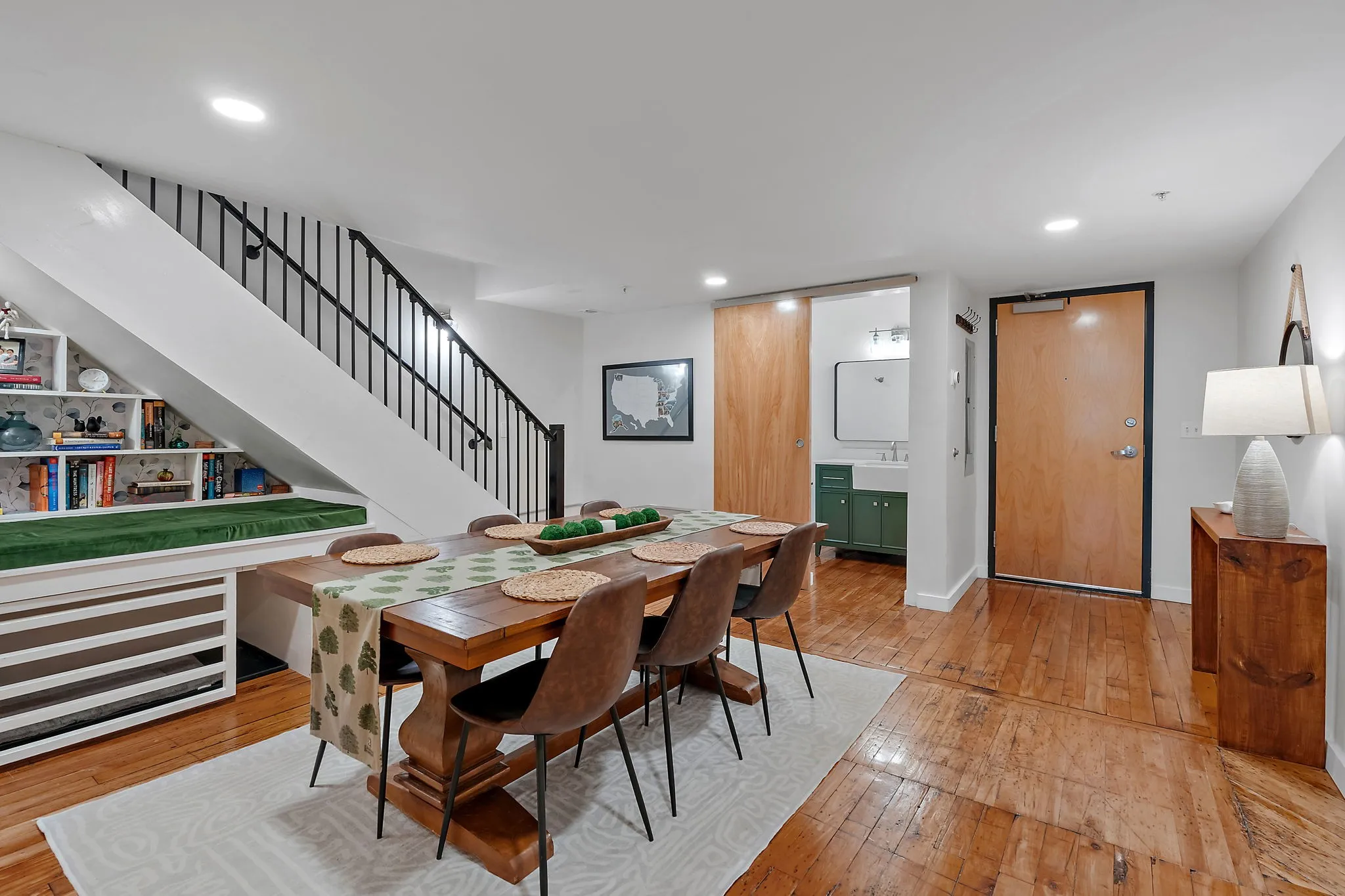 Spectacular lofted renovation boasts a spacious, functional floor plan. Upon entry, you are greeted by the Dining Room and a cozy reading nook. The below dog den offers your furry best friend their own cozy spot. The Kitchen is drenched in natural light from the two massive windows leading to your private patio overlooking the larger of the two pools. Kitchen offers ample storage as well as counter space, an island for barstools + updated appliances. Upstairs there is hidden storage behind the built-in bookshelf, wrap-around closet + room for a sitting area! Werthan Lofts amenities include two pools, a gym, yoga studio, bocce ball court, cabana with outdoor kitchen and gated parking. Steps to some of the best restaurants, charming coffee shops, Sounds baseball stadium, Farmers Market + Bicentennial Mall. Downtown Nashville + interstate access are moments away. Own a piece of history in one of Nashville’s most sought after neighborhoods! Storage unit included with sale!