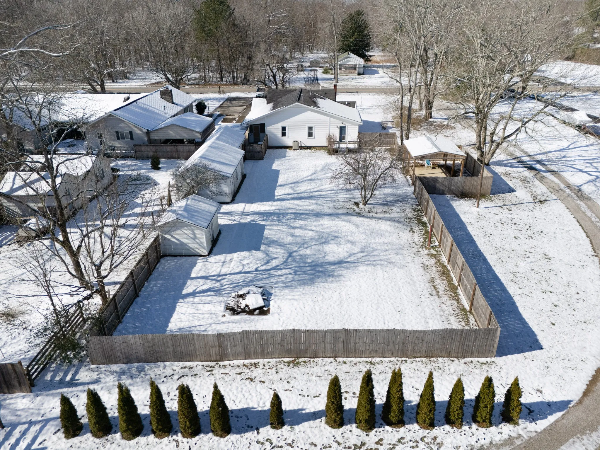 This house is so cute & cozy! A mixture of original touches throughout. The large fenced backyard features a pavilion and three outbuildings. Some of the updates that have been done in the past few years and more recently are: new electrical 2024, gutters 2024, pavilion 2023, fence 2022, roof 2021, vapor barrier 2021, water heater 2020, and the crawlspace has just been completely redone and has a lifetime warranty. The Den can be used as a 4th bedroom. Move in ready!