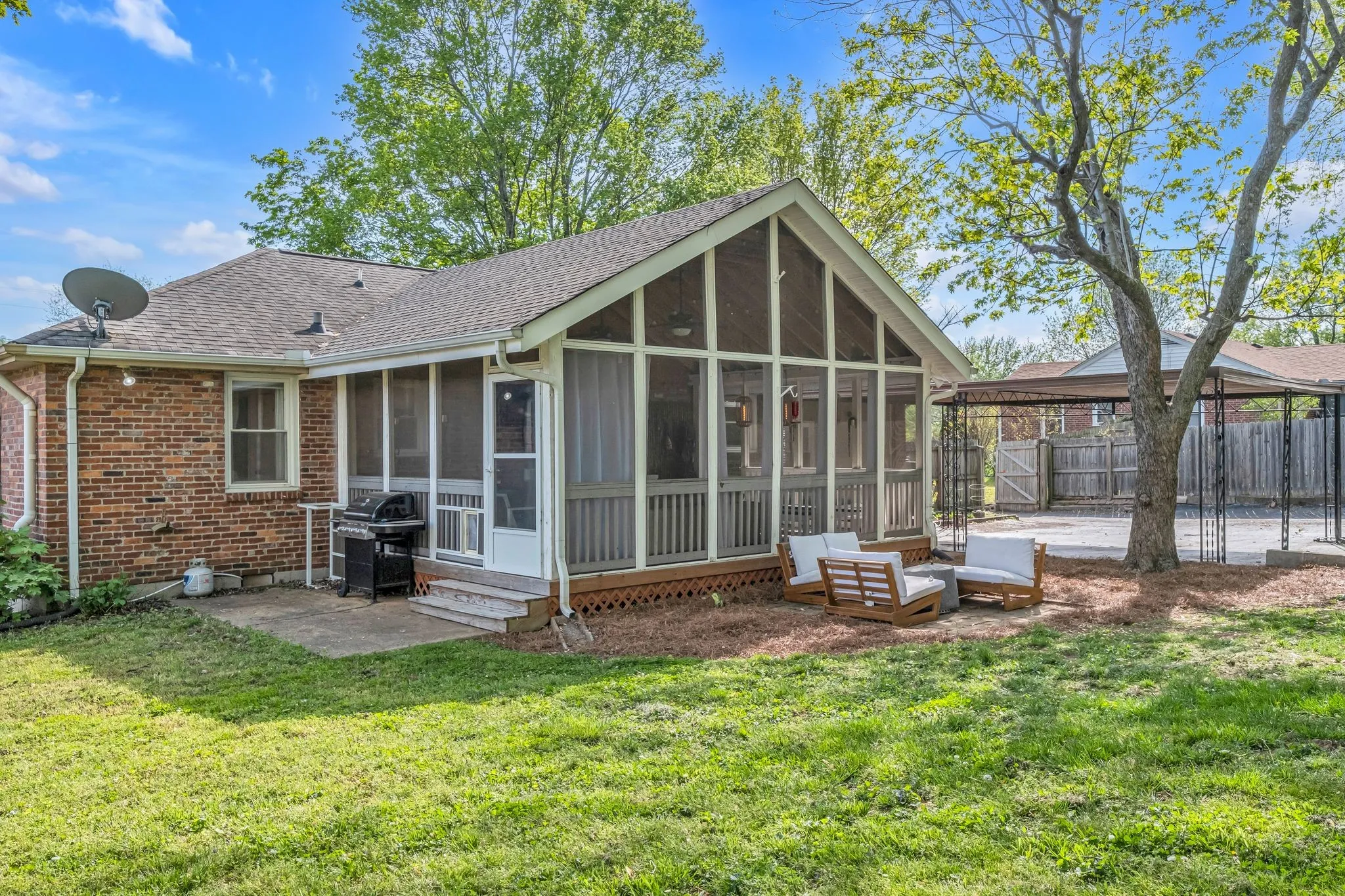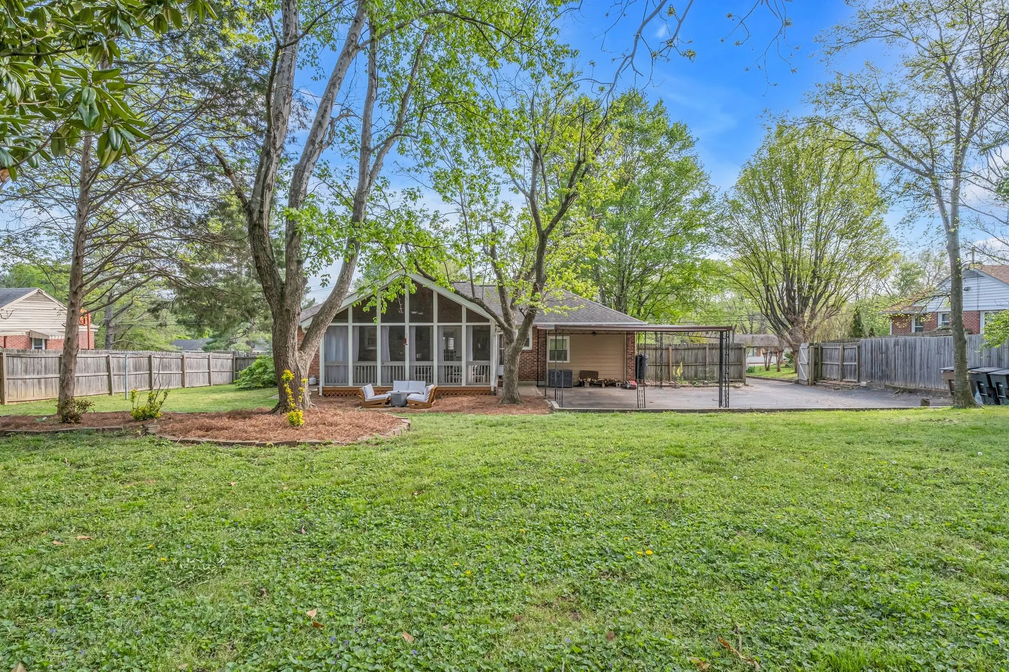 Welcome to the epitome of charm nestled within Caldwell Hall. From the moment you set foot on the welcoming covered front porch to crossing the threshold into the inviting open floor plan, this home boasts practicality and hospitality at every turn. Enjoy the primary ensuite, boasting a walk-in tile shower, and two equally enchanting secondary bedrooms & updated hall bathroom, providing convenience and style. The true gem awaits outside – a vaulted, generously sized screened-in porch that seamlessly integrates with the living space. The outdoor oasis is complete with a two-car carport and a fenced-in, private yard. This location offers the allure of a quiet residential neighborhood within a quick commute to I-65/I-24. Sellers are offering a RATE BUY DOWN of up to $10,000