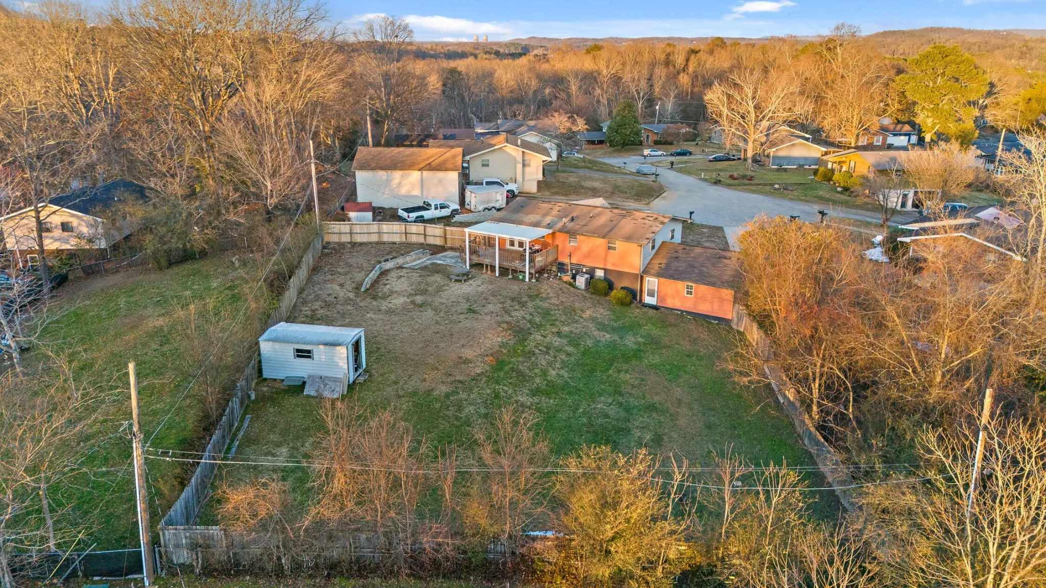 Charming Split-Level Home on a Spacious Acre in a Desirable Neighborhood that is ready for your personal touches. and updates. Located just minutes from Harrison Bay State Park and only 15 minutes from downtown Chattanooga, 9101 Glouster Lane offers over 3,100 square feet of thoughtfully designed living space in an established neighborhood off Hickory Valley Road. This home has it all—comfort, versatility, and an abundance of potential! This home is in need of some updates as you consider your next move. With primary suite options on both floors, large open living rooms, and plenty of space for a home office or even a movie theater, the possibilities are endless. The basement includes an added flex space that was most recently used as a second primary suite, providing even more flexibility to suit your needs. Step outside to a beautiful covered back porch, where you’ll enjoy scenic views of a tranquil wooded lot just beyond the fenced-in backyard—perfect for relaxing or entertaining. The flat, fully fenced yard offers privacy and plenty of room for outdoor activities. Additional exterior features include a wired storage building for tools and projects, plus two driveways offering ample parking for family and guests. This home is ready for its next chapter and is a must-see for space versus value. Whether you’re seeking outdoor space, indoor relax space or the perfect blend of both, 9101 Glouster Lane has everything you’ve been looking for!