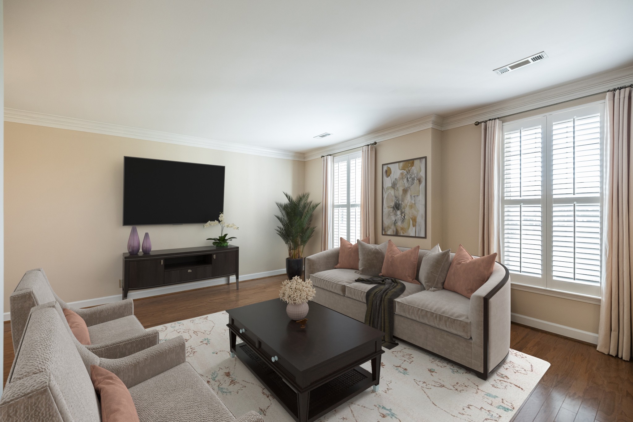 Walk out your front door to the beautiful greenspace of common area and a short walk to the pool and clubhouse. Beautiful and Upgraded Townhome in River Plantation. Plantation Shutters, Granite Counters, Hardwood Floors Downstairs and in Primary Suite, Crown Molding, Tray Ceilings, Separate Den with Gas Fireplace by remote and Builtins! Primary Suite offers 2 Separate Walk in Closets. Double Vanities. Brand New State of the Art James Lawson High School. So close to all the dining and shopping at One Bellevue Place.