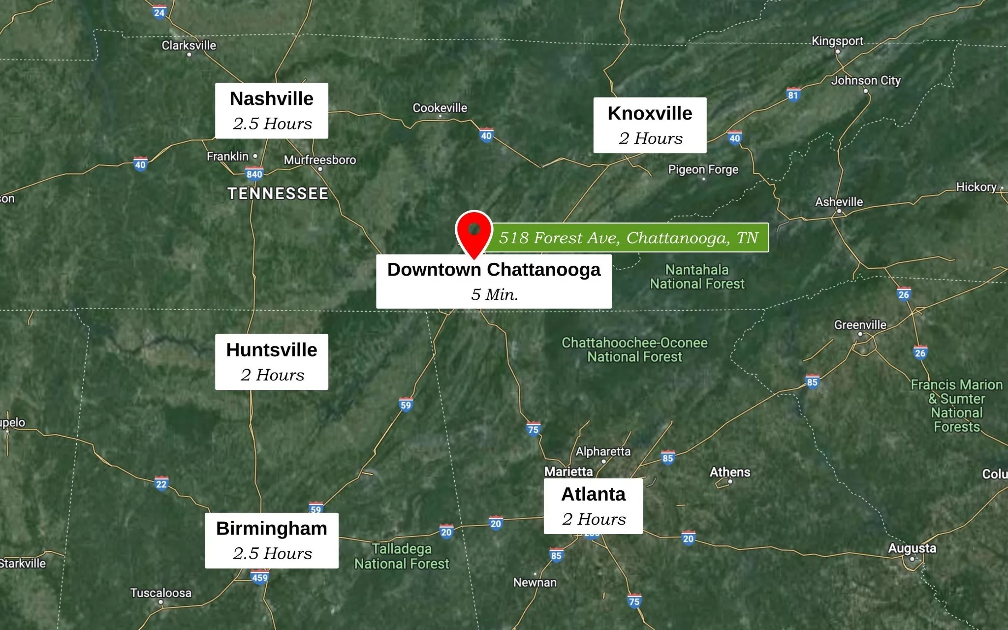 - Directions: From Downtown Chattanooga: take Market Street bridge to Northshore. Turn R on Frazier Ave. L on Forest Ave. Home on the Right.