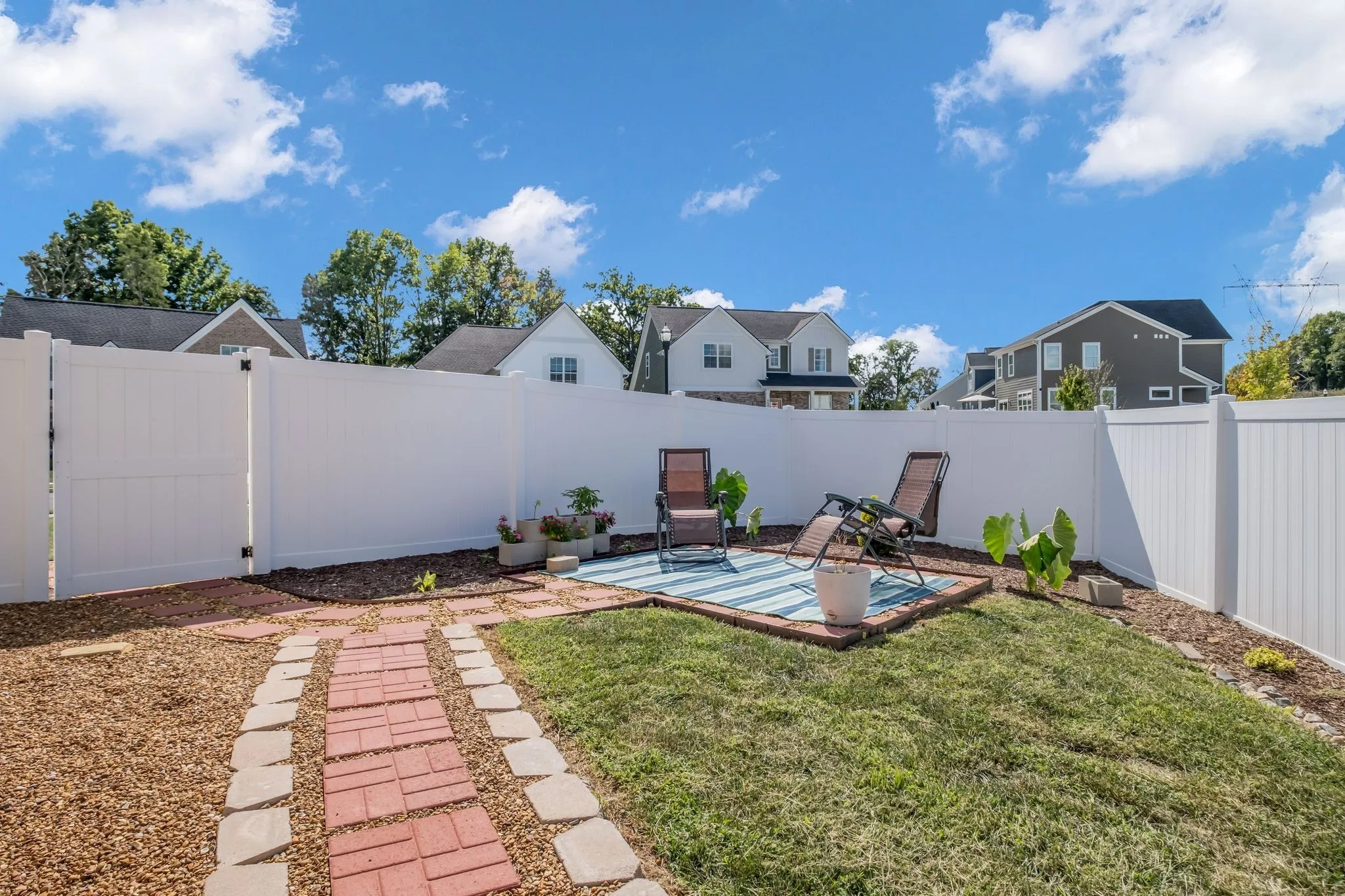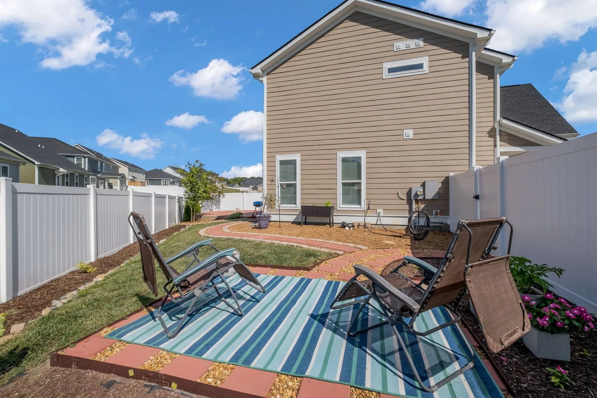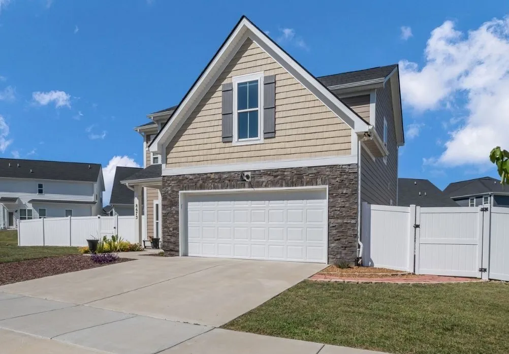 Introducing this stunning 2-year-old home, better than new and move-in ready! Featuring the popular Highland floor plan by Haven Builders, this 4-bedroom, 2.5-bath home boasts a bright, open-concept design perfect for modern living. The chef’s kitchen offers granite countertops, stainless steel appliances, white Timberline shaker-style cabinets & soft close drawers. Soaring 9-foot ceilings, energy-efficient LED recessed lights, & durable LVP flooring. Blinds have been installed throughout for added privacy & convenience (not included w/ new construction). Step outside to your low-maintenance backyard oasis (minimal grass) with privacy fence already installed! Beautiful pavers, and added landscaping & trees. Upgrades include a camera doorbell & CAT5 wiring. Located only 10 mins to the NEW Tanger Outlets with Tailgate Brewery & more!