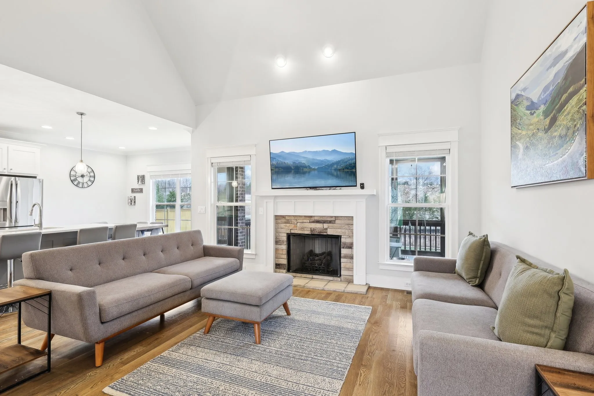 LIKE NEW- MOVE RIGHT IN! This beautiful all brick home features a light and bright modern floorplan designed for entertaining. The great room features vaulted ceilings and a cozy fireplace and opens up to the designer kitchen with large island, SS appliances and convenient breakfast nook. Formal dining room at the front of the home offers flexibility for entertaining or as an office space. Main floor primary suite features a large walk in closet and ensuite with dual vanity, tile shower with glass enclosure and soaking tub. Additional first floor guest/MIL suite. The second floor offers a large bonus room/movie room over the garage with high ceilings and two generously sized secondary bedrooms with shared bath. Outside the deck is covered and screened for enjoyment with additional concrete patio and fully fenced yard. Silver Springs offers a community pool and playground and is in a GREAT location close to all nearby amenities with easy access to Nashville. Check out the 3D tour online and schedule your private viewing today!