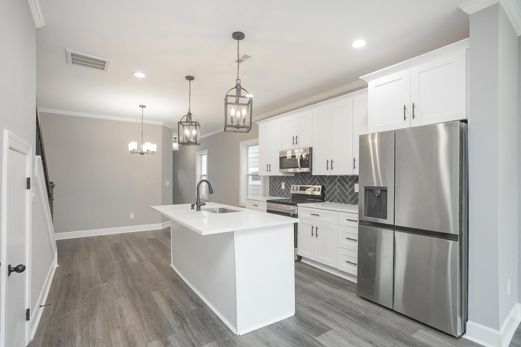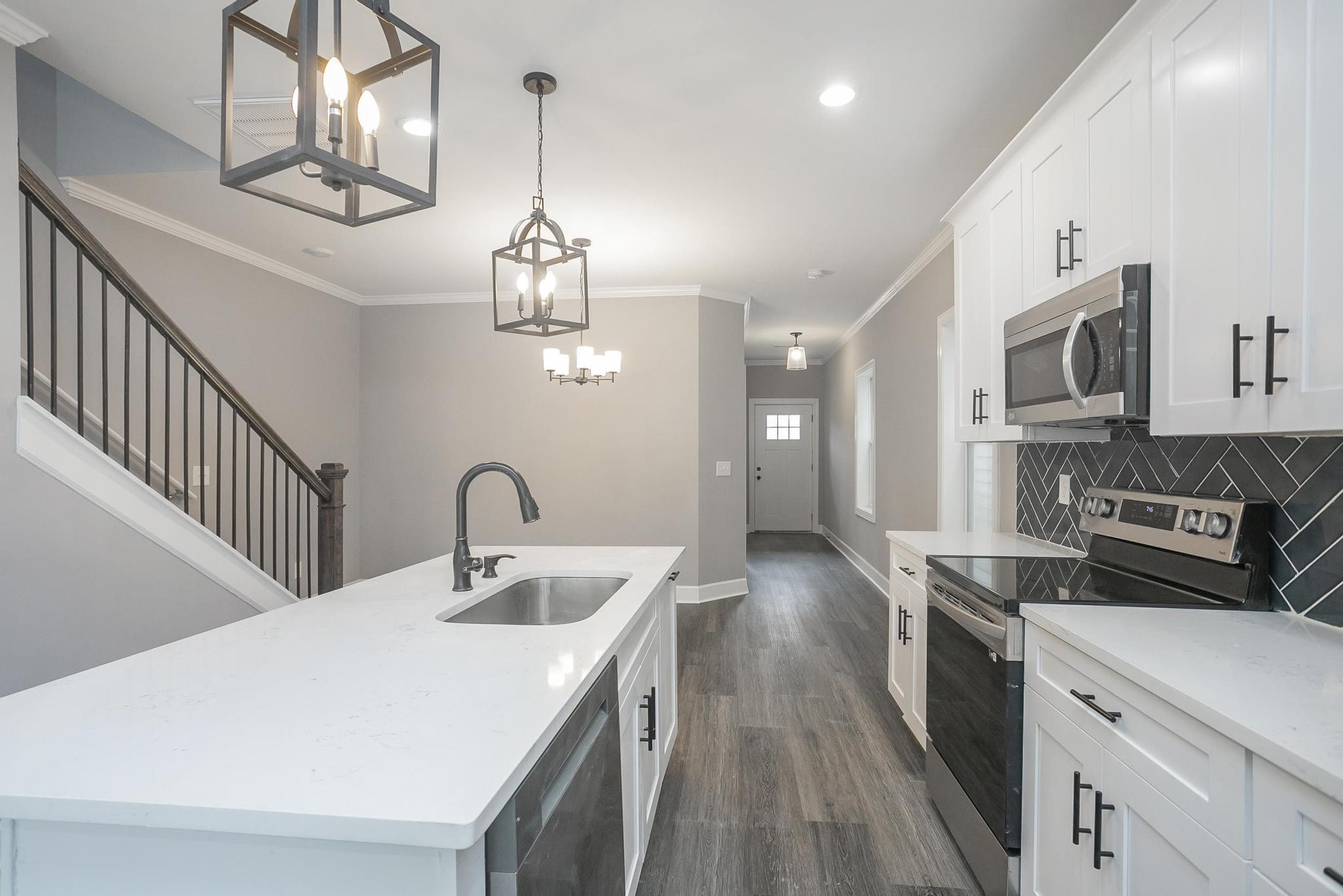 Custom new construction, quartz, LVP waterproof, tile showers & floors, modern custom finishes, SS appliances, backsplash, custom glass shower door, three full bathrooms, deck, rear fence, etc. Close to I-65 & I-24. No HOA. House is complete 100% and ready for occupancy.