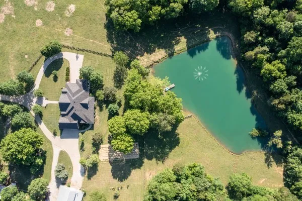 REDUCED!! You can have it all with this home and 20 acres: This custom, contractor owned, architectural designed home, offers everything you could want or need! Unique master construction and perfect, family planned design has 4-5 bedrooms w/additional sq ft if desired. Full basement w/bedroom, living area w/FP, full bath and storage. Upper and lower garages. 20 acres will be surveyed before sale, (More acreage available). The length of the home covered back porch is magical, overlooking a 1+acre stocked lake w/fountain, surrounded by mature trees, pasture and wildlife. Horse barn, shop and cattle/hay barn, horse trails, fully fenced pastures are waiting for your horses or cattle. New roof, freshly painted, heated tile flooring and new appliances! This home is handicap assessible, few steps, easy entry! Home was built for privacy!!!