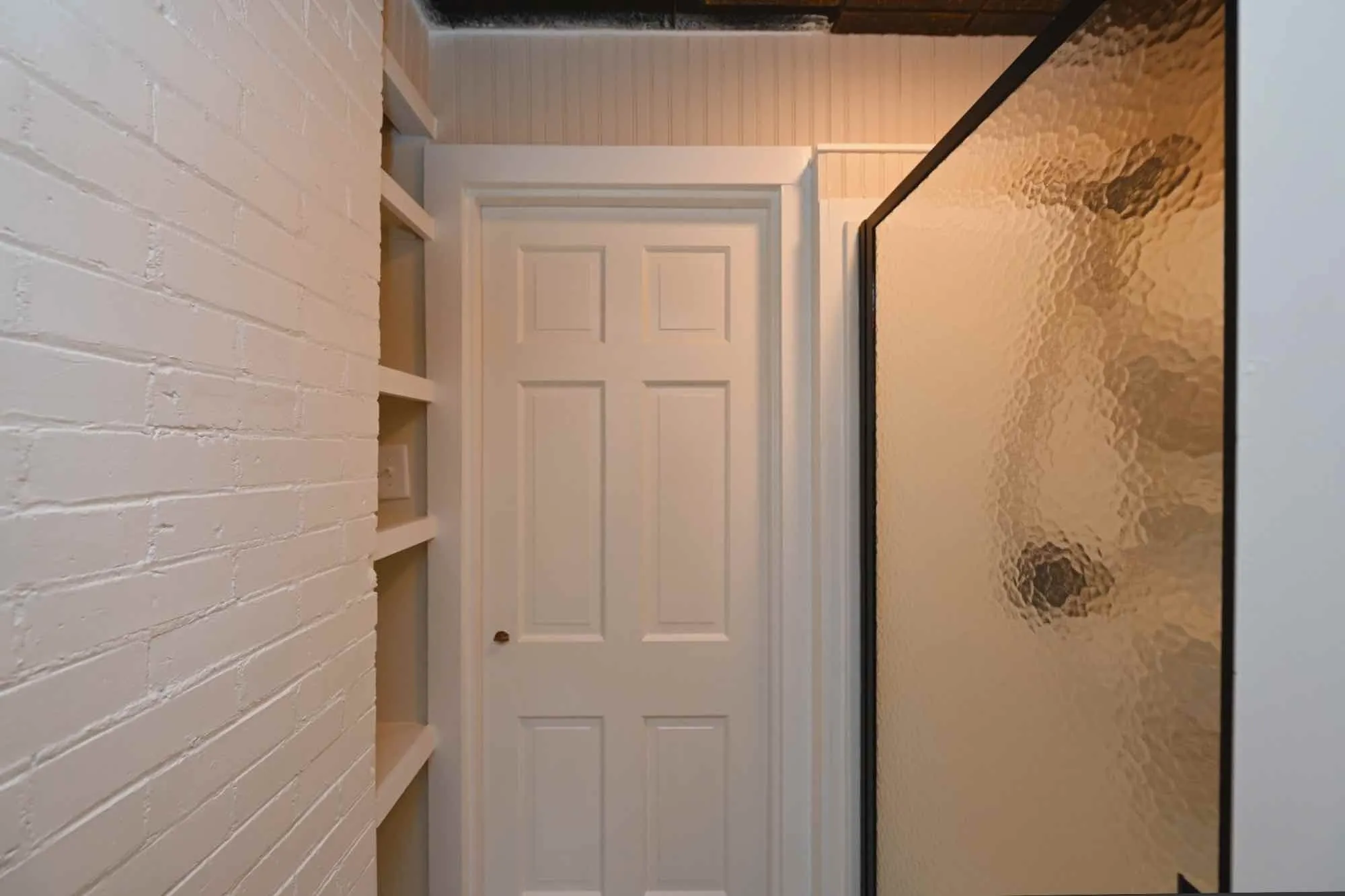 "ShortDescription" => "Shelving cabinet opens to reveal the water heater for the bathroom"