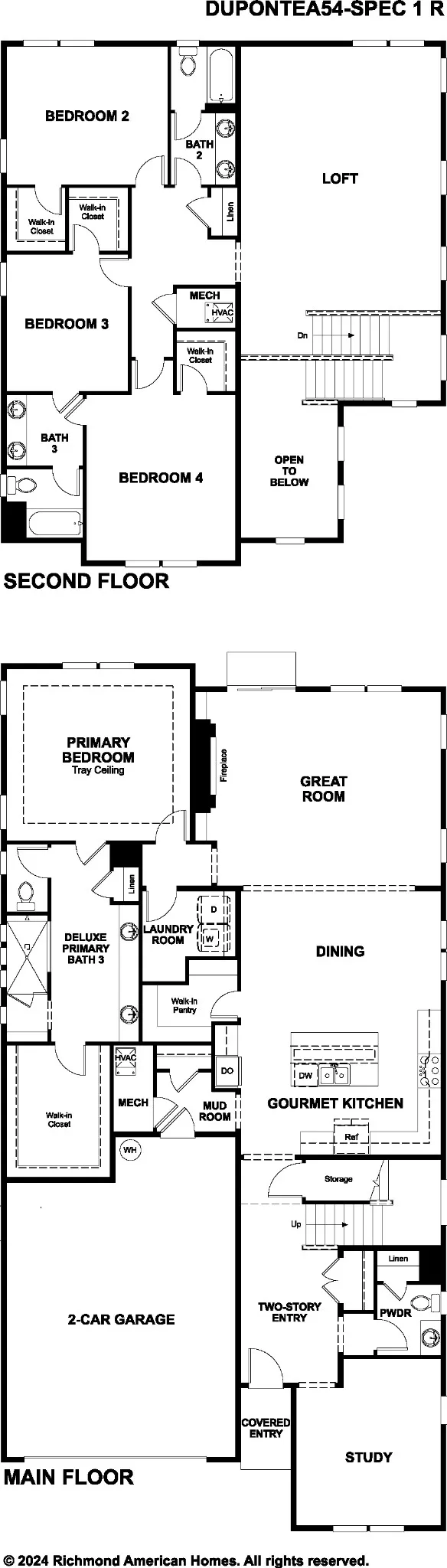 Don’t miss out on the stunning Dupont plan! At the heart of this home, discover an immense great room, a dining area and a gourmet kitchen offering a sizable island and walk-in pantry. A serene primary suite can be found off the great room and boasts a tray ceiling, an oversized walk-in closet and a deluxe bath with double sinks. The second floor showcases three additional bedrooms with walk-in closets, two shared bathrooms and an expansive loft. Additional highlights include a study and powder room on the main floor, a cozy great room fireplace and a convenient laundry