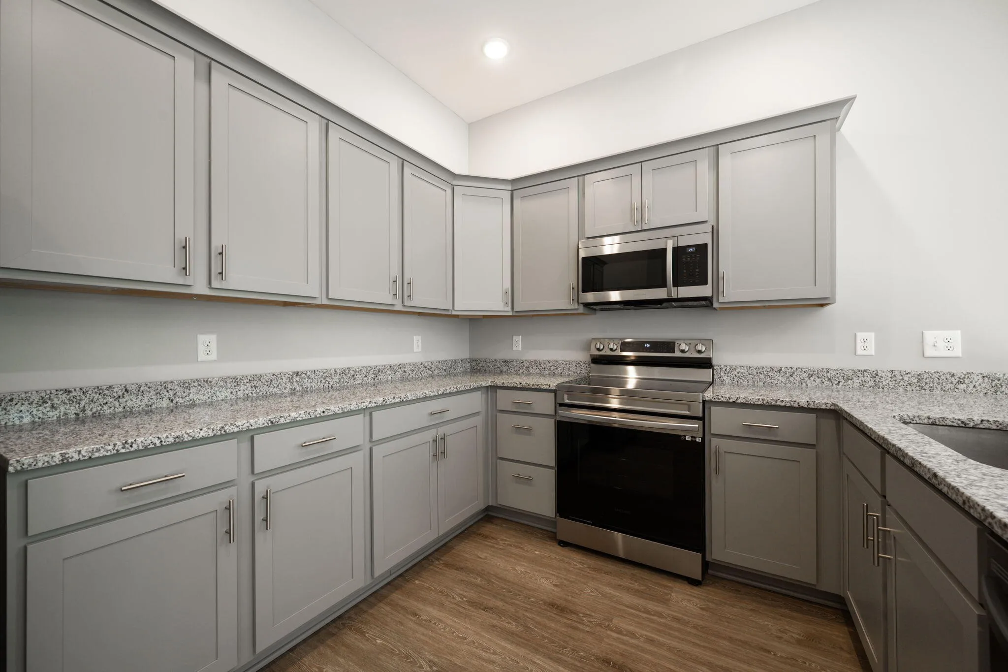 Inside, you’ll find luxury vinyl plank flooring for easy maintenance and brand-new carpet in select areas for added comfort. The kitchen comes equipped with granite countertops, stainless steel appliances, and plenty of cabinet and counter space—perfect for preparing meals and staying organized. The spacious primary bedroom includes a private ensuite bath, while the additional bedrooms provide flexibility for family, guests, or work-from-home needs.