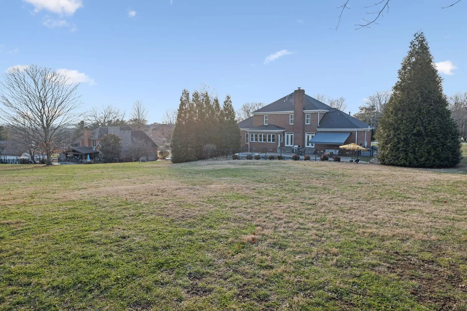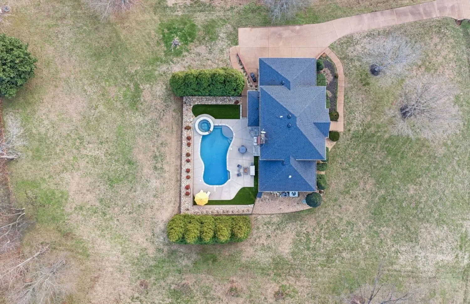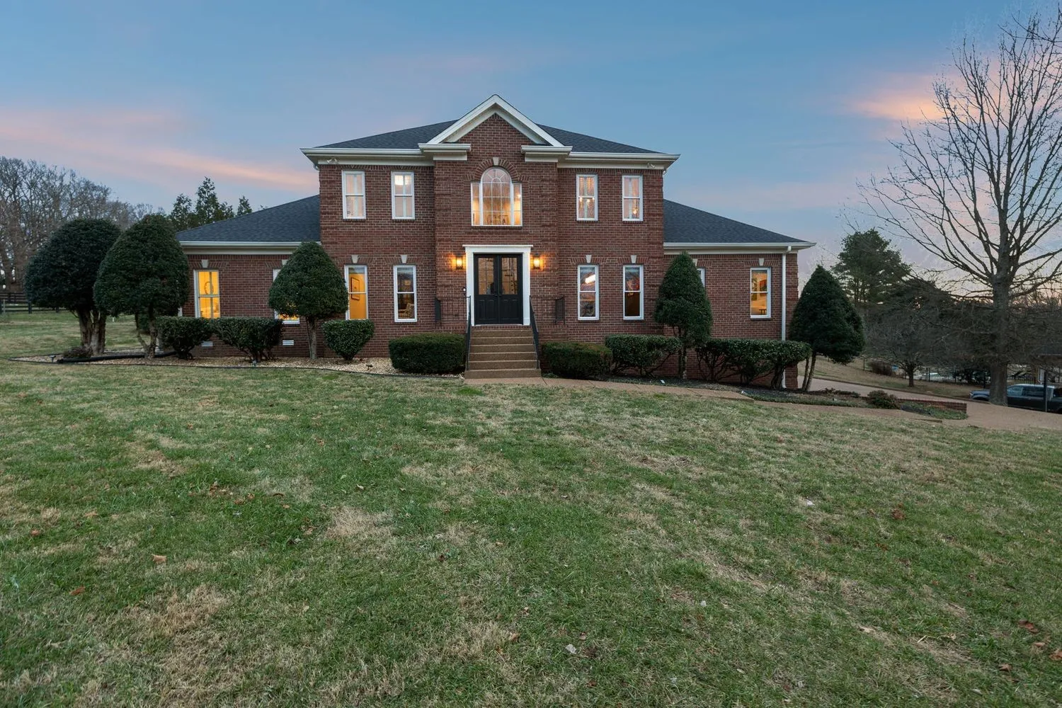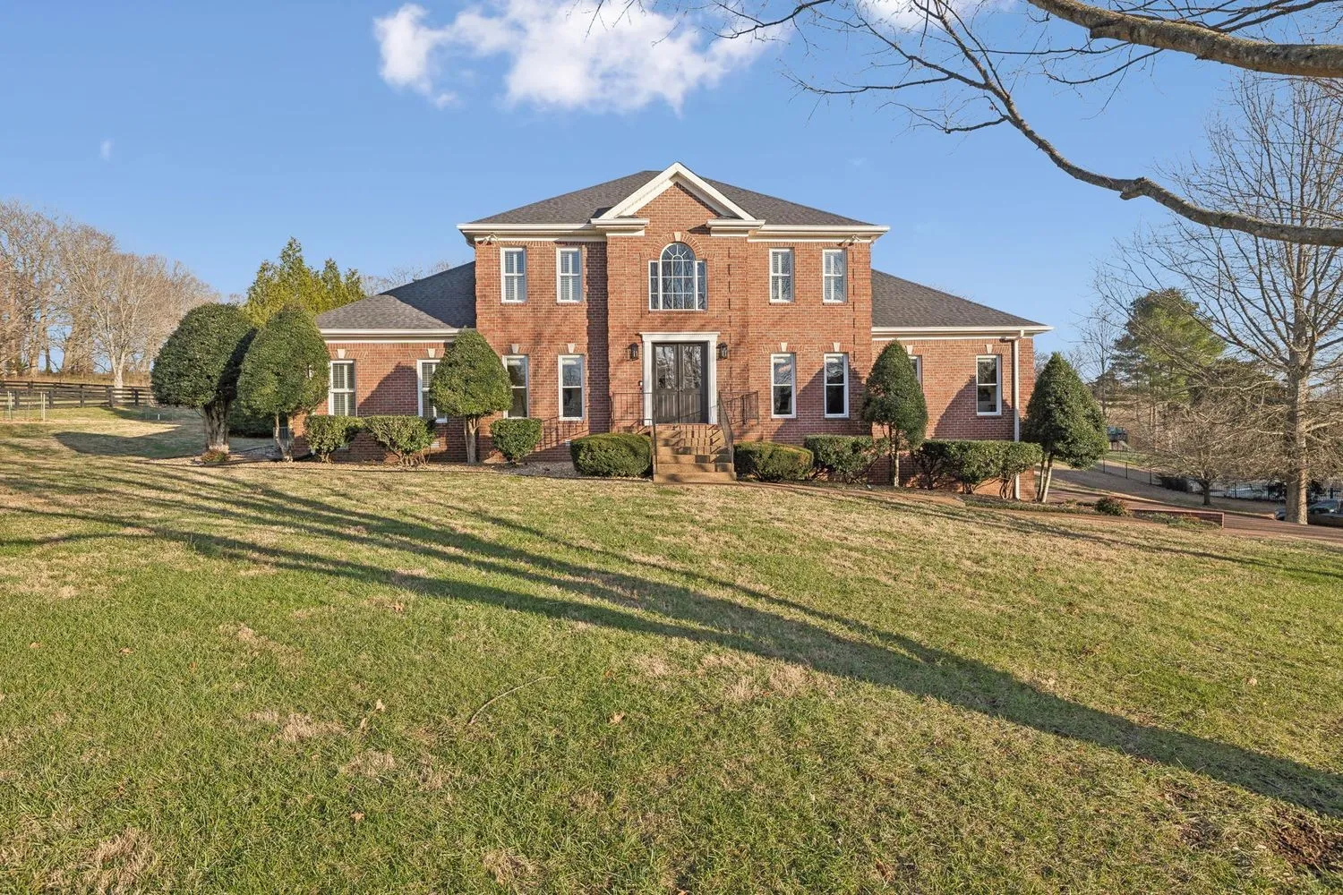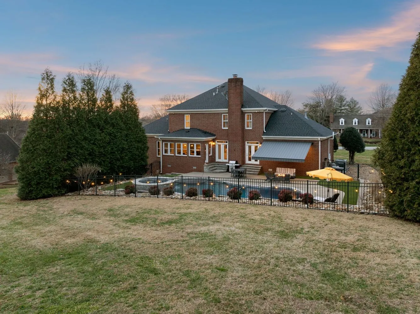 This designer owned home in the hills of Franklin offers an acre of serene living with ultimate privacy and gorgeous landscaping backing up to a 100-acre farm. Over $200,000 in updates in the last 18 months! The updated kitchen (2023) is a chef’s dream, featuring marble countertops, a Sub-Zero refrigerator, and a spacious layout perfect for entertaining. Outdoors, enjoy a resort-like experience with a heated Gunite pool complete with a hot tub, tanning ledge, new LED pool and spa lights, new Polaris pool cleaner and PebbleTec™ installed in 2023. Additional exterior features…remote controlled electric retractable awning with LED lights (2023) and natural gas fire pit and hard-plumbed natural gas BBQ Grill. The property also includes a three-car extra deep garage with built-in workbench. The remodeled primary bathroom suite boasts shiplap walls, a luxurious soaking tub, and a custom walk-in closet. All additional bedrooms feature ensuites and walk-in closets, providing comfort and convenience. Large downstairs office could be a fifth bedroom. Numerous upgrades throughout the home include designer wallpaper, new paint, a remodeled laundry room and a whole-home water filtration system. Design elements such as beautiful hardwood floors, a gas fireplace and modern light fixtures add to the home’s charm. With a large outdoor entertaining area, this home provides extensive space for relaxation and enjoyment. Landscape lighting beautifully illuminates the surroundings, enhancing the property’s appeal. Recent updates include a new roof in 2022 and recently replaced HVAC units. Zoned for award winning Clovercroft Elementary, Woodland Middle and Ravenwood High.This is a must-see home!