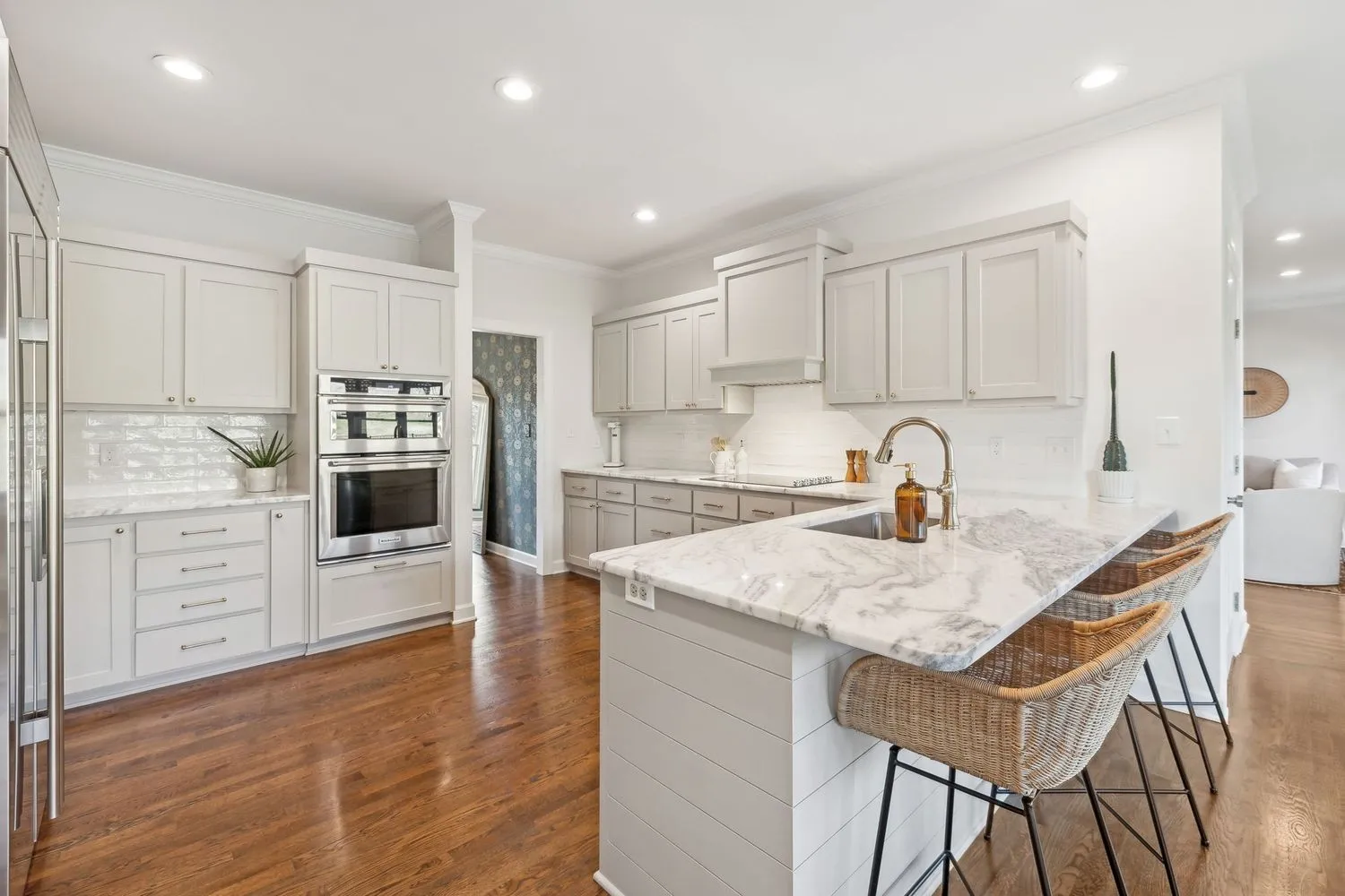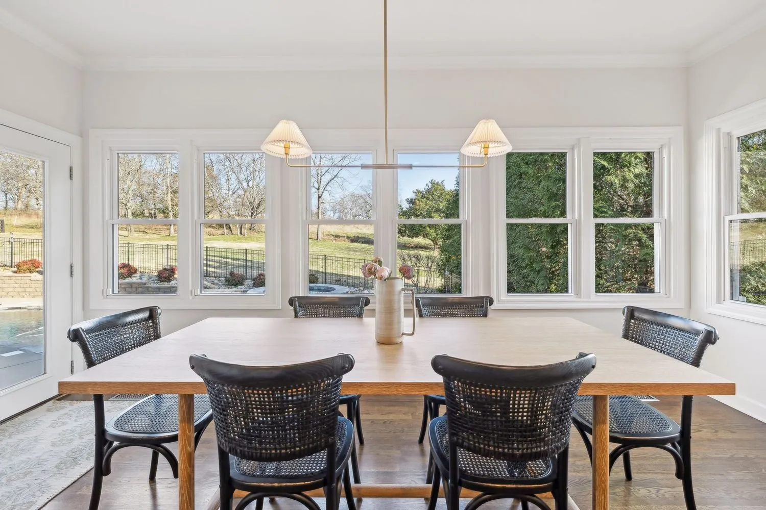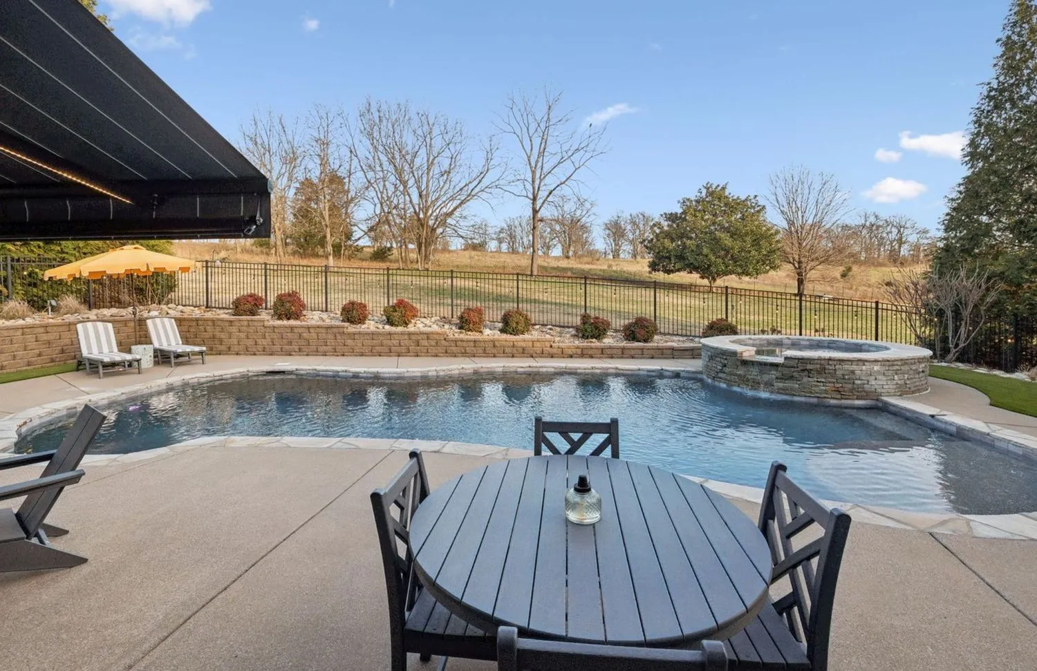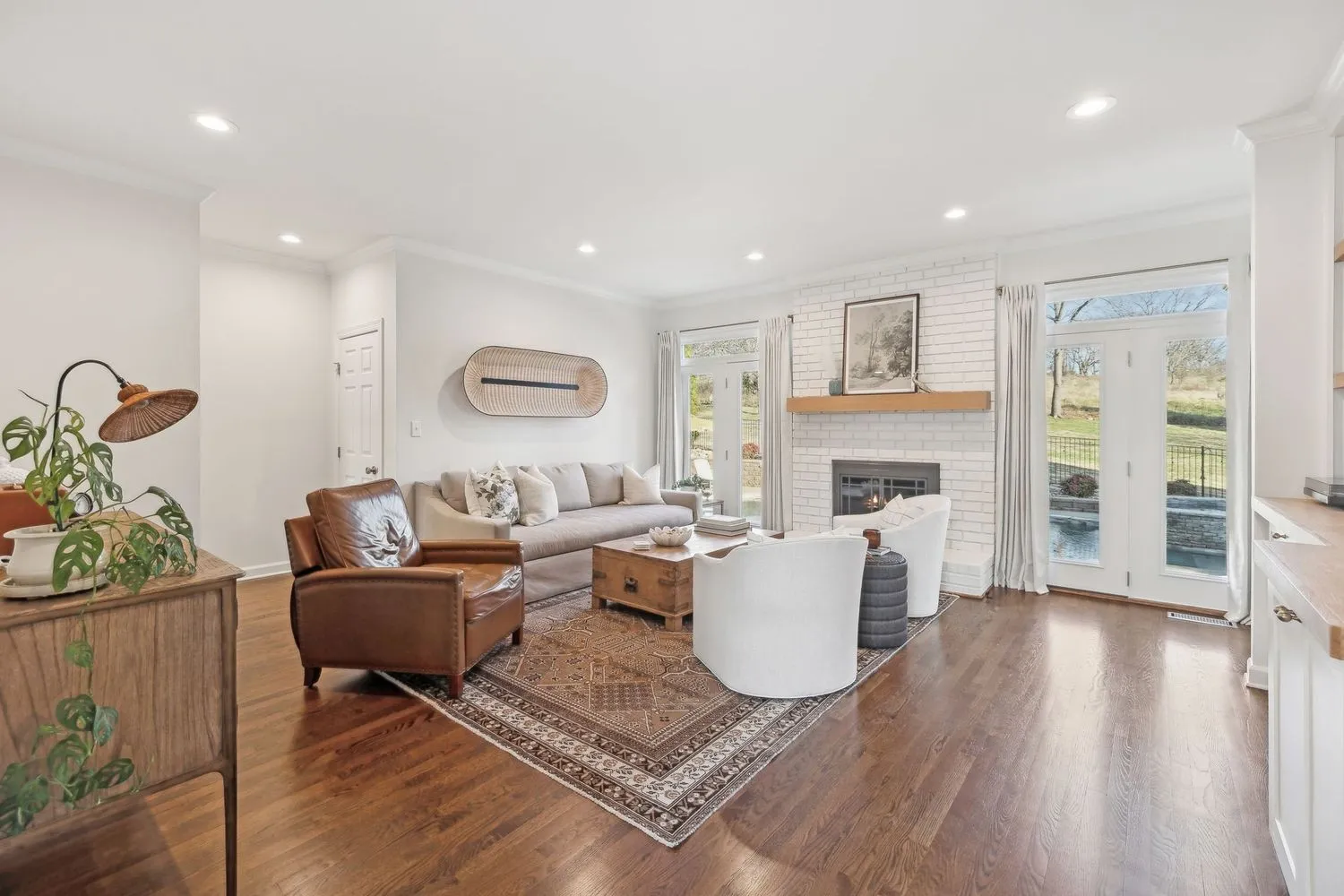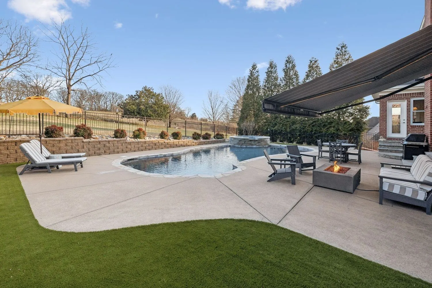 This designer owned home in the hills of Franklin offers an acre of serene living with ultimate privacy and gorgeous landscaping backing up to a 100-acre farm. Over $200,000 in updates in the last 18 months! The updated kitchen (2023) is a chef’s dream, featuring marble countertops, a Sub-Zero refrigerator, and a spacious layout perfect for entertaining. Outdoors, enjoy a resort-like experience with a heated Gunite pool complete with a hot tub, tanning ledge, new LED pool and spa lights, new Polaris pool cleaner and PebbleTec™ installed in 2023. Additional exterior features…remote controlled electric retractable awning with LED lights (2023) and natural gas fire pit and hard-plumbed natural gas BBQ Grill. The property also includes a three-car extra deep garage with built-in workbench. The remodeled primary bathroom suite boasts shiplap walls, a luxurious soaking tub, and a custom walk-in closet. All additional bedrooms feature ensuites and walk-in closets, providing comfort and convenience. Large downstairs office could be a fifth bedroom. Numerous upgrades throughout the home include designer wallpaper, new paint, a remodeled laundry room and a whole-home water filtration system. Design elements such as beautiful hardwood floors, a gas fireplace and modern light fixtures add to the home’s charm. With a large outdoor entertaining area, this home provides extensive space for relaxation and enjoyment. Landscape lighting beautifully illuminates the surroundings, enhancing the property’s appeal. Recent updates include a new roof in 2022 and recently replaced HVAC units. Zoned for award winning Clovercroft Elementary, Woodland Middle and Ravenwood High.This is a must-see home!