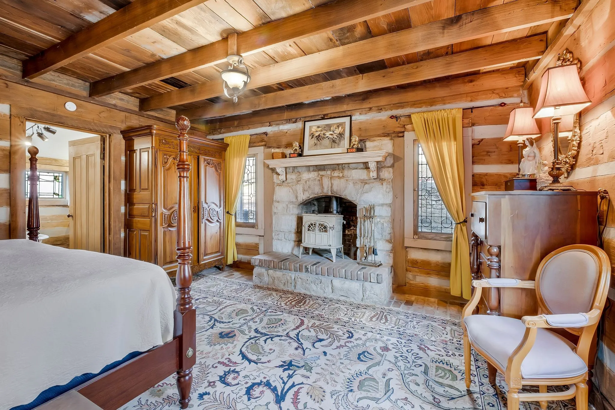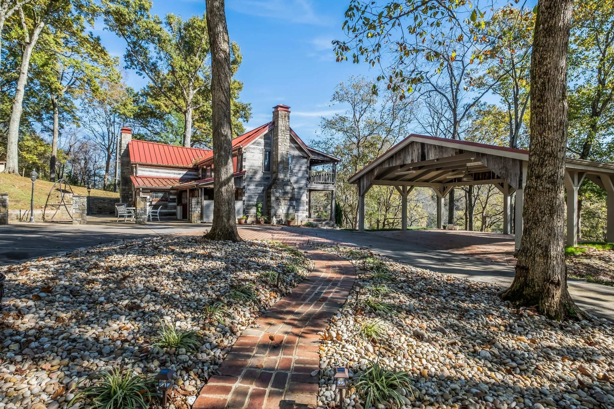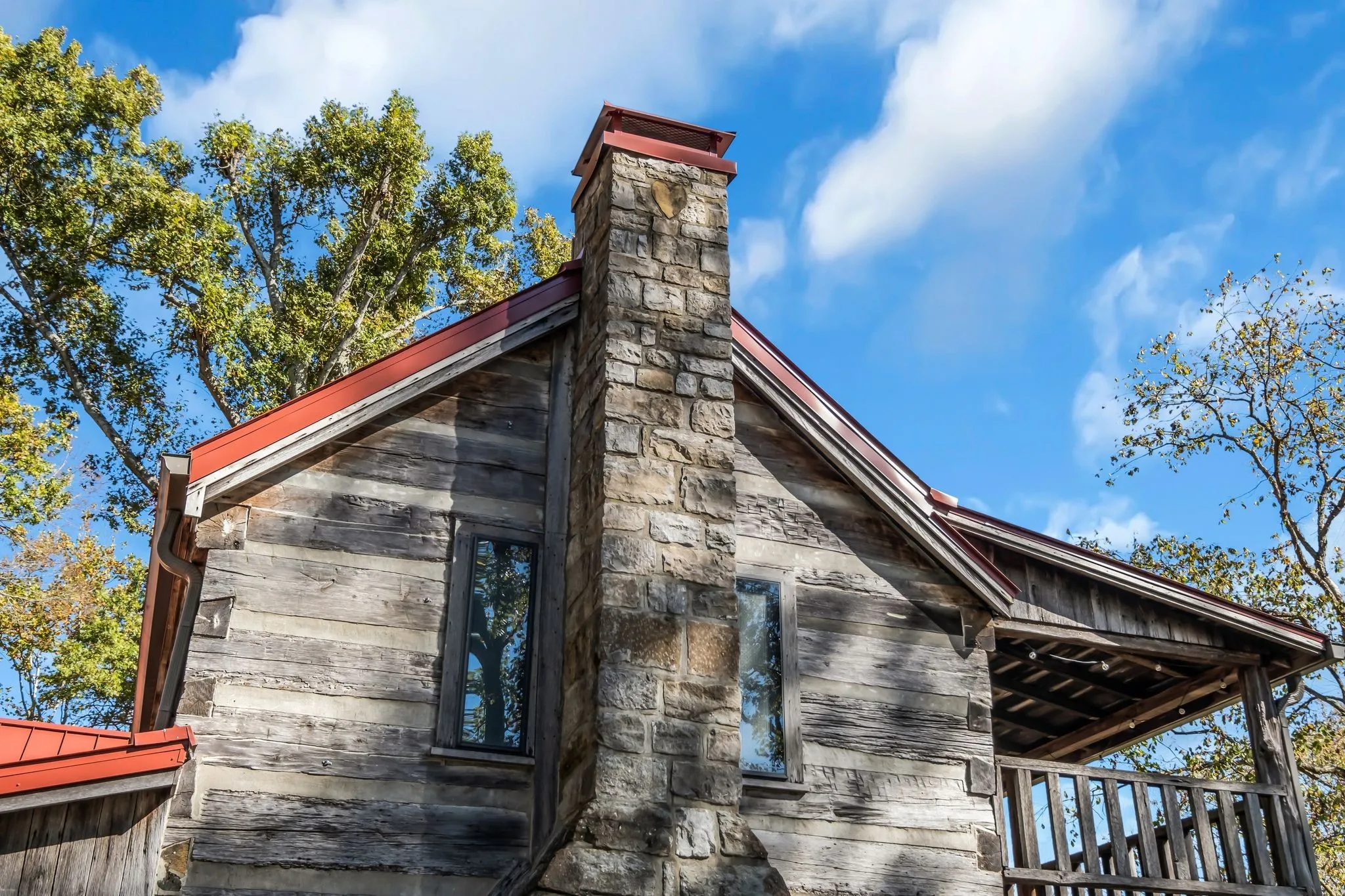 "ShortDescription" => "Braxton Dixson's signature stone heart is visible at the top of both chimneys. The roof is a new 24-gauge standing seam room with 4" of insulation under it. The chimney caps and gutters with leaf guards are all new."