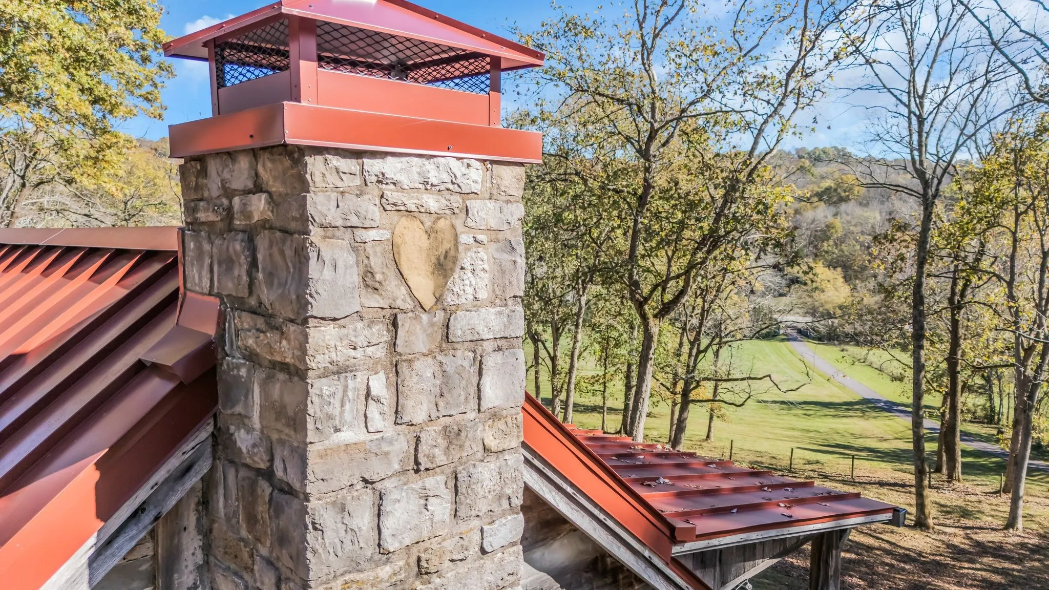 "LongDescription" => "Braxton Dixson's signature stone heart is visible at the top of both chimneys. The roof is a new 24-gauge standing seam room with 4" of insulation under it. The chimney caps and gutters with leaf guards are all new."