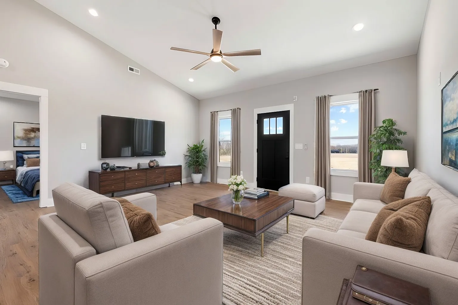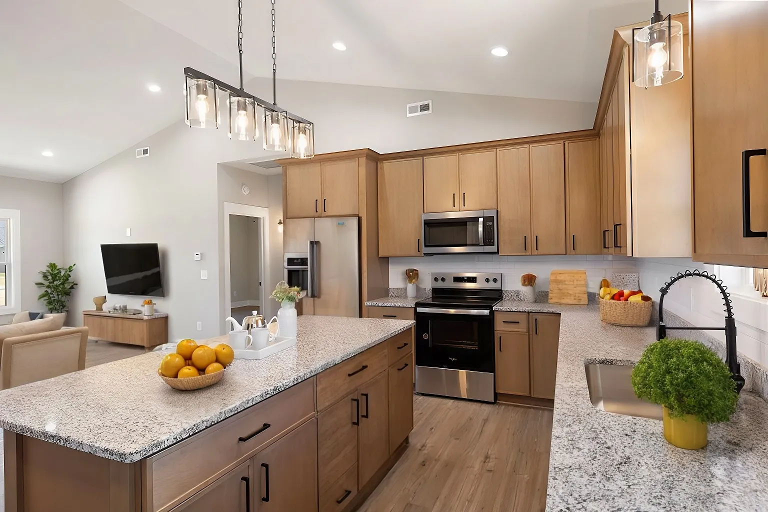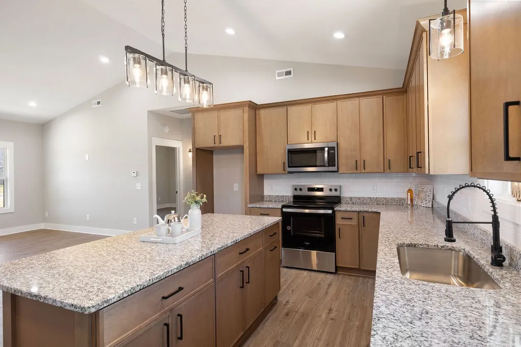 Welcome home to your beautiful new single story 1500sqft home! 9ft interior walls, vaulted ceilings, beautiful gabled front porch, 2BD (3rd room can be used as a bedroom, office, workout room, whatever you desire. 2 full bathrooms , open floor plan, soft-close cabinets with island, tier 1 granite, subway tile backsplash, stainless steel appliances! Luxury vinyl plank throughout, Huge walk-in closet in primary and tiled shower, large lot .81 acres so go ahead and build that shop/garage you’ve always wanted! Enjoy country living as you sit on your back covered porch and watch the deer and turkey! Lot size is large at approx .81 acres. Call today for more information! Images with furniture are computer generated for your imagination