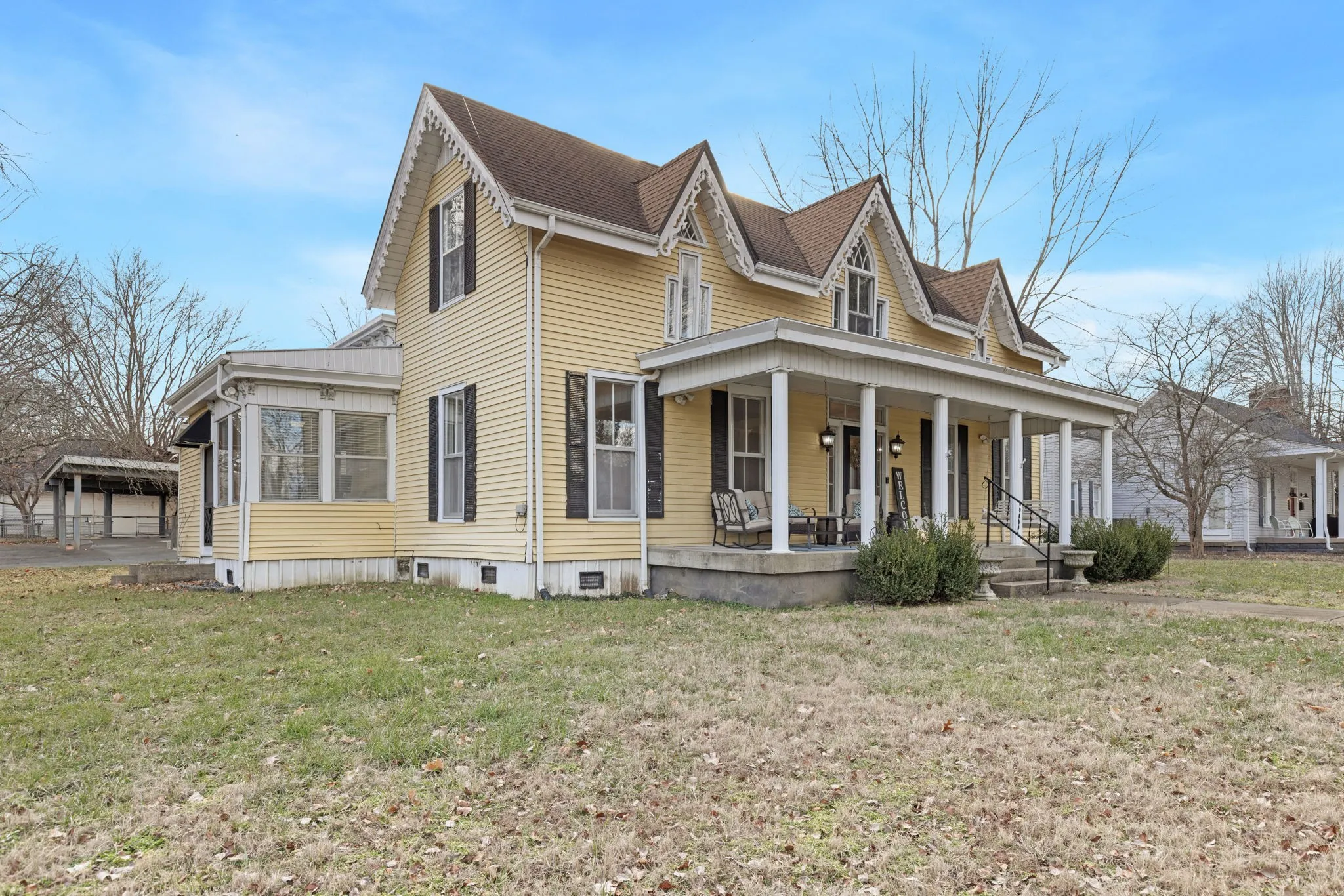 Drastically Reduced – Sellers Are Relocating Out of State and very Motivated!!! Step into a timeless masterpiece with this beautifully restored 1895 Victorian home, featuring 3 bedrooms, 2.5 bathrooms, and an exquisite blend of historic elegance and modern convenience. Completely remodeled in 2020, this home boasts high-end updates while preserving its original character. Gourmet Kitchen w/Custom cabinetry, new appliances, marble countertops, and stylish tile flooring. The primary suite located on the main level offers a luxurious retreat with a perfect blend of vintage splendor and modern comforts. From ornate detailing to high ceilings, every corner of this home exudes the timeless allure of the Victorian era. The primary bath and upstairs bath both feature classic clawfoot tubs, offering vintage elegance and a spa-like retreat. The upstairs bath also boasts granite flooring, while the downstairs 1/2 bath showcases handcrafted French fixtures and marble floors. Three gas fireplaces, vintage floor locks, beautiful chandeliers, and intricate wall detailing in the welcoming foyer. A separate office provides the perfect workspace, while a sunroom or receiving room with a gorgeous transom window offers additional charm and functionality. Enjoy the fenced backyard and relax on the inviting covered front porch. This Victorian gem is a rare find, offering a perfect balance of history and modern luxury. Nestled in a charming setting, this home is just 40 miles from Nashville, TN, offering easy access to city conveniences while enjoying a peaceful retreat. Don’t miss your chance to own a piece of the past, beautifully updated for today’s living!