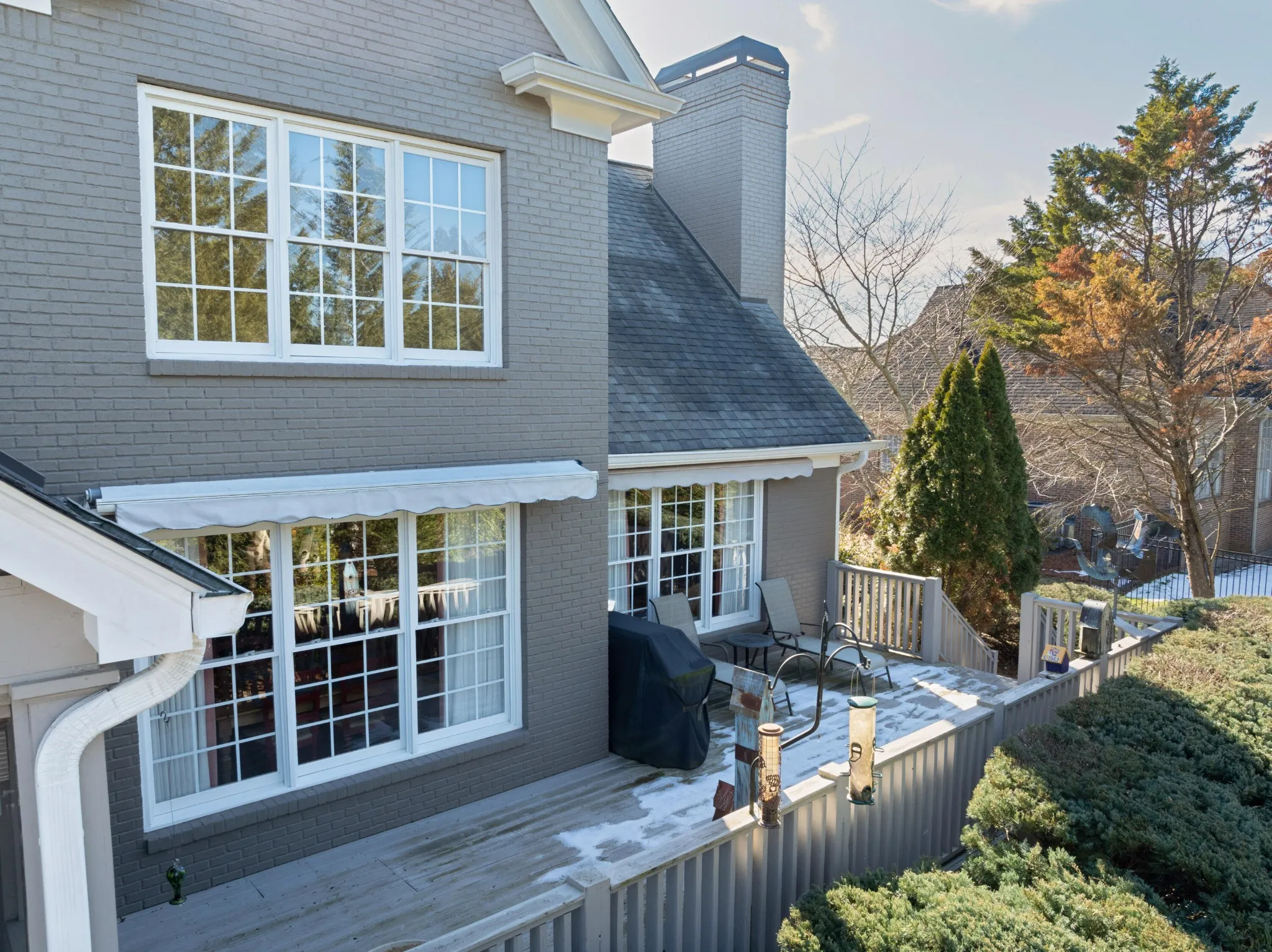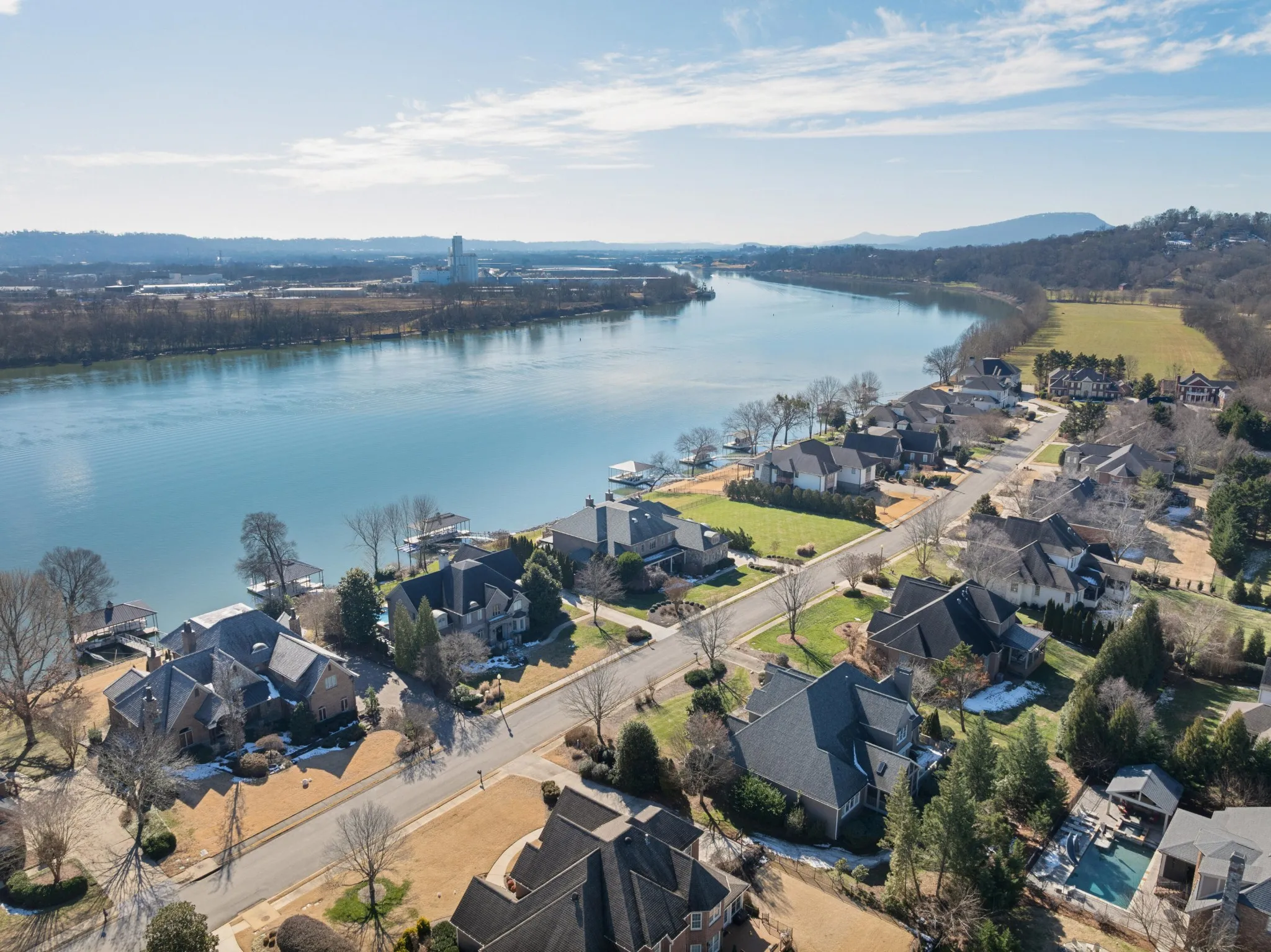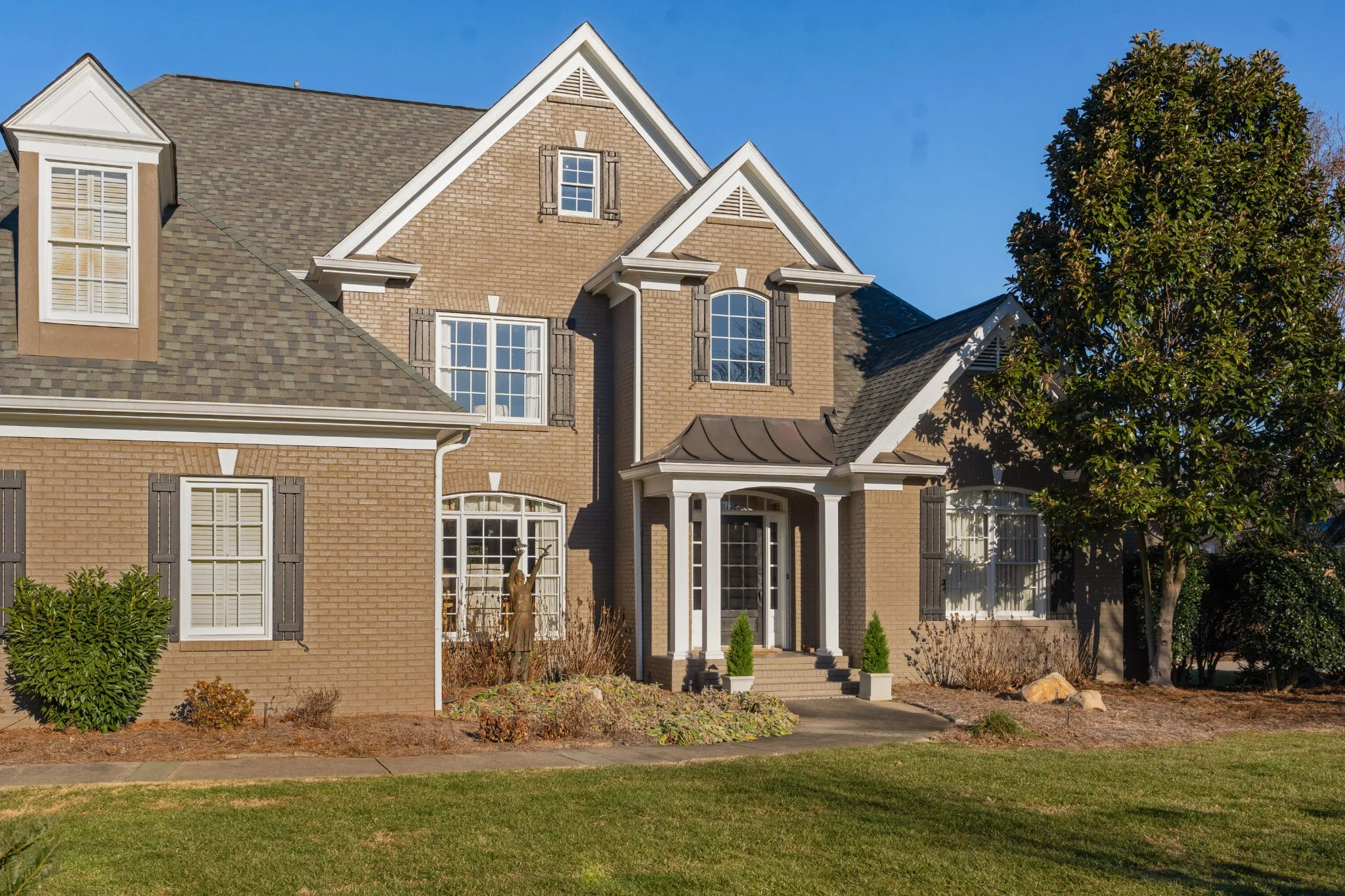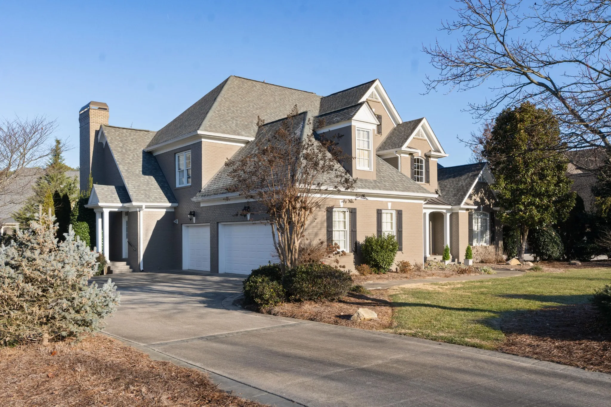 All brick, 4 bedroom, 4.5 bath home with a fantastic floor plan in The Enclave at Riverview. This one-owner home boasts an open floor plan, specialty ceilings, hardwood floors, new paint, new carpet, wonderful natural lighting, the primary on the main, en suite guest bedrooms, great living spaces both indoors and out, and a 3-car garage – just to name a few. Recently painted inside and out and new carpet in the bedrooms, your tour begins with the 2-story foyer with a sweeping staircase that opens to an office/library on one side and the formal dining room on the other. A large great room has a vaulted ceiling and a limestone gas fireplace with built-ins on either side, and you will definitely gravitate to the adjoining kitchen, breakfast and keeping room with access to the screened in porch and rear deck with automated awnings providing a nice flow for everyday living and entertaining. The kitchen has granite countertops, subway tile backsplash, a center island, a raised breakfast bar, Jenn-Air downdraft gas cooktop and double wall ovens, under-cabinet lighting, a double door pantry and is just steps from the laundry room and garage. The primary bedroom is on the opposite side of the main level and has a double-trey ceiling, is large enough to accommodate a sitting area, has access to the screened porch and two walk-in closets. The primary bath has separate vanities, a soaking tub and a double shower with tile and glass surround. The upper level has 3 additional bedrooms, all with private baths, as well as a bonus room and walk-out attic storage. There is additional storage in the partially floored ceiling attic. The neighborhood offers a great place to get out and walk/run/bike, plus there is a community pool, tennis courts and clubhouse. All of this, and you are just minutes to schools, parks, hospitals, the shopping and restaurants of the North Shore and downtown Chattanooga, so please call for more information and to schedule your private showing today.