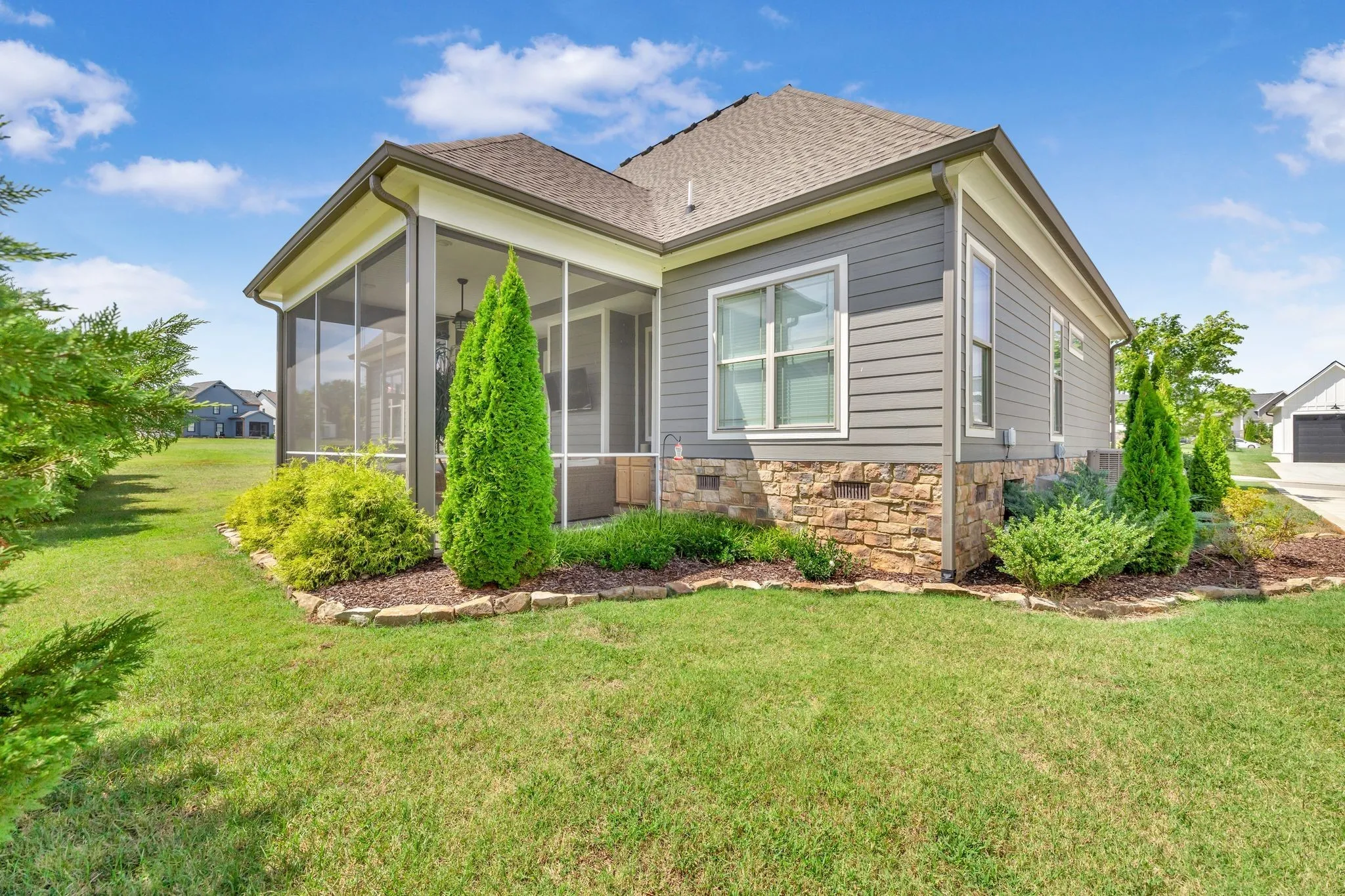 +"PublicRemarks": "You won't find a more immaculate home or a better deal in all of Twin Creeks! It's a treat to find a home with TWO BRs down and TWO BRs up! Downstairs, this great floor plan offers a large living room with stone fireplace w/gas logs, a very spacious eat-in kitchen w/bay window and pantry, a formal dining room w/plantation shutters and a lovely screened porch w/wet bar and TV! In addition to the 2 BRs and full bath upstairs, you will find a HUGE bonus room (w/closet); perfect for entertaining or for extra sleepover space. An irrigation system ensures lush green sod year round. This lot is large enough (on the right) to build a detached 2-car garage for your recreational vehicles and extras, if desired. Move in immediately and begin enjoying the best of lake living right away. Whether as your full time home or as your vacation getaway, come and enjoy lake life at Twin Creeks. Amenities include Twin Creeks Marina (bring your boat!), Drafts and Watercrafts (food, fun and music!), 3 pools, walking trails and lots of new friends!"