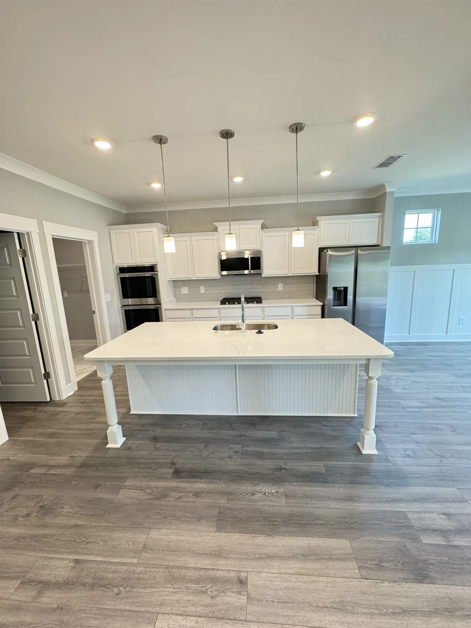 Plan(2581 Elevation GHI) Stunning 4 bed + Large flex room 3bath home with modern open concept layout and a jumbo covered porch w/ wood burning fireplace. This Beautiful home is equipped with quartz kitchen countertops, ceramic tile backsplash, under kitchen cabinet lights and all kitchen appliances included -Even the refrigerator!