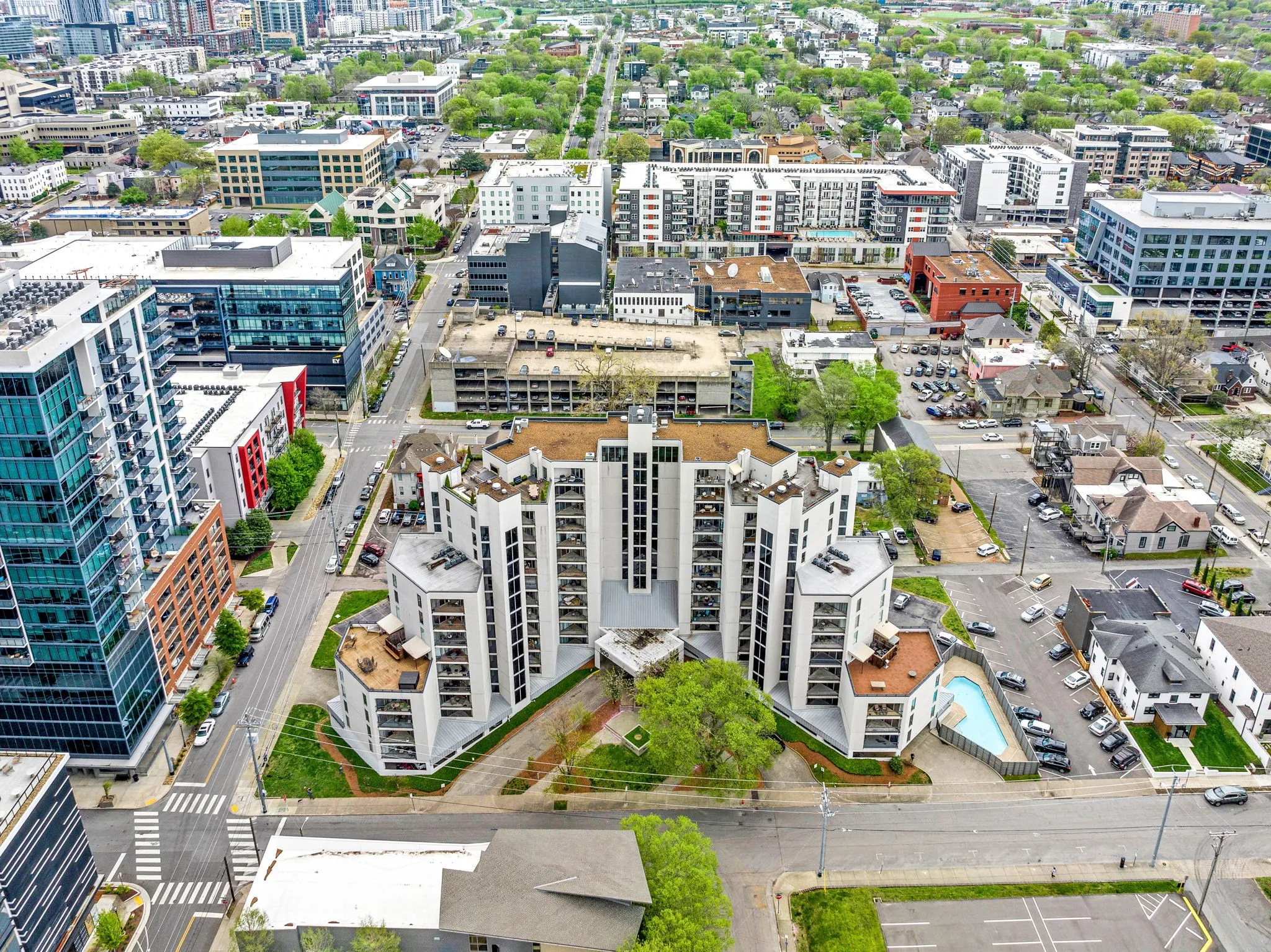 UNDER $400K IN PRIME MIDTOWN • This rare opportunity to own a 2-bedroom unit in the heart of Music City is yours to take! Boasting 1100 SF of thoughtful living space, this freshly-painted residence features new carpet, updated lighting + beaming floor-to-ceiling windows, filling the interior with an abundance of natural light. Centrally-located in popular Music Row, walk to Vanderbilt, Hillsboro Village and Belmont: head a mile east and embrace downtown living at its best. Enjoy two corner balconies with stunning city views, each covered and private: the eat-in kitchen features granite countertops and stainless steel appliances, while the large great room anchors the space. University Square boasts doorman, fitness center, and pool with sundeck. Enjoy peace-of-mind with a secure parking space and confidentially host guests in iconic Nashville! Don’t miss out the chance to call this Midtown oasis home.