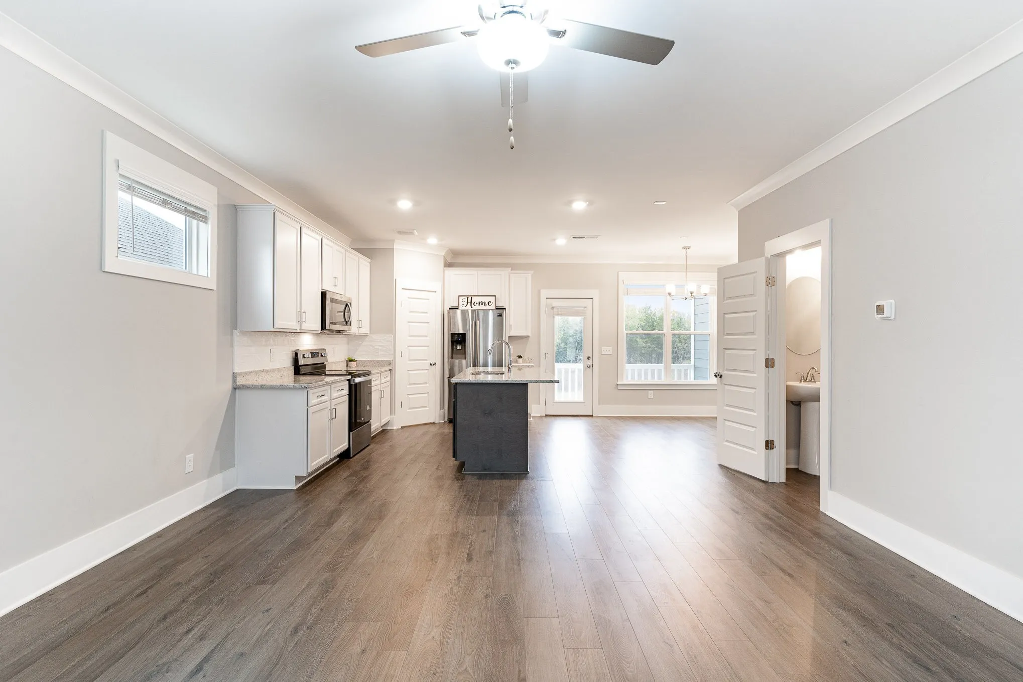 Better than a new home featuring a gorgeous Evergreen floor plan by Haven Builders. This 4-bed & 3.5-bath home features open floor plan, energy-efficient LED recessed lights, durable LVP flooring, 9’ ceilings, & crown molding on the main level. Blinds are fitted throughout. The kitchen offers granite countertops, an island with seating, a pantry, stainless steel appliances including a fridge, a stylish tile backsplash, and white shaker-style soft-close cabinets. Granite countertops extend to all bathrooms. The spacious primary bedroom features a large walk-in closet, crown molding, and an ensuite bath with a double vanity and expansive tiled shower. Ceiling fans in living spaces and bedrooms. Private backyard with no rear neighbors. Camera doorbell included. Minutes to the vibrant new Century Farms development with Tanger Outlets offering a range of shopping & dining options. Enjoy the video walkthrough and schedule a tour today!