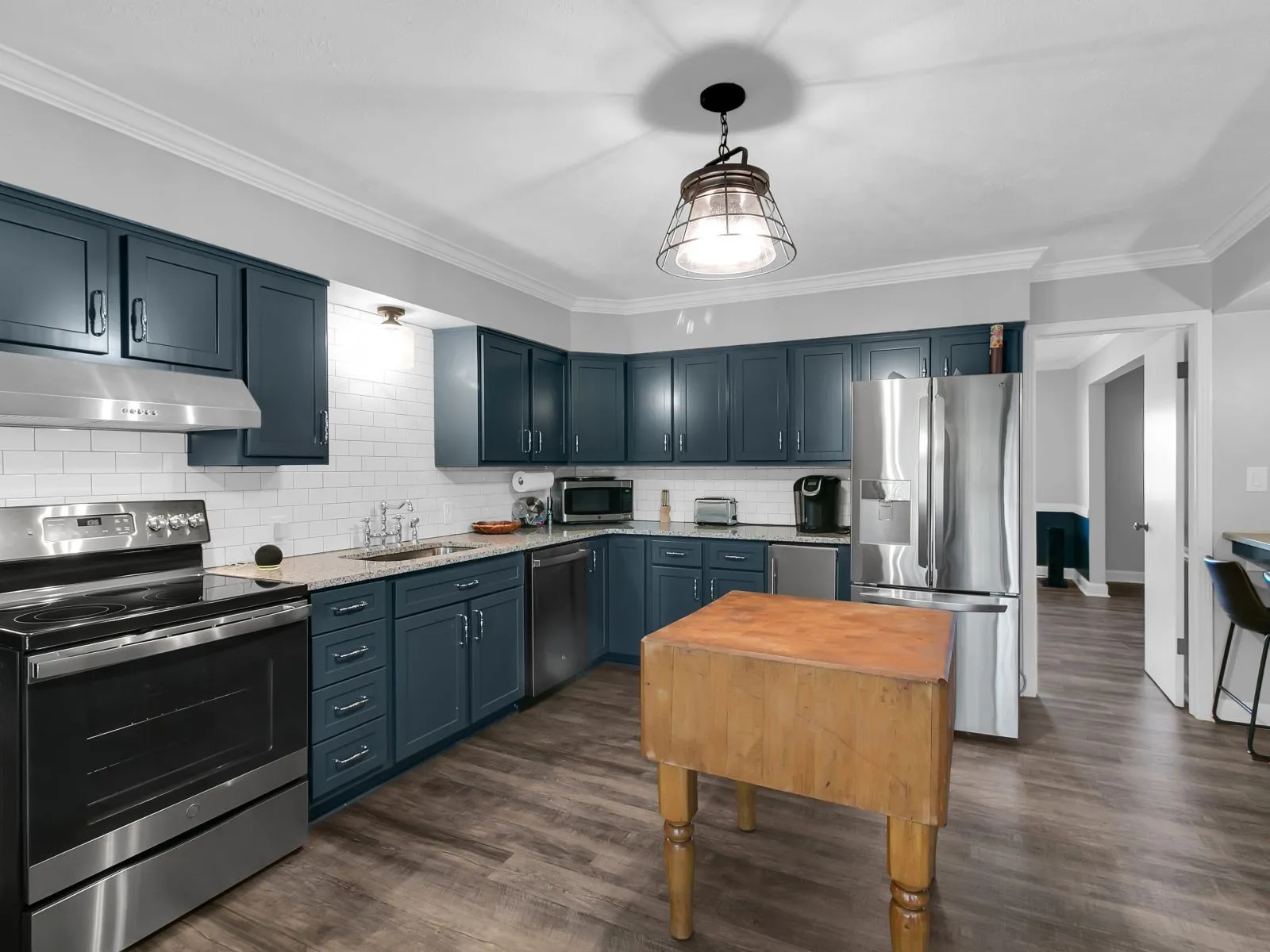 This beautifully remodeled 5 bed, 4 bath ranch sits on 1.7 acres overlooking a neighboring private lake. This home is move in ready with new appliances (+ ice maker) and chic modern furnishings, located only minutes from KY Lake and public boat ramp access. The stunning primary suite is complete with a sitting area, jacuzzi tub, dressing area, spacious walk in closet, and private en suite bathroom. Guests will enjoy the large bedrooms, common areas upstairs and downstairs,