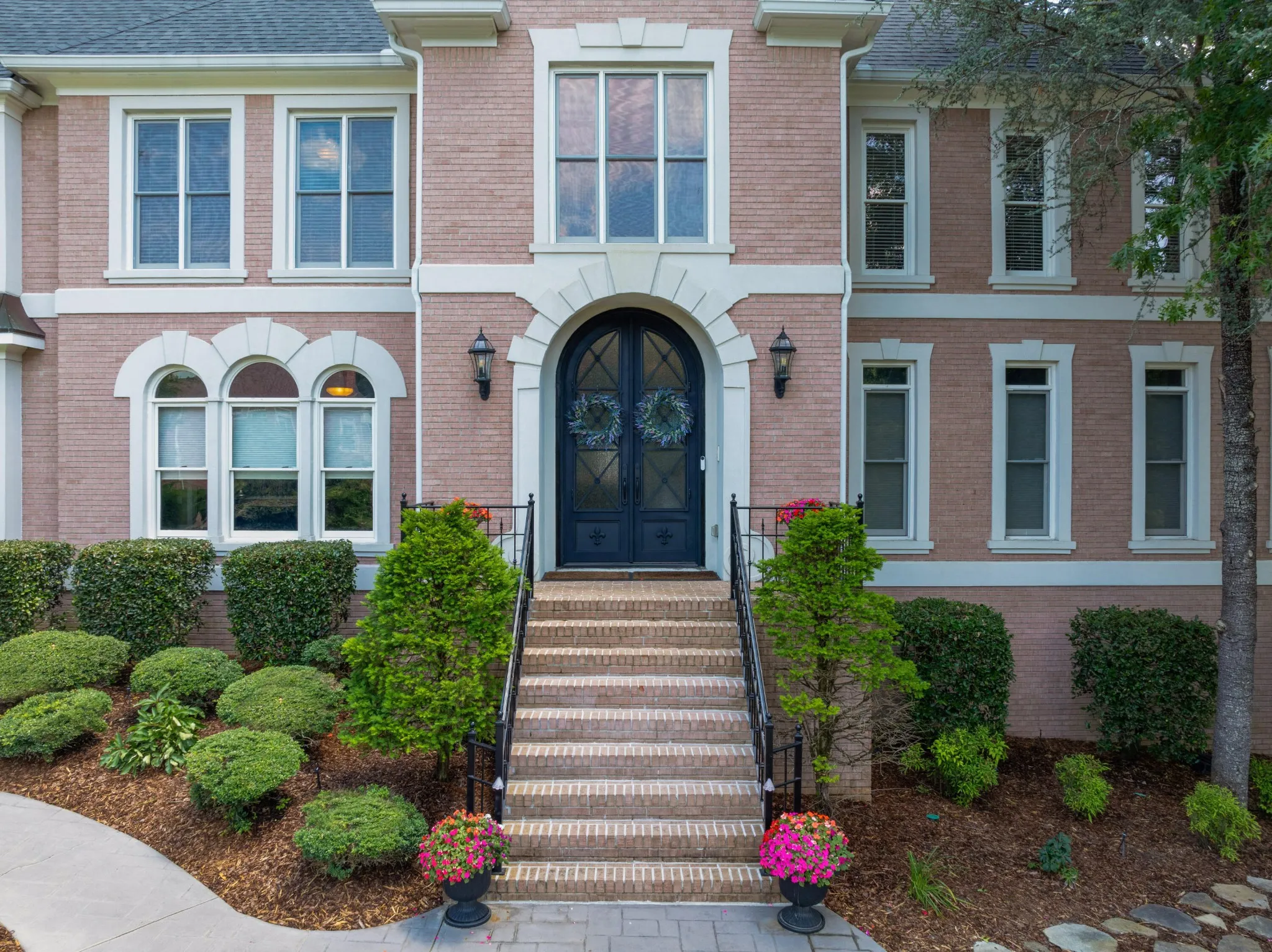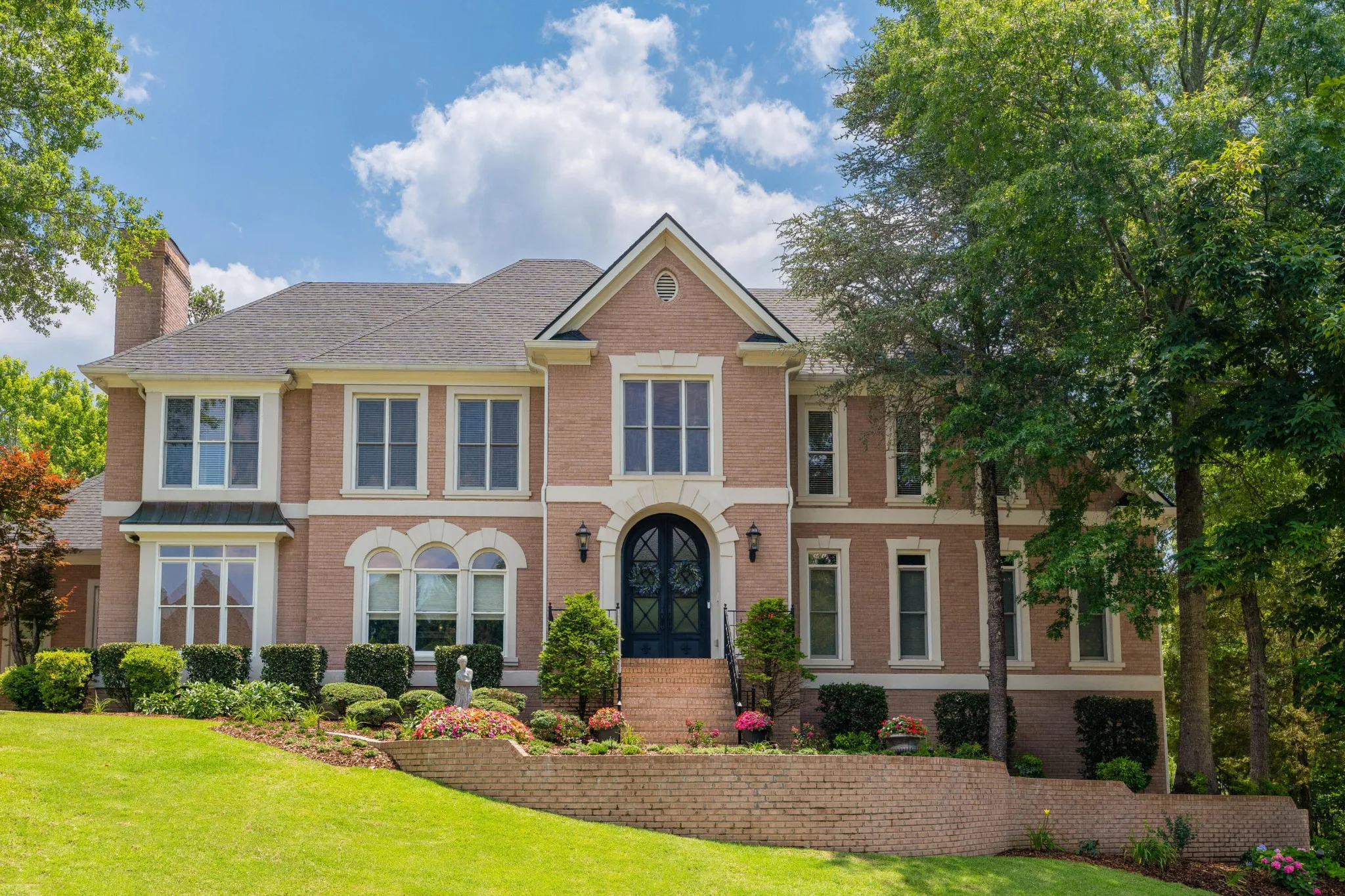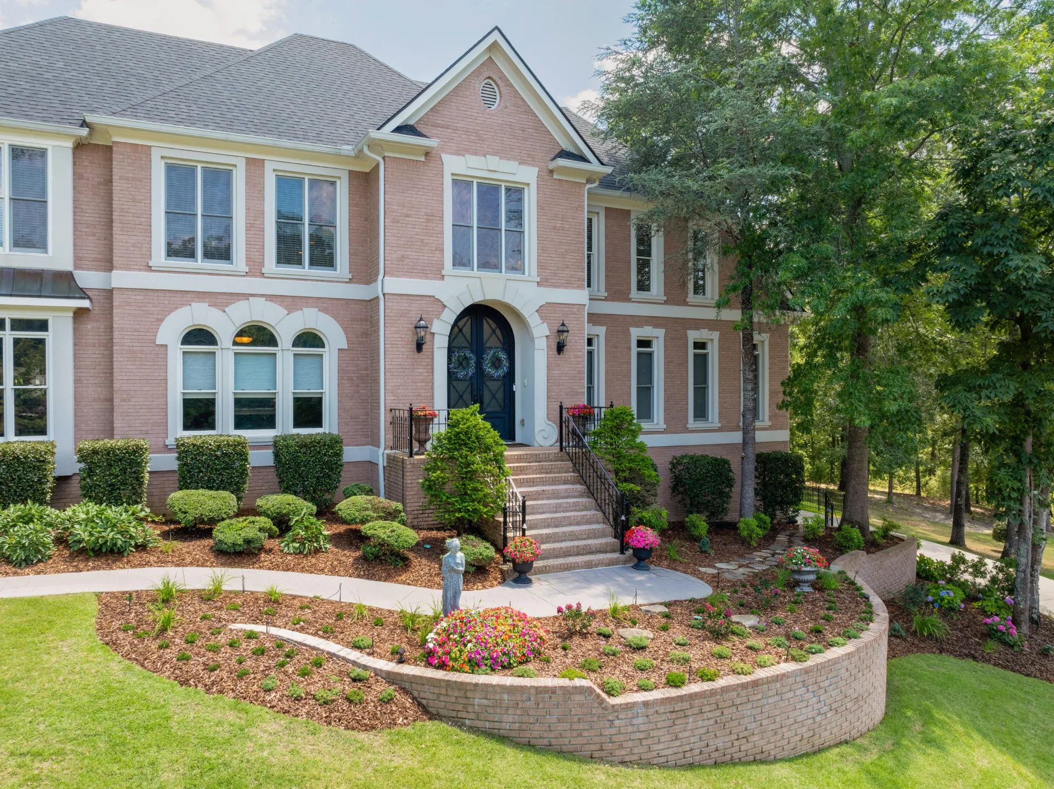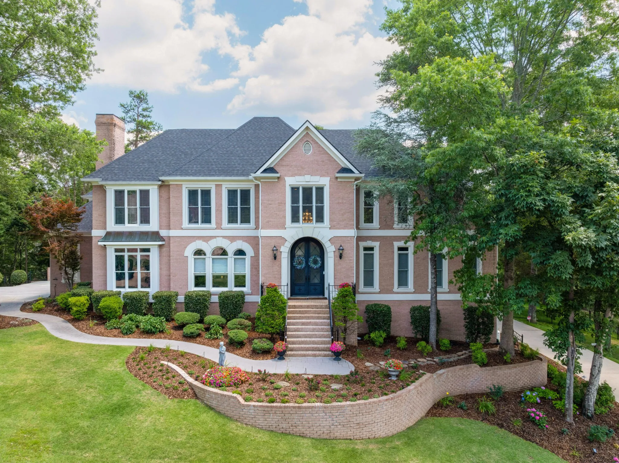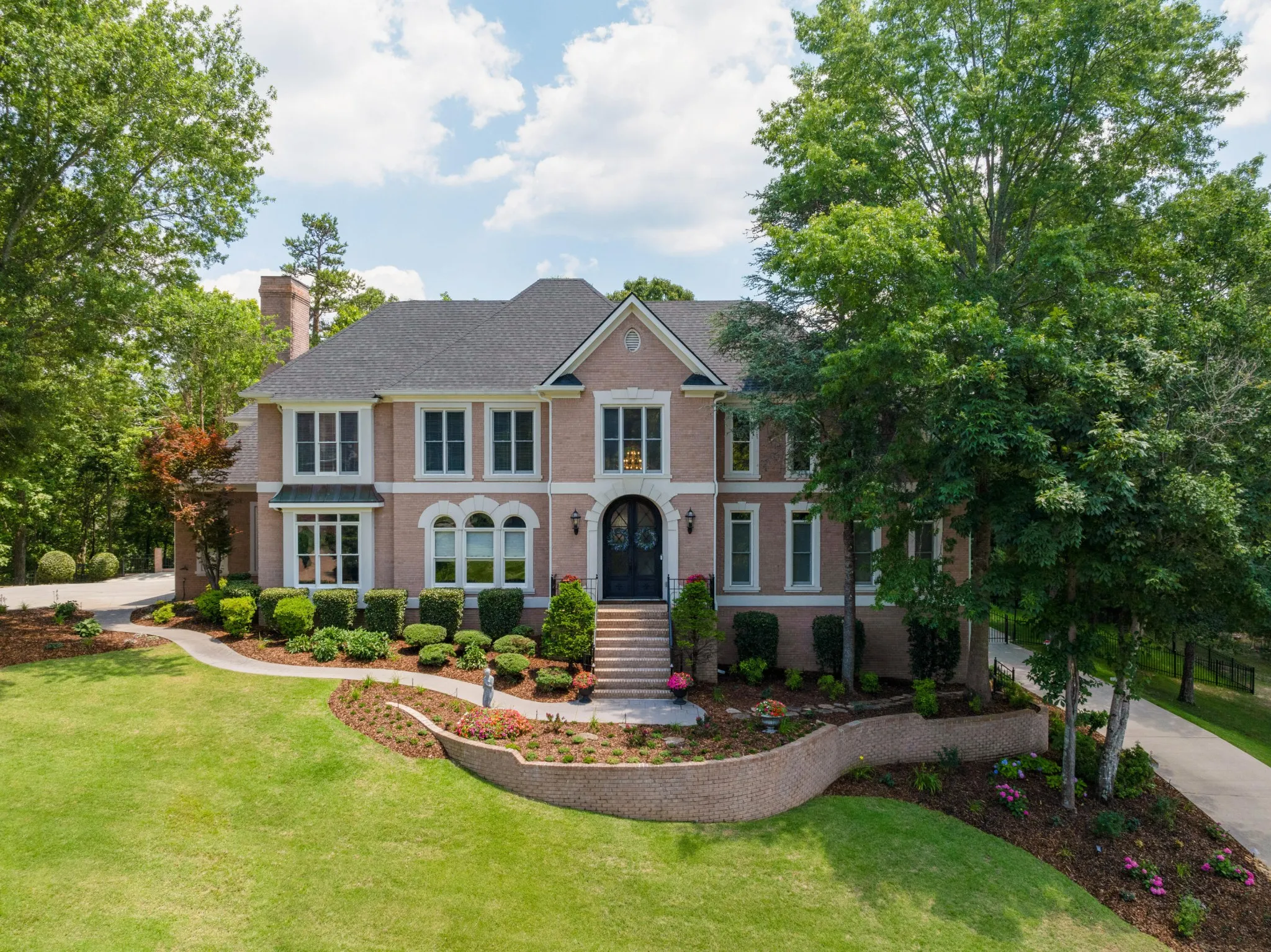Stately, five bedroom, 5.5 bath home beautifully positioned on two lots totaling approximately 2.34 +/- acres in the desirable and established Mountain Shadows community in East Brainerd close to schools, shopping, restaurants, medical facilities and more. The home has a versatile floor plan and will appeal to a variety of dynamics with its multiple living spaces, en suite bedrooms and spacious rooms. The home boasts hardwoods on the main and new carpet on the upper and lower levels, 7 electric fireplaces, beautiful new iron and glass double front door, decorative lighting, remote controlled blinds, specialty ceilings, granite countertops, crown moldings, arched doorways, lofty ceilings, the primary suite on the main, a finished daylight basement, whole house dehumidifier and clean air system, wonderful outdoor living spaces, fantastic storage, 3 garage bays, covered parking in back via a second driveway, mature landscaping with irrigation, whole house generator, a self-monitored, steel locking doggy door, a fenced dog run and more. Entry to the home is via the grand foyer with sweeping staircase that opens to the great room and the office or living room. The office has a coffered ceiling, fireplace, built-in cabinetry and arched doorway to the formal dining room. The 2-story great room also has a fireplace with built-ins on either side, French doors to the rear deck and two arched doorways to the kitchen and breakfast rooms. You will absolutely love the kitchen with its wonderful natural lighting due to the skylights and bay window in the breakfast area, and it also features a center island, granite countertops, white cabinetry with soft-close drawers, under-cabinet lighting, stainless appliances, including the Thermador gas range with double oven, a refreshment center with extra sink and beverage fridge, a built-in desk area and is just steps from the laundry room and garage for easy loading and unloading.