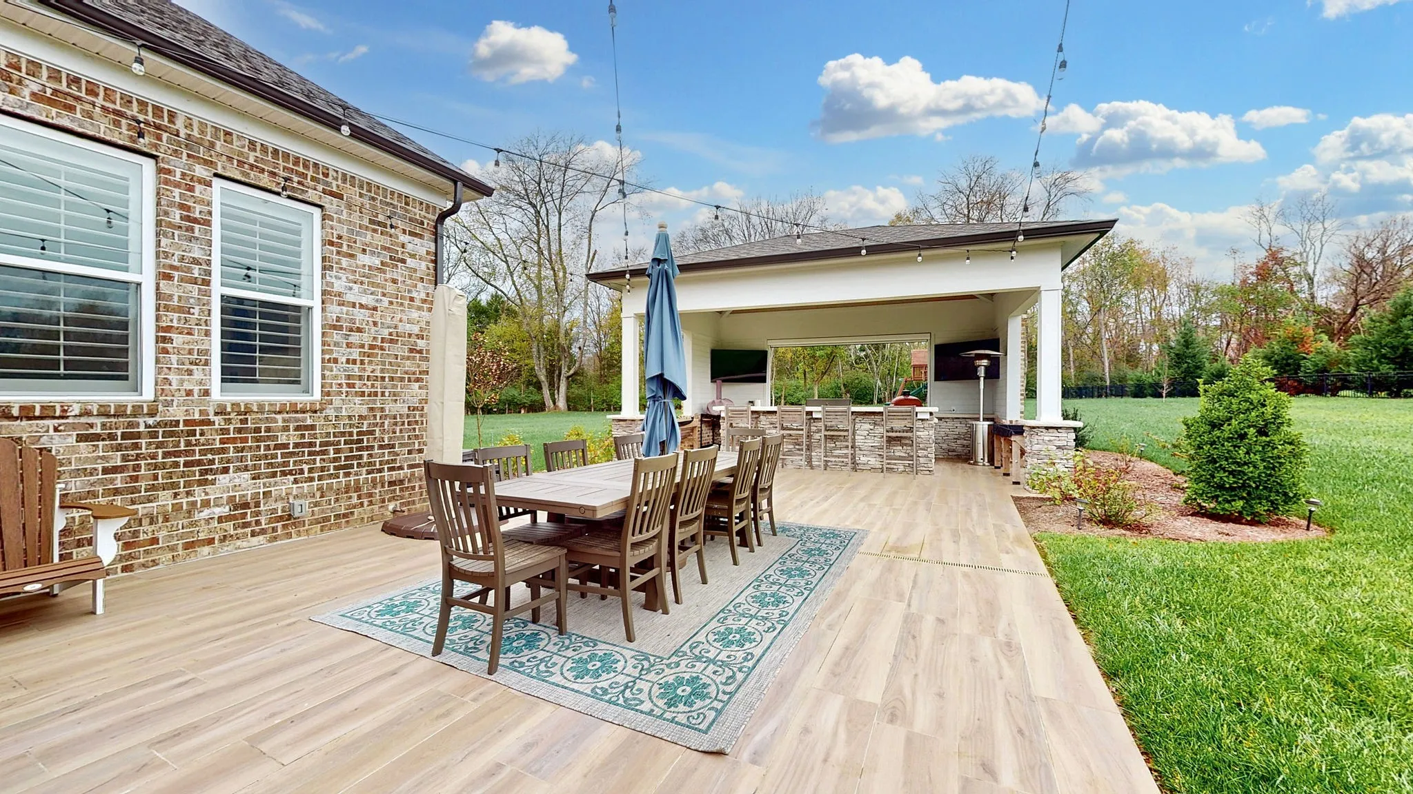 "LongDescription" => "Charming custom built pergola with a swing that sits against a soothing waterfall backdrop...."
