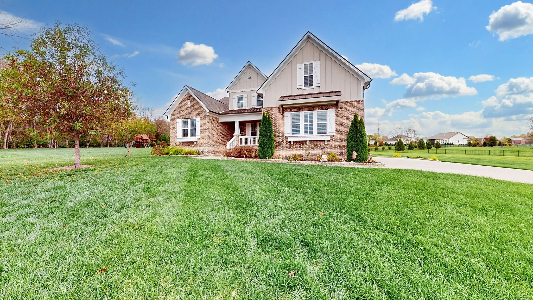 +"PublicRemarks": "Get ready to fall in love w/this exceptional home,tucked away on over an acres in one of Arrington's most picturesque neighborhoods.Set at the end of a quiet cul-de-sac,this property offers unrivaled privacy,w/the added benefit that the neighboring lot will remain undeveloped-a truly rare find.This stunning 4,011 sq.ft. residence features 5 bdrms,4.5 baths, & a bright, open-concept design that feels both inviting & sophisticated.Rich hardwood floors extend throughout,while quartz countertops add timeless elegance in the kitchen & bathrooms.The home is adorned w/custom lighting,plantation shutters,intricate wainscoting, & coffered ceilings, including a beautifully crafted ceiling in the master bedroom.A cozy fireplace & custom built-in shelving add charm & character to the main living space. The main level showcases a spectacular master suite,complete w/a spacious walk-in closet & a spa-like bathroom featuring double vanities & a large walk-in shower. Additionally, there is a second bedroom, an office, & a chef's dream kitchen w/exquisite cabinetry, a generous island, & top-tier appliances for easy entertaining.Upstairs, you'll find a spacious bonus room,3 additional bedrooms, & a large walk-in attic offering an abundance of storage.Step outside, & you're greeted by a true backyard oasis. A large screened-in porch w/a brick fireplace opens up to a luxurious outdoor kitchen pavilion,fully outfiitted w/refrigerator,grill,side burners,a large griddle, & a brand new Kamado Joe Smoker-everything you need for the ultimate outdoor dining experience.Across the yard,a charming pergola w/a swing sits against a soothing waterfall backdrop,providing perfect place to unwind & enjoy the serene countryside views.A full yard irrigation system keeps the lush landscaping vibrant year around.With breathtaking views,abundant upgrades,& a setting that feels like a private retreat,this home is a true gem you won't want to miss!"
