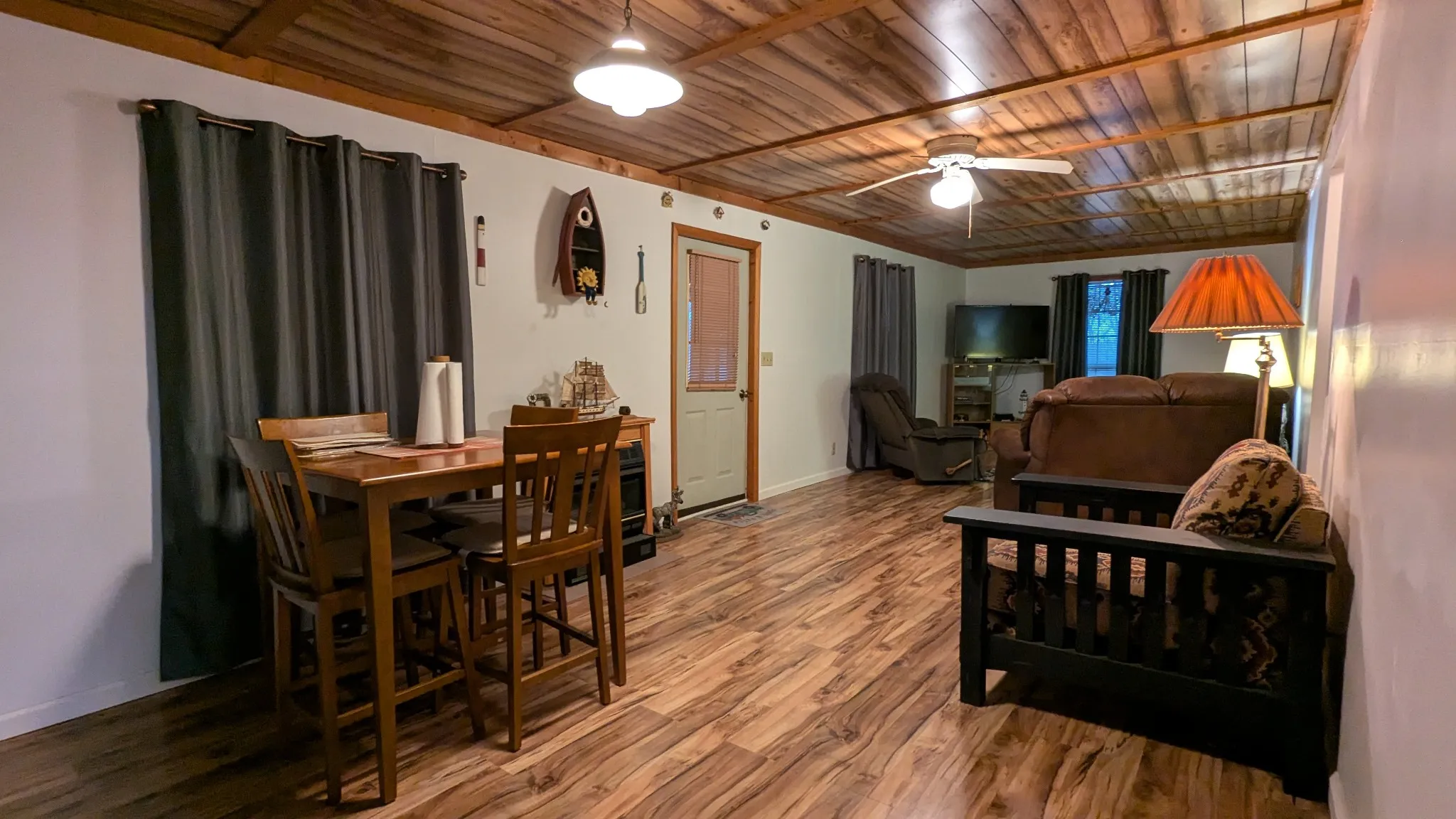 Welcome to 211 Happy Mountain Rd. A cabin nestled on .80 acres with Mountain and Seasonal Lake views. This gem of a property offers a spacious retreat. The cabin features 1 bedroom and 1 bath, Open Living Room and Dining area (could easily have a 2nd bedroom). As you step onto the large covered wraparound porch, you’ll be enchanted by the unique sitting area overlooking woods, water and Mountain Views. Providing ample space for family and guests. Cabin is ready for you to bring your personal touch and transform it into your dream Cabin. Embrace the opportunity to create lasting memories by taking a stroll down to the water for fishing, boating, kayaking and many outdoor adventures. Boat ramp is just 2/10 of a mile from Cabin. This is your chance to own a piece of paradise with a cabin full of potential – permanent resident, getaway and earn income as an Airbnb. Cabin comes fully furnished and patio furniture – Except for personal belongings, tools and a couple sentimental items Do Not Convey with property.