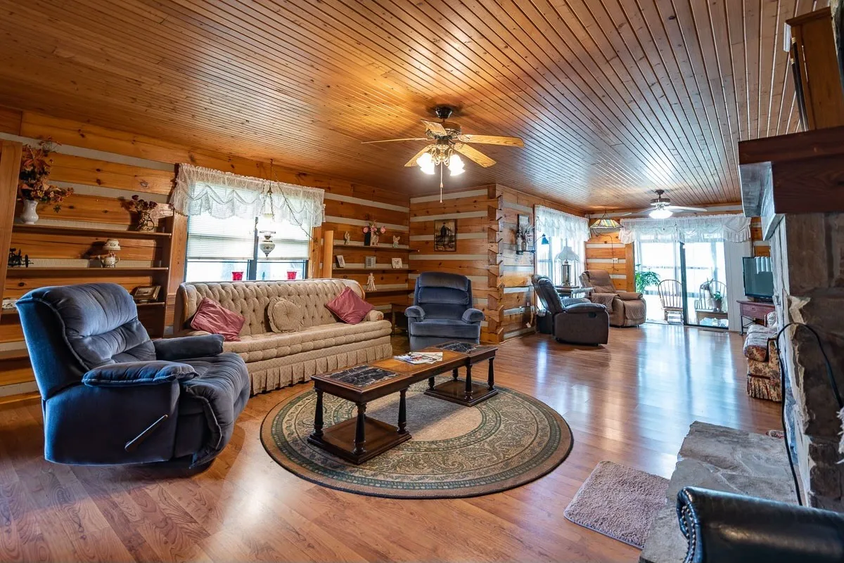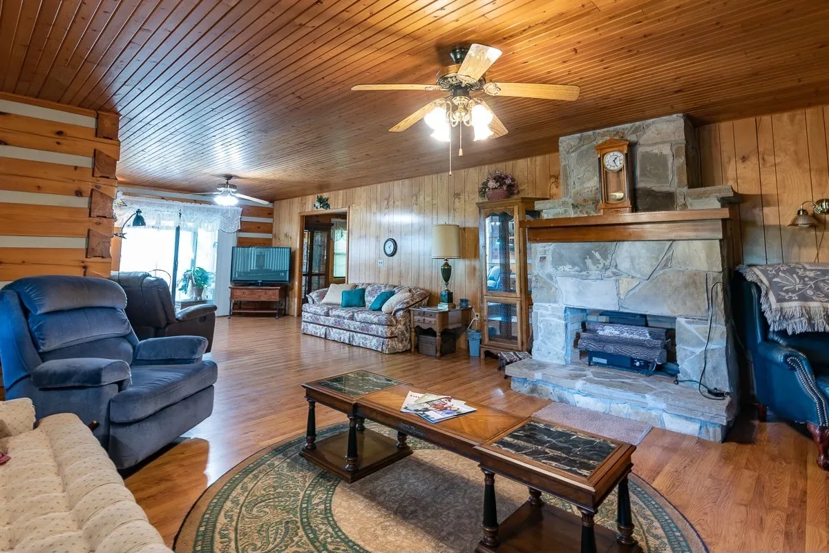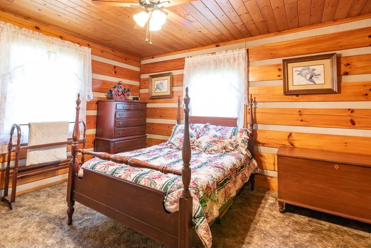 34.57 acres; Beautiful farm with log home and pond. Large pond (approximately 6 acres) with walkways. Bring your horses and cattle! Custom-made log home with covered front porch. A large country kitchen with dining room make entertaining fun. A room for canning or other hobbies makes this home unique. Please verify all pertinent information.