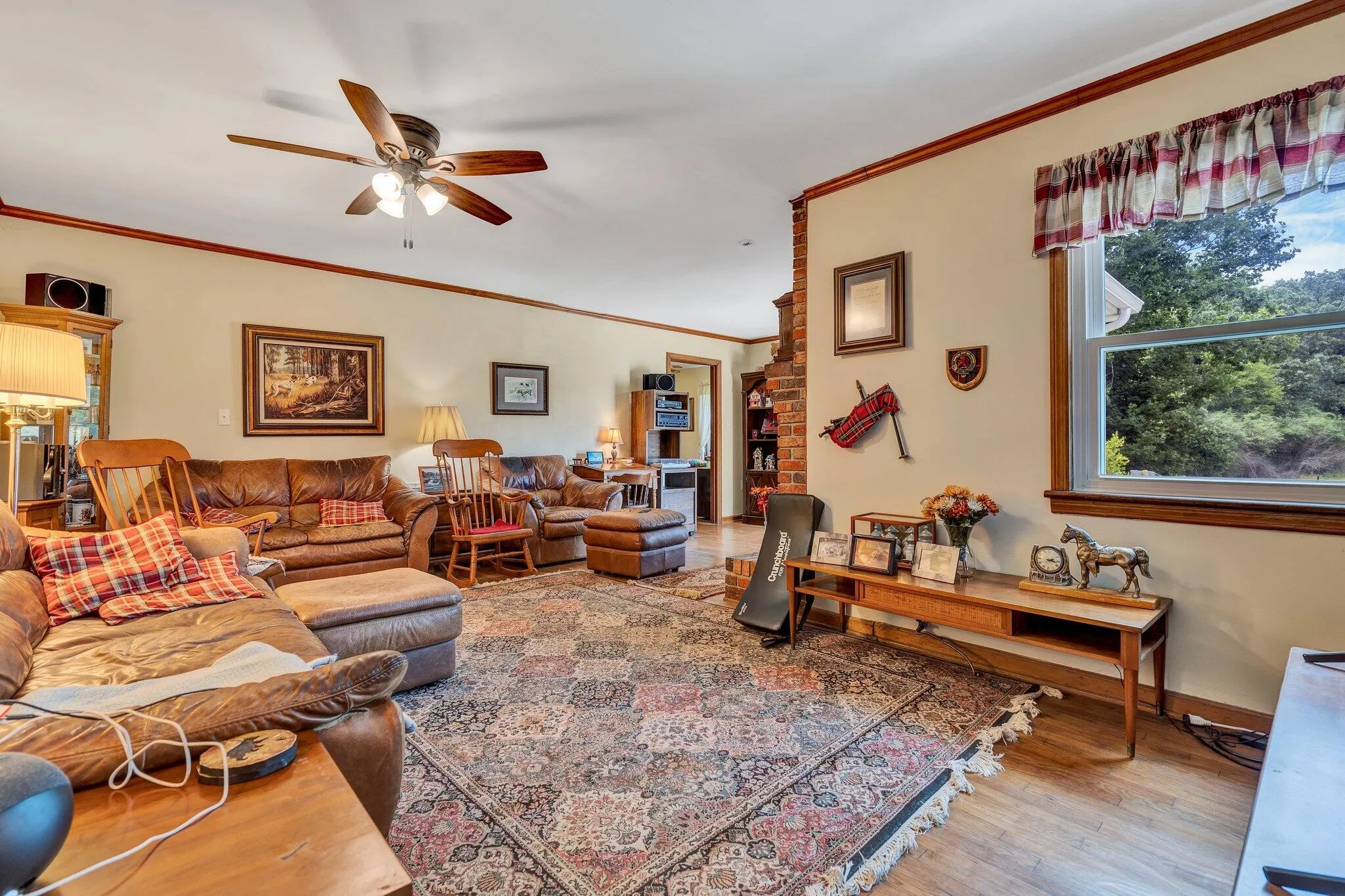 Discover this charming all-brick home nestled on a spacious property that offers both tranquility and convenience. This beautifully maintained residence features 2,116 square feet of thoughtfully designed living space, with three bedrooms and two bathrooms arranged in a practical split floor plan. Step inside to find elegant hardwood floors flowing throughout the main living areas. The kitchen shines with modern quartz countertops, making meal preparation a joy. A separate dining room provides the perfect setting for family gatherings and entertaining guests. The inviting living room centers around a cozy fireplace, complete with a handsome brick hearth and mantle that adds character and warmth to the space. This property truly stands out with its impressive 1,324 feet of road frontage along Dalton Pike, offering excellent accessibility while maintaining privacy. Nature lovers will appreciate the peaceful setting where deer regularly visit, and the established pecan trees and blueberry bushes provide seasonal treats. The land is ideal for those interested in keeping horses or cattle, with both city water and a newer well pump available for livestock and gardening needs. Recent updates include a newer roof and premium windows that come with a lifetime warranty, ensuring long-term peace of mind for the new owners. A sturdy storage building with a poured concrete floor offers additional space for equipment, tools, or hobby projects. The location couldn’t be better for commuters heading to Dalton, and the property provides easy access to local amenities while maintaining its serene country atmosphere. Whether you’re looking to embrace a hobby farm lifestyle or simply want space to breathe, this property delivers the perfect blend of modern comfort and rural charm. Don’t miss the opportunity to make this exceptional property your new home, where comfort meets countryside living in perfect harmony.