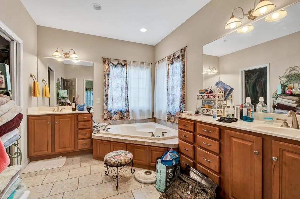 Discover this custom-built home nestled on 1.67-acres, offering an impressive 3,445 sf of thoughtfully designed living space. This exceptional residence features 4 bedrooms and 2.5 bathrooms, providing the perfect blend of comfort and functionality for modern living. The heart of this home showcases a spacious kitchen that will delight any culinary enthusiast, complete with abundant storage solutions, a commanding island, and a welcoming breakfast area. Adjacent to the kitchen, you’ll find a formal dining room perfect for elegant entertaining. The great room serves as a central gathering space, enhanced with sophisticated Bose surround sound speakers and a cozy wood-burning fireplace that adds both warmth and ambiance. The well-planned split bedroom layout ensures optimal privacy, with the primary bedroom suite conveniently located on the main level. This retreat includes a luxurious ensuite bathroom featuring separate vanities, a private shower, and a relaxing jetted tub, complemented by a generous walk-in closet. The main level also houses three additional bedrooms, one and a half bathrooms, and a dedicated office space, offering versatility for various lifestyle needs. Upstairs, an expansive bonus room provides additional living space and includes easy access to a floored attic storage area, perfect for organizing seasonal items. The outdoor living space is equally impressive, featuring a covered back porch that transitions to an uncovered deck with sealant backed by a 10-year warranty, ideal for both sheltered and open-air entertainment. Recent updates ensure peace of mind, including a new HVAC system (2019), water heater replacement (2020), and a new roof (2018). The property’s location near Rolling Hills Wetland Loop adds to its appeal, offering nearby recreational opportunities. With its thoughtful design, modern amenities, and recent updates, this home presents an exceptional opportunity for those seeking a spacious residence in a desirable location.