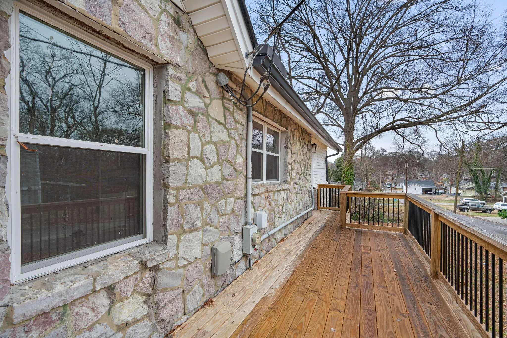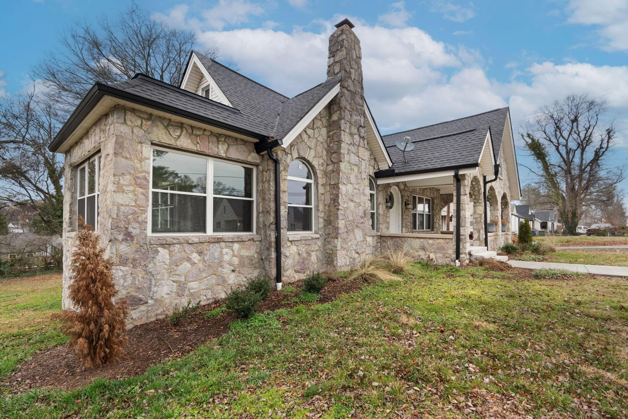This beautifully renovated 1930s stone home seamlessly blends historic character with modern updates. A spacious front porch sets the stage for relaxing evenings, while the original front door welcomes you inside to refinished hardwood floors that enhance the home’s timeless charm. The bright living room is filled with natural light from an abundance of large windows and flows effortlessly into the dining area and office space. A perfect layout for hosting multiple guests. The updated kitchen features sleek granite countertops, stainless steel appliances, and plentiful cabinets. Three generously sized bedrooms provide comfort and privacy, including a primary suite on the main level with an updated ensuite bath showcasing elegant tilework and a frameless glass shower. A second full bath serves the additional bedrooms and guests. There is a large bonus room upstairs that will make a great media or recreation room. The 1368 unfinished basement offers a flexible space ideal for a home gym, complete with climate control for year-round comfort. Conveniently located midtown near both Hamilton Place and downtown Chattanooga, this home is a rare find. Schedule your private showing today!