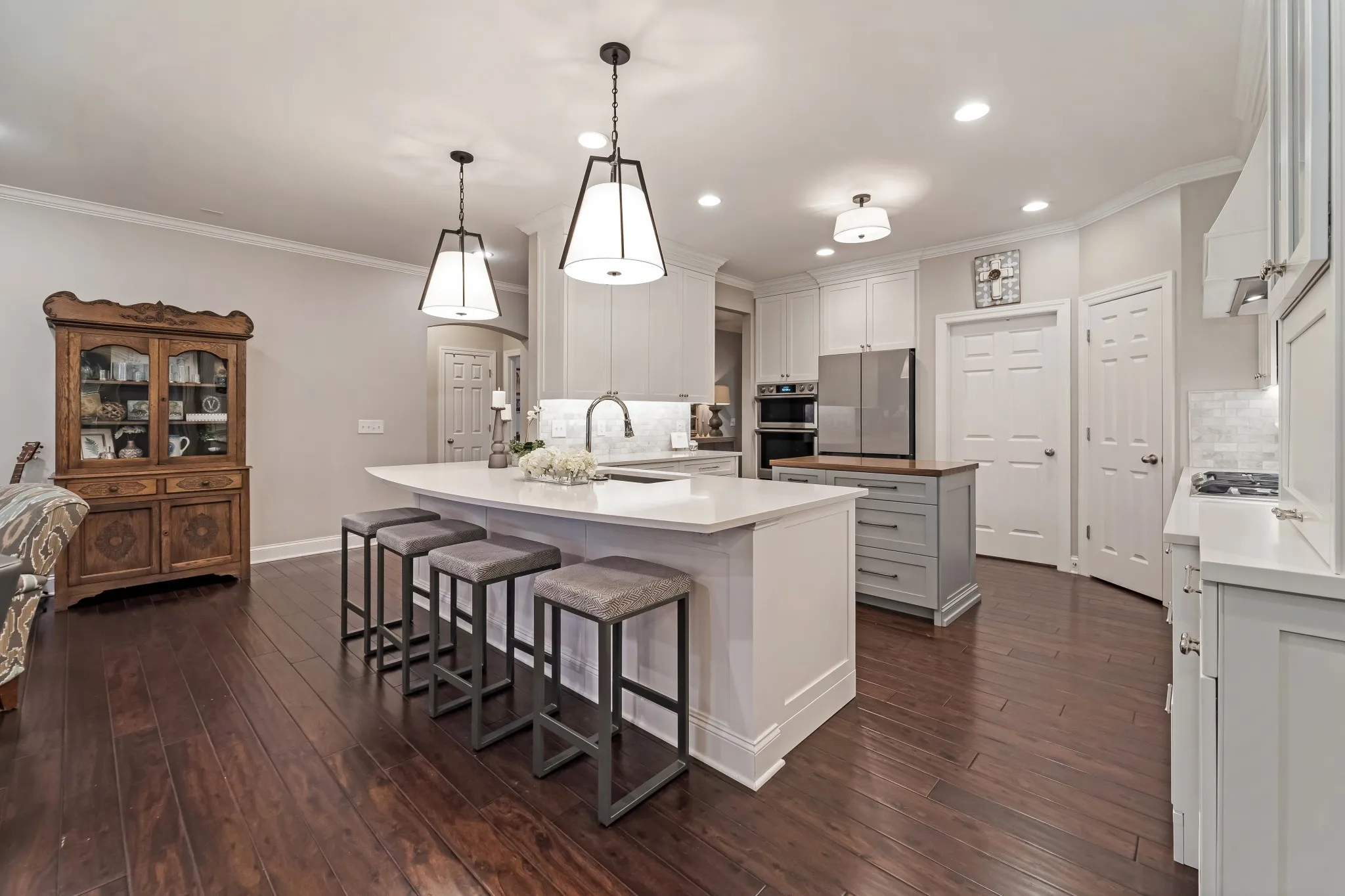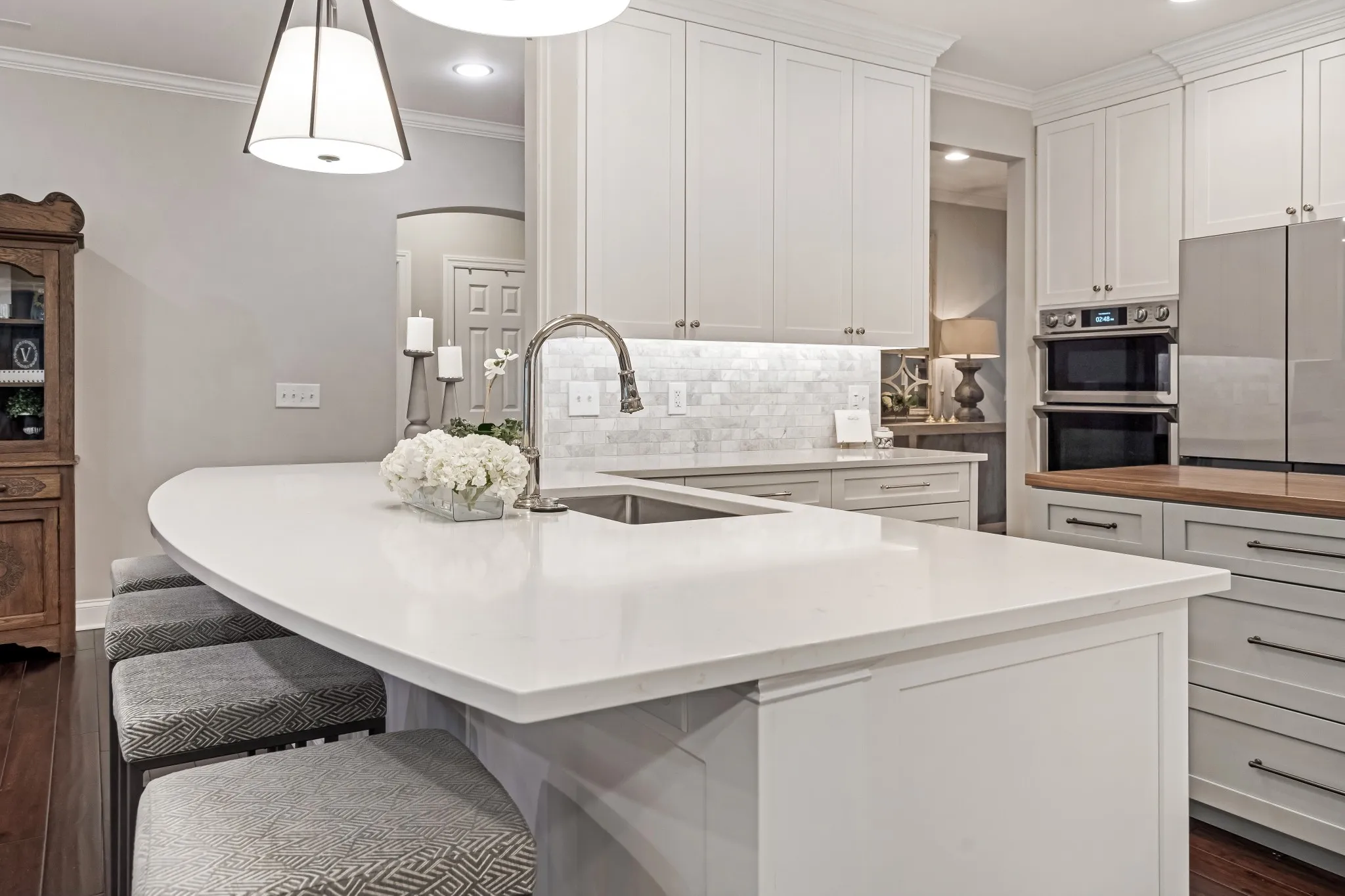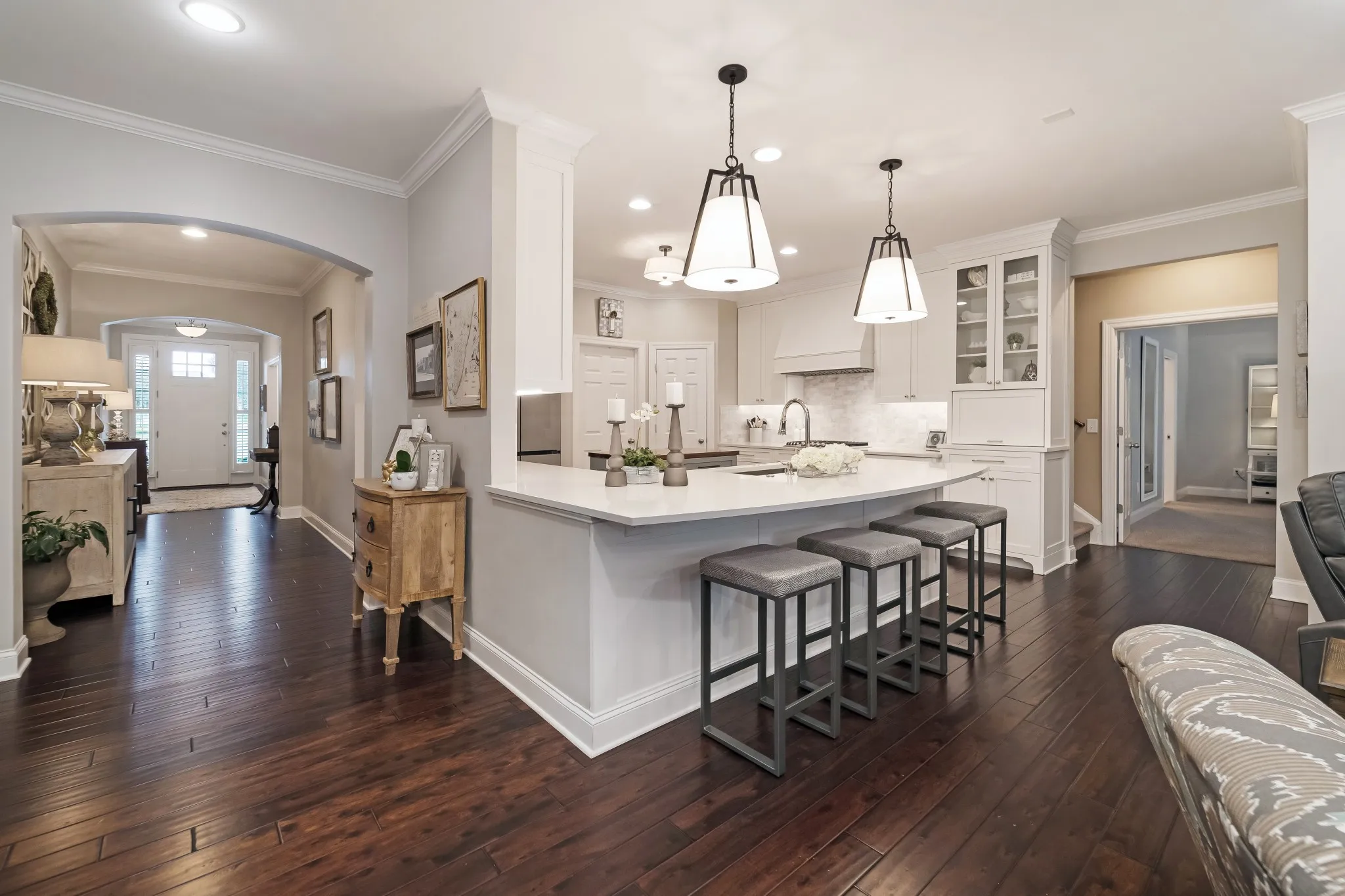 STUNNING RARELY AVAILABLE ONE LEVEL HOME UPDATED AND TASTEFULLY RENOVATED!! FANTASTIC LAYOUT WITH AN UNBELIEVABLE KITCHEN FEATURING UPSCALE STAINLESS APPLIANCES,QUARTZ COUNTERTOP AND LOTS OF CABINET DRAWERS!! 42″ SOFT CLOSE CABINETS, CLOSETS BY DESIGN CUSTOM PANTRY AND CLOSETS! THIS HOME ALSO SETS UP NICELY FOR ENTERTAINING WITH THREE FIREPLACES,DECK AS WELL AS A PATIO WITH PAVERS! SO MUCH TO LIST! PLEASE TAKE SHOES OFF WHILE SHOWING.