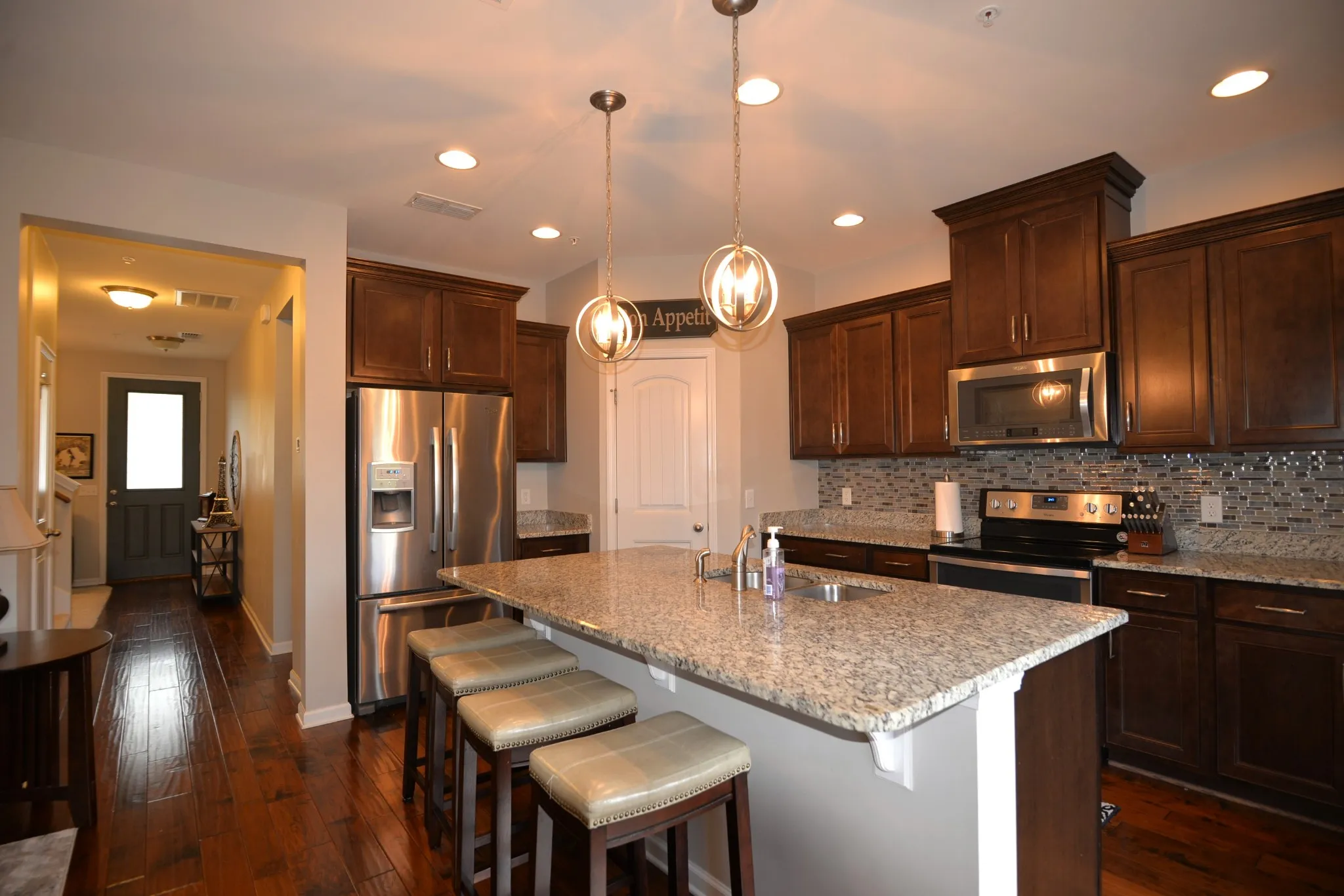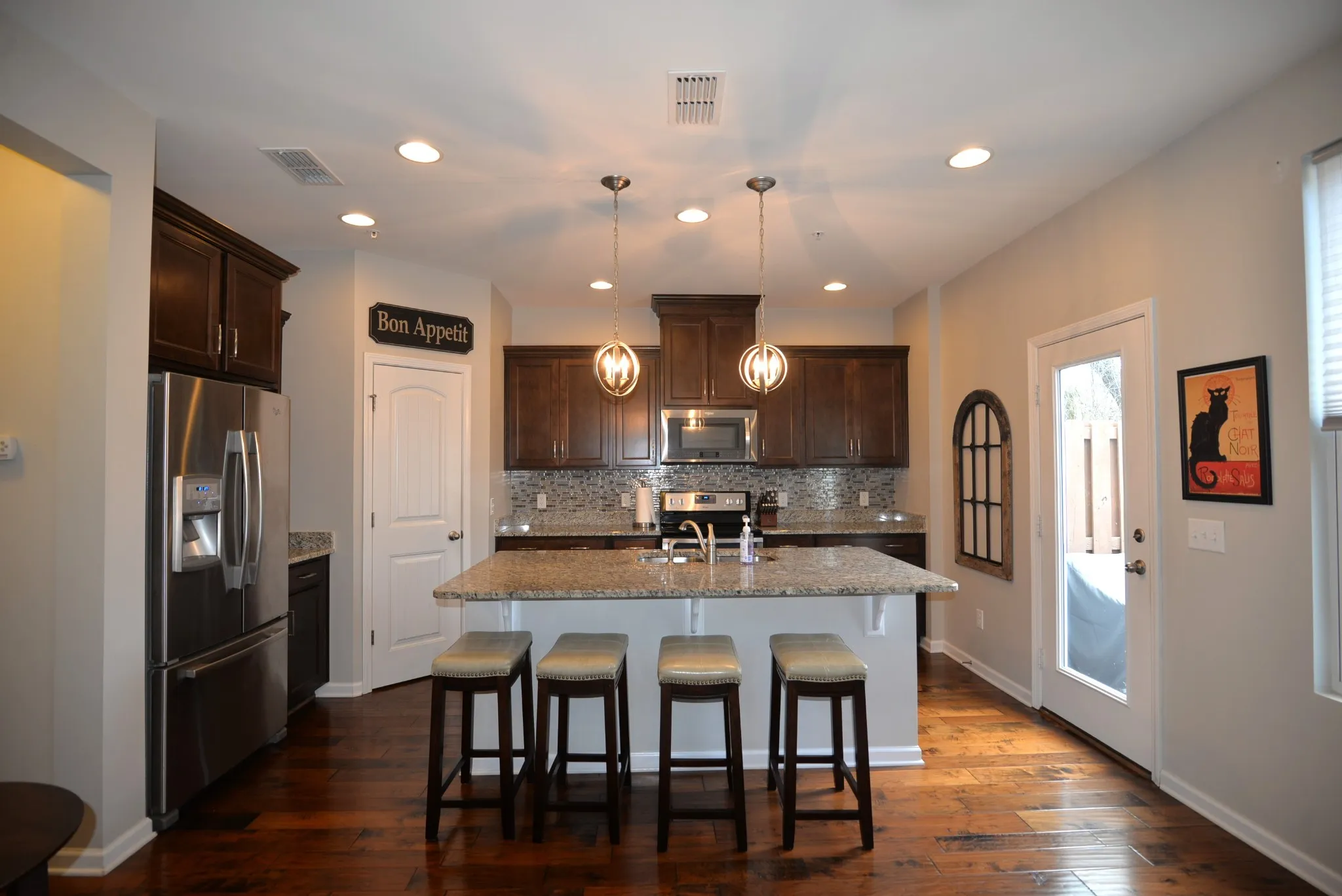 Check out this stunning 3 bedroom 2.5 bath townhome in the highly desired Nichols Vale community! This home is ready to move in. Open concept kitchen with stainless steel appliances, granite countertop, walk in pantry, and oversized island. Spacious primary bedroom with private bathroom suite features a large standing shower, double vanities and walk-in closet. Deck backs up to a tree lined view. Rock and concrete paver backyard for complete maintenance free living. The neighborhood has a large community pool with grills, a playground, and a paved walking trail. This home is move in ready!