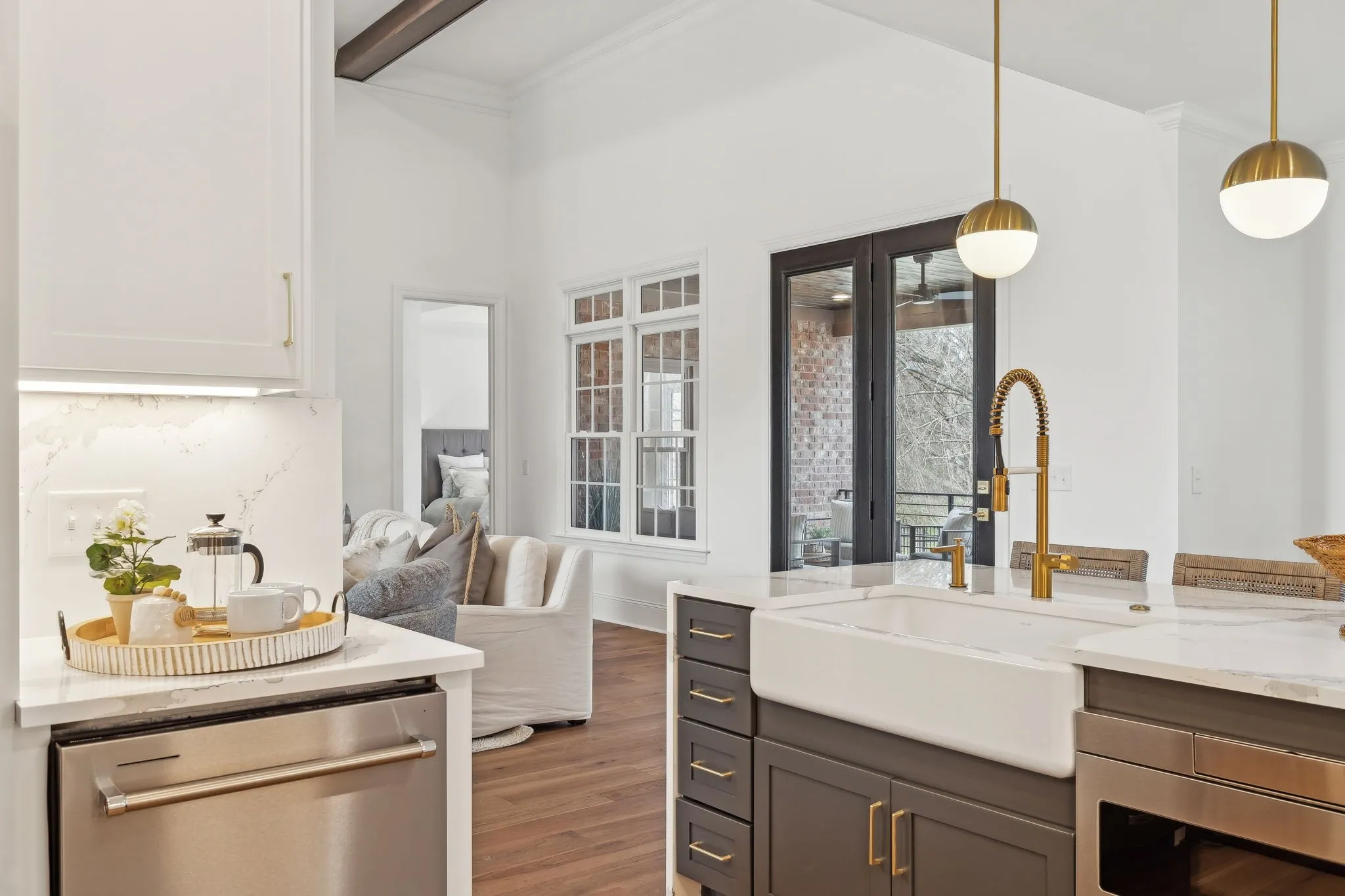 Nestled in the prestigious, gated community of Kings Chapel, this beautifully renovated home is a true gem, showcasing modern elegance, thoughtful design, and impeccable craftsmanship. Designed for effortless main-level living, this home features three spacious bedrooms and 2.5 bathrooms on the main level, offering convenience and comfort. Upstairs, you’ll find a fourth bedroom and a versatile bonus room with a wet bar, making it an ideal guest suite or private retreat for extended family. The main level boasts an open and airy floor plan with soaring 15-foot ceilings, exquisite ceiling details, and exposed beams that add character and warmth. The gourmet eat-in kitchen is a chef’s dream, complete with a farmhouse sink, top-of-the-line appliances—including double ovens, a five-burner cooktop, and a French-door refrigerator with a bottom freezer. Step outside to a fully fenced backyard, creating a serene and private outdoor escape. Pool rendering available to help you envision a luxurious backyard oasis! Also, included is a One-Year New Home Warranty for Peace of Mind.