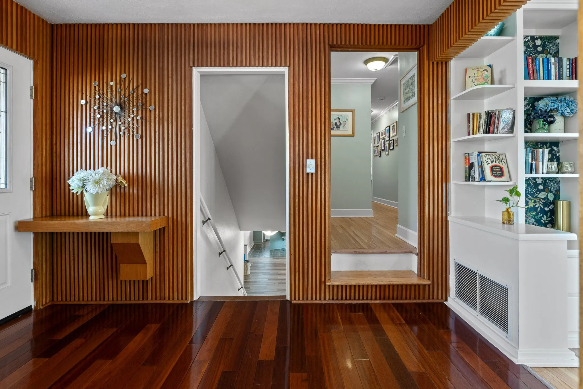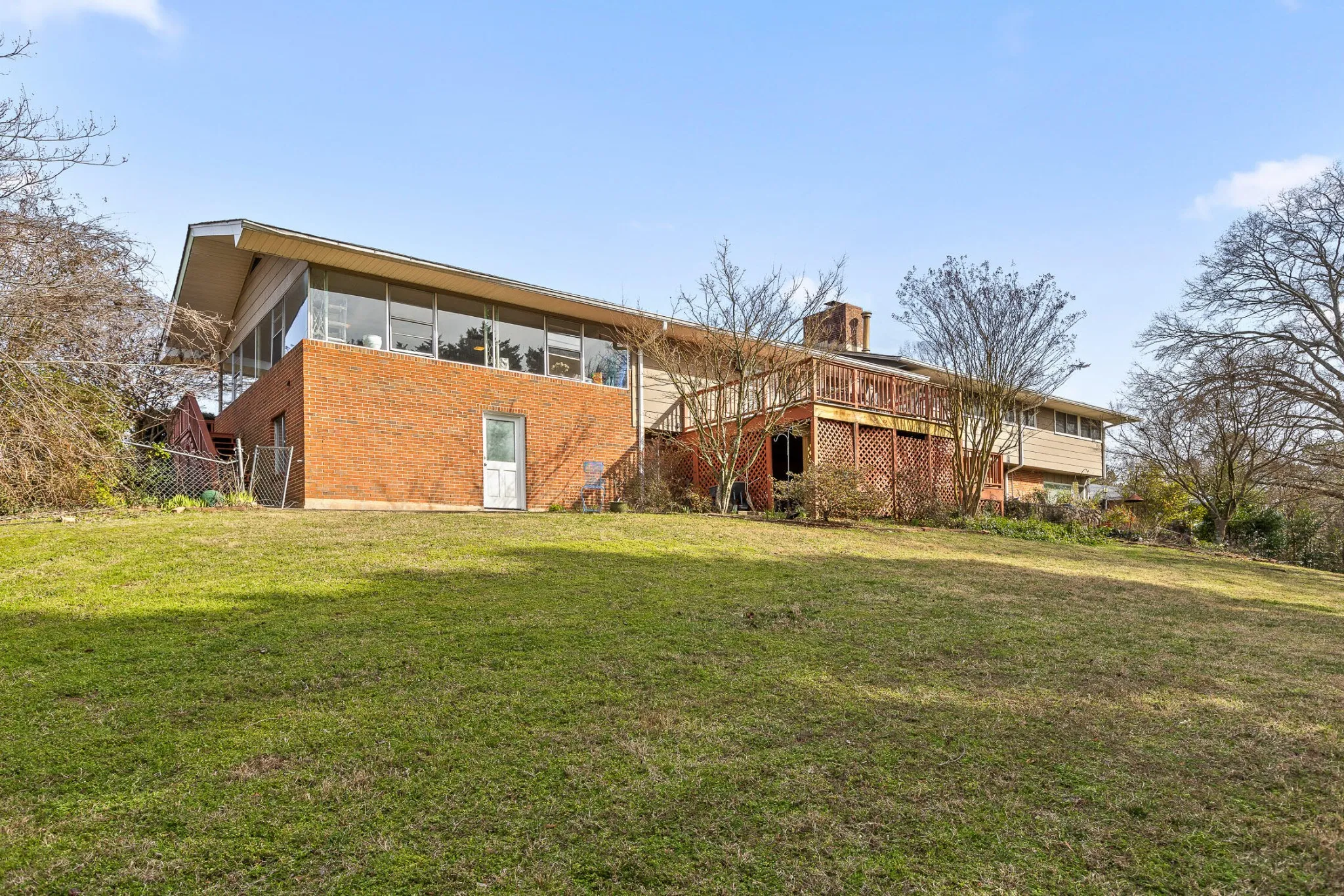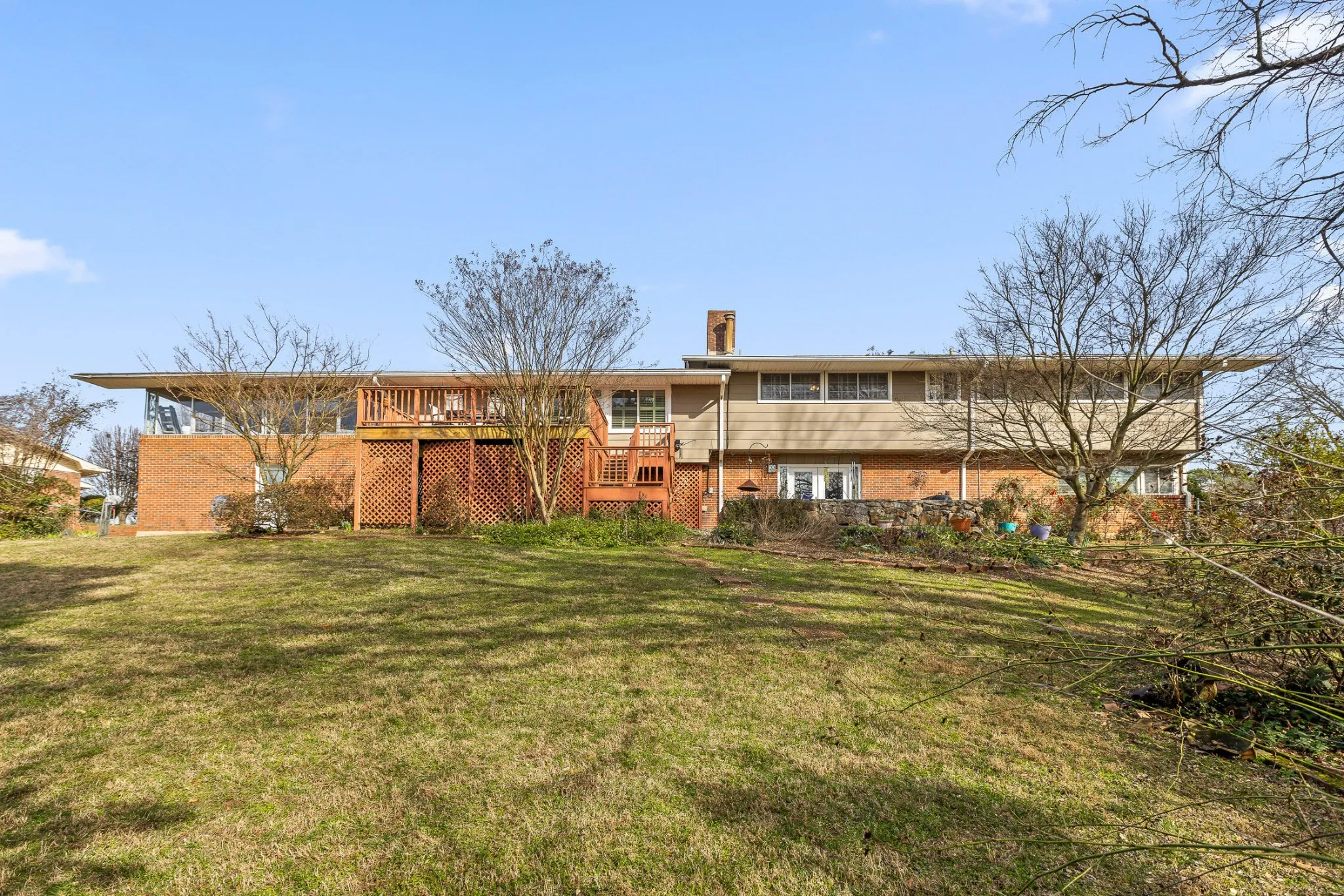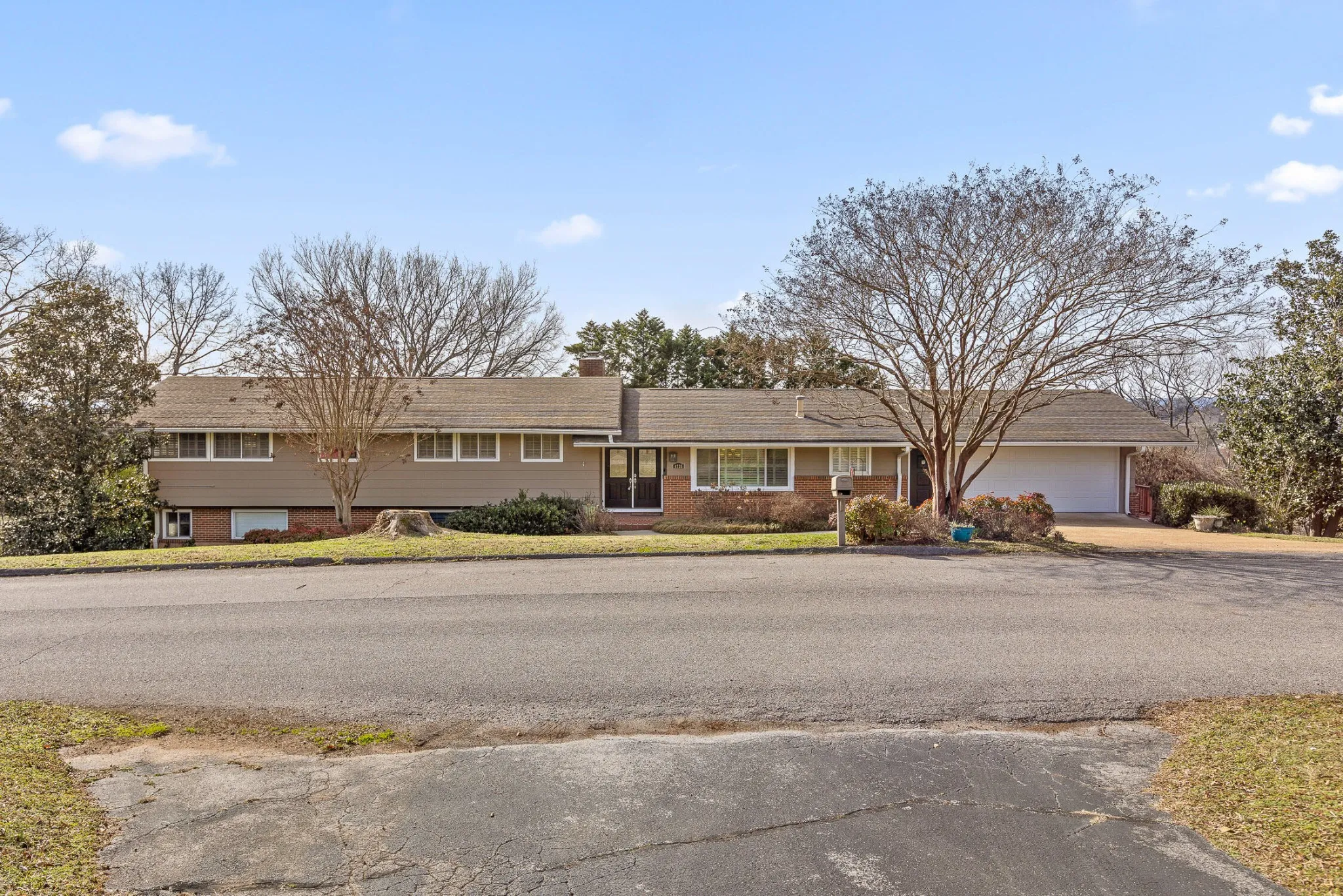 Welcome to this stunning home on Lake Hills Circle, nestled in a peaceful neighborhood circle with easy access to Hwy 153. Centrally located, this home is just minutes away from Hixson, East Brainerd, and downtown Chattanooga without ever needing to get on the interstate. Situated on a spacious half-acre lot, this home offers plenty of room for a growing family. As you step through the double front doors, you’re greeted by a unique Frank Lloyd Wright-inspired foyer. The spacious living room features built-in bookshelves, while the chef’s kitchen is a dream, with a 5-burner gas stove, hood range, butcher block countertops, ample cabinetry, and under-cabinet lighting. The adjoining dining room offers a cozy, intimate setting for meals or casual dining. The bedroom wing boasts four generous-sized bedrooms, each with its own private full bath and three offering original tile in impeccable condition. The primary suite features dual closets and a newly renovated bathroom. Downstairs, you’ll find a large finished lower level perfect for family fun. A gorgeous stone fireplace warms the family sitting area, with a game room and space for a pool table. Step out through French doors to the lower patio, ideal for outdoor entertaining and you’ll enjoy mountain views from the upper deck. The bar area downstairs includes seating for several, a sink, built-in blender, and mini fridge—perfect for hosting guests. A half bath is also conveniently located in this area, which could easily be converted into a teen or in-law suite.