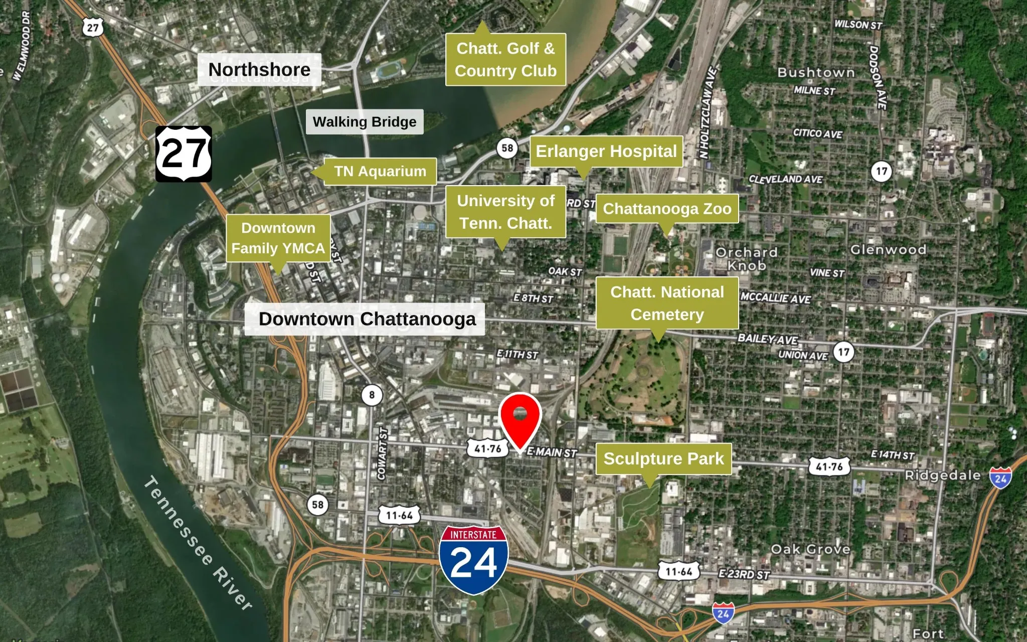 - Directions: From Downtown Chattanooga: Head West on Market Street. L on Main Street. Continue on Main, property on the Right.