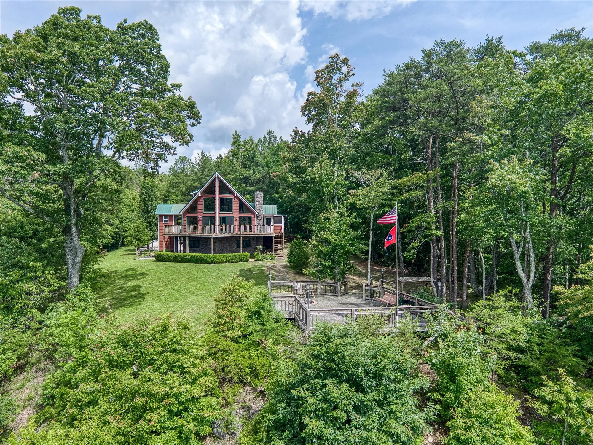 +"PublicRemarks": "Tucked amongst the mature pines, you'll find your dream retreat! Paved roads of Hawks Bluff lead you to a private, grand entrance, welcoming you to this stunning multi-level home overlooking unobstructed bluff views. Utilize stairs to the main level or elevator, providing convenience for everyone. Main level features vaulted ceilings, floor to ceiling statement windows, access to the screened in sunroom & open decks, an entertaining kitchen equipped w/ new stove, like-new dishwasher, s/s apps, granite countertops, & soft close cabinetry. Main level primary offers a walk in closet & full ensuite - double vanities, garden tub, & tiled shower! Upper level landing & ensuite offers an added level of privacy. Lower level is a true flex space: a 3rd ensuite, gameroom, office. FURNISHINGS NEGOTIABLE! Enjoy your exterior living year-round w/ the multi-level porches & path leading to your patio w/ firepit & open seating. Plenty of options for storage & parking w/ a 2-car attached garage w/ heat/air, 1-car detached carport, & 30X45 detached garage/workshop. Workshop features concrete floors, sink, wood burning stove, loft, insulated roof, & negotiable lift! Add'l features include 500 gall inground owned propane tank, new main-level HVAC, newer water heater, reinsulated pump house w/ new well. 13 month home warranty for peace of mind."